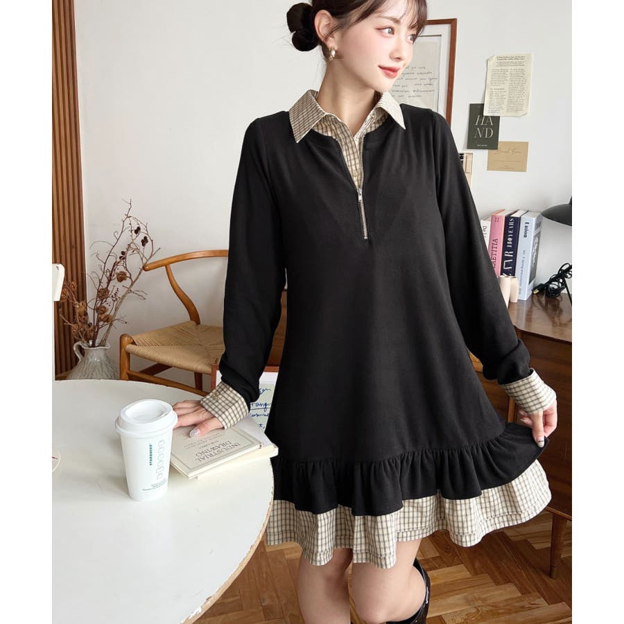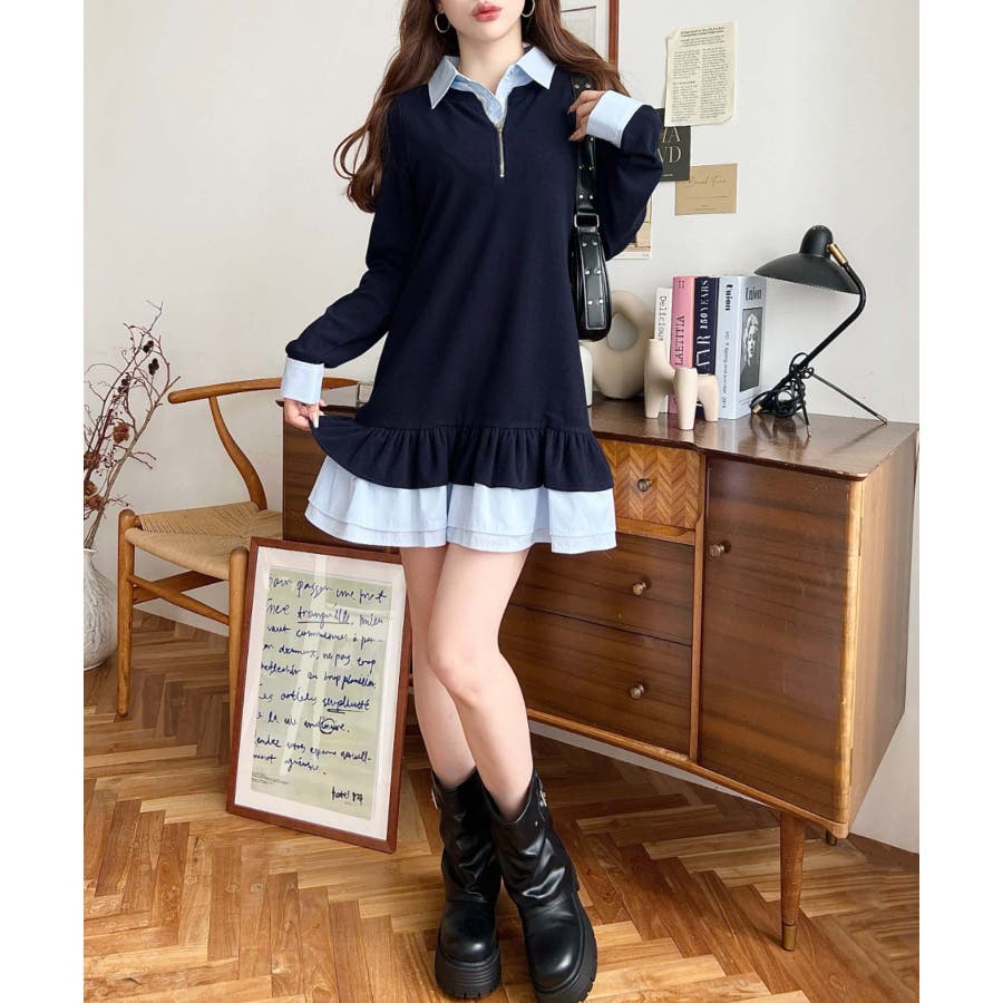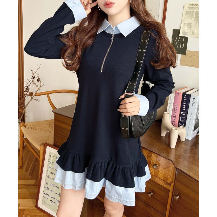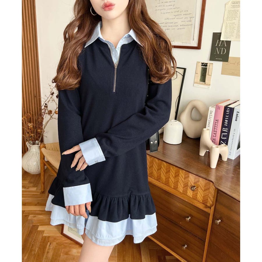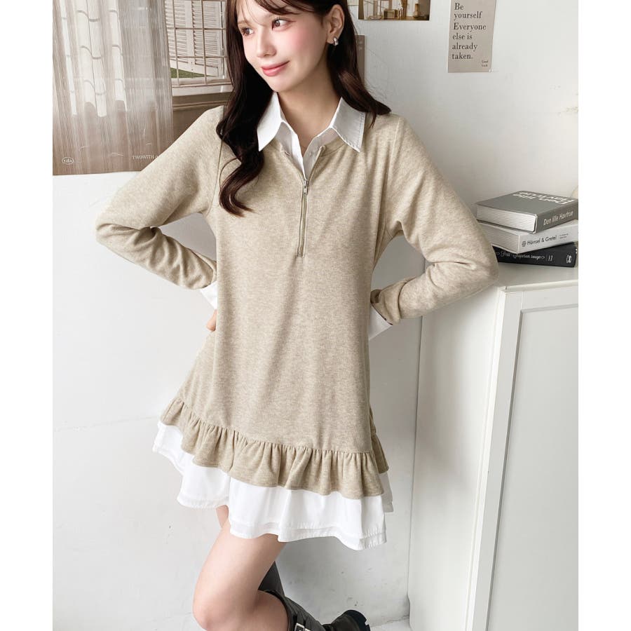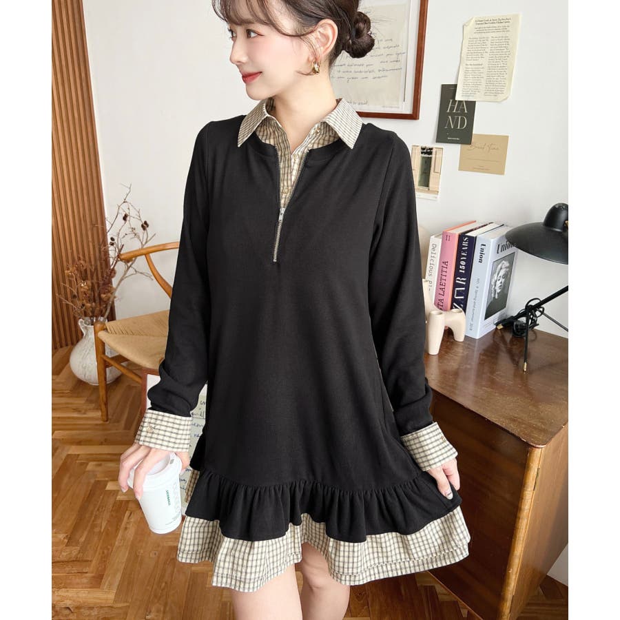 【1枚でシャツレイヤード感を楽しめる、大人のガーリースタイルにぴったりな主役級ミニワンピース♪】