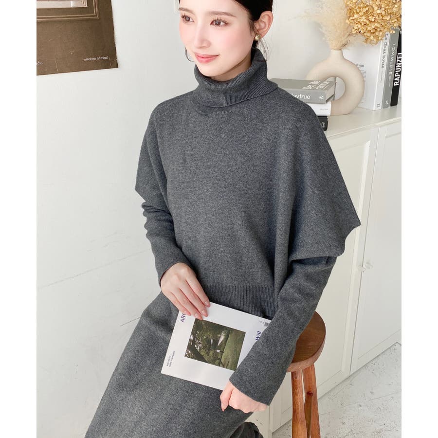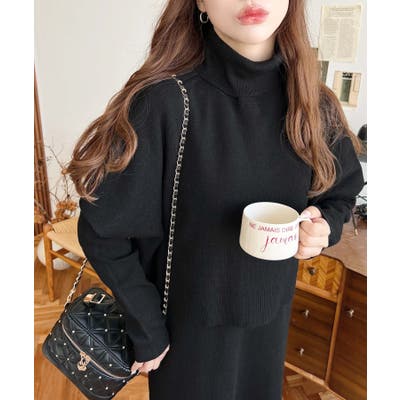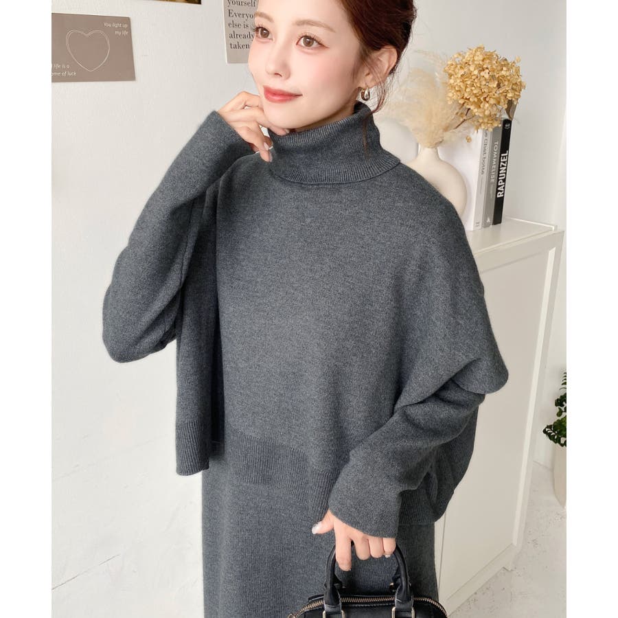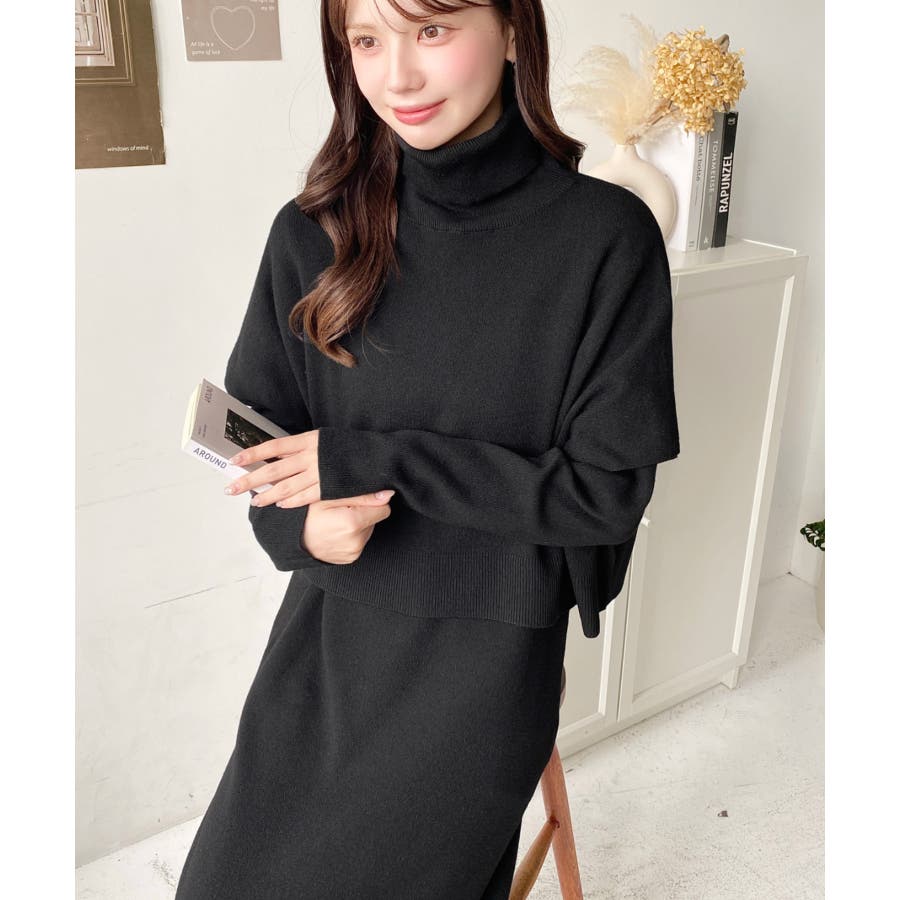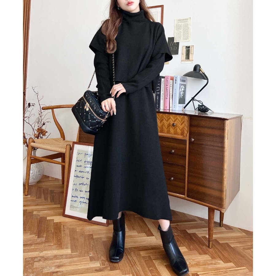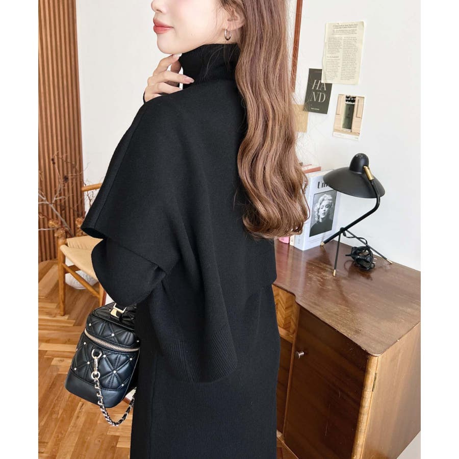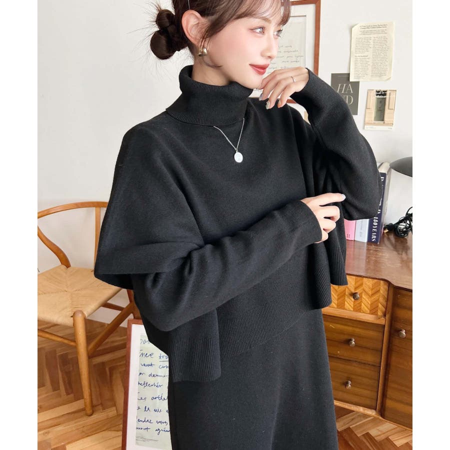 タートルネックベスト&クルーネック長袖ニットワンピース