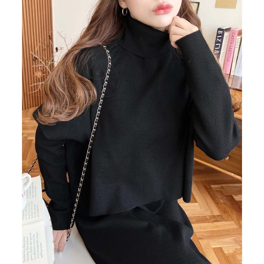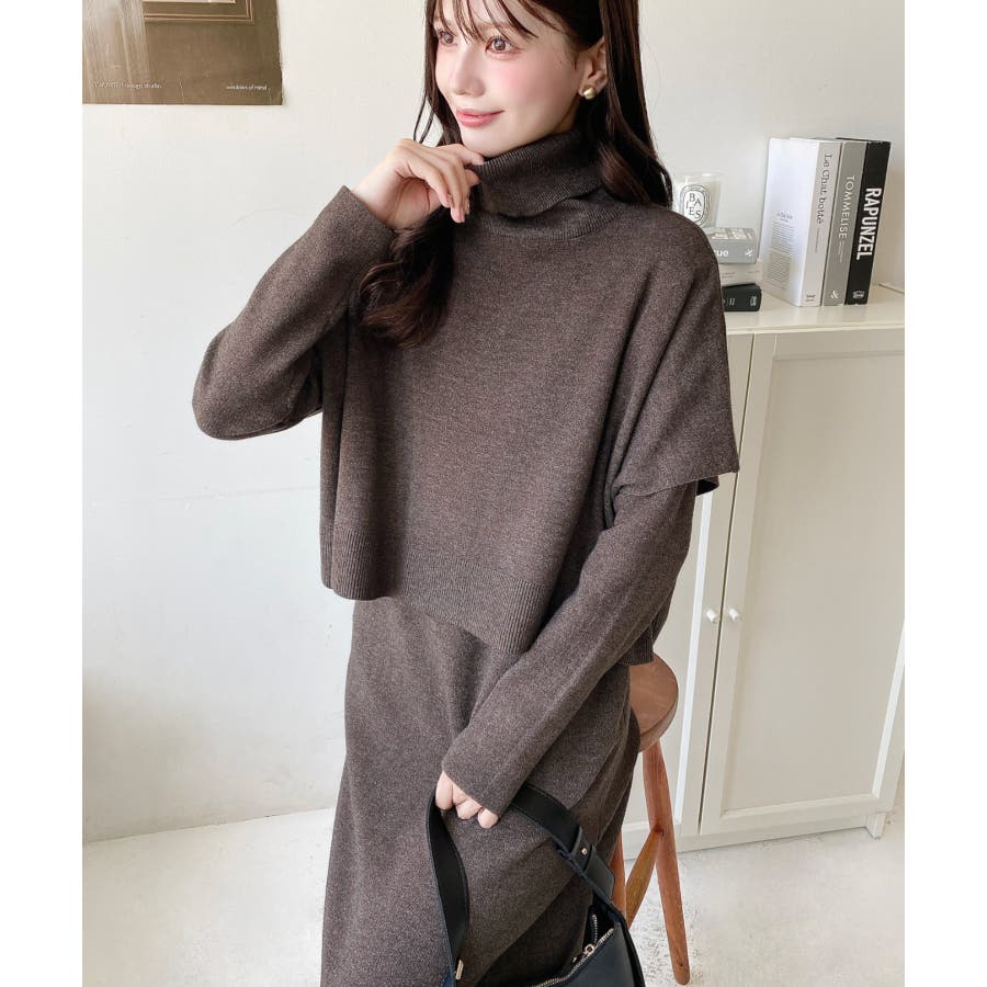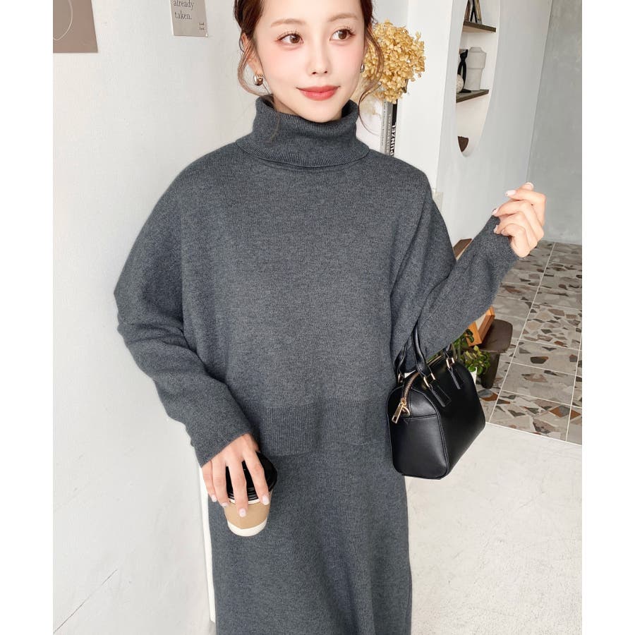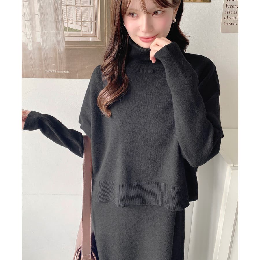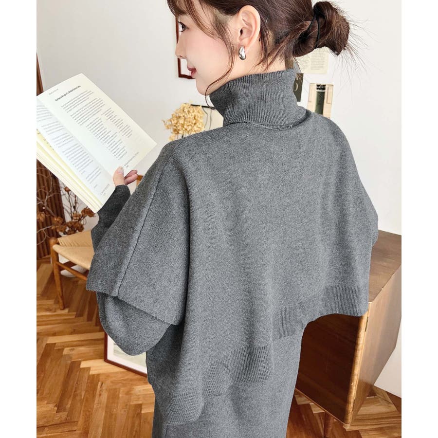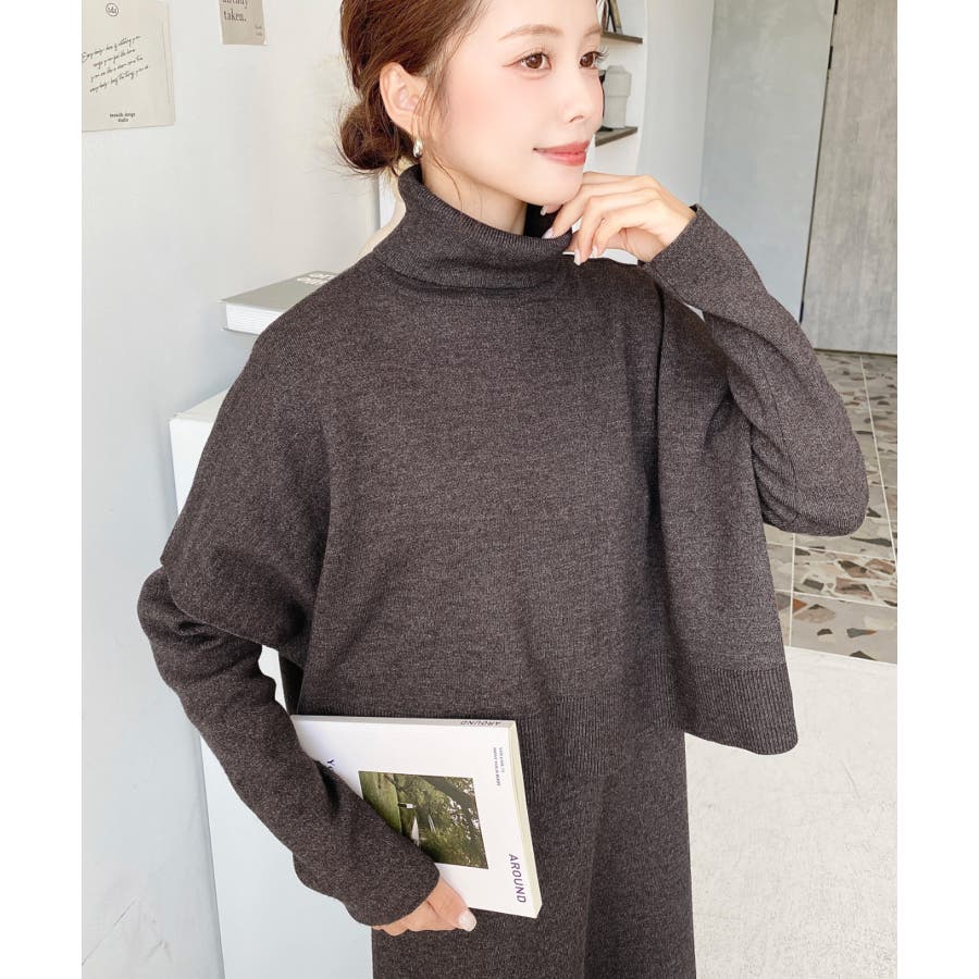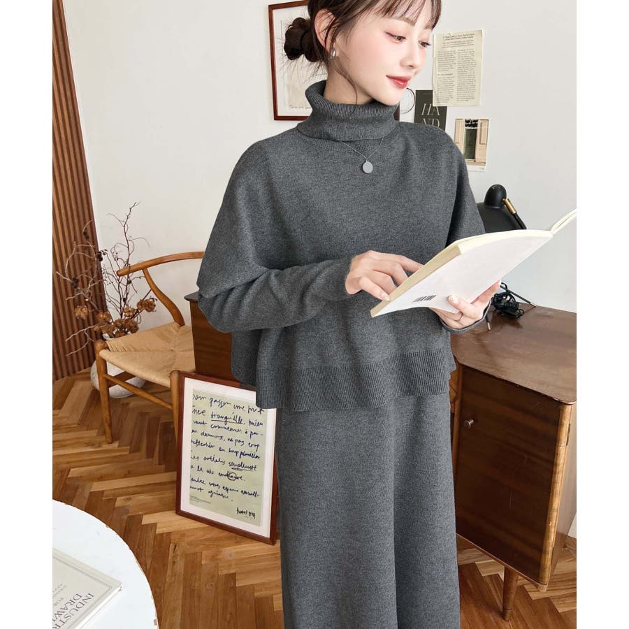 タートルネックベスト&クルーネック長袖ニットワンピース