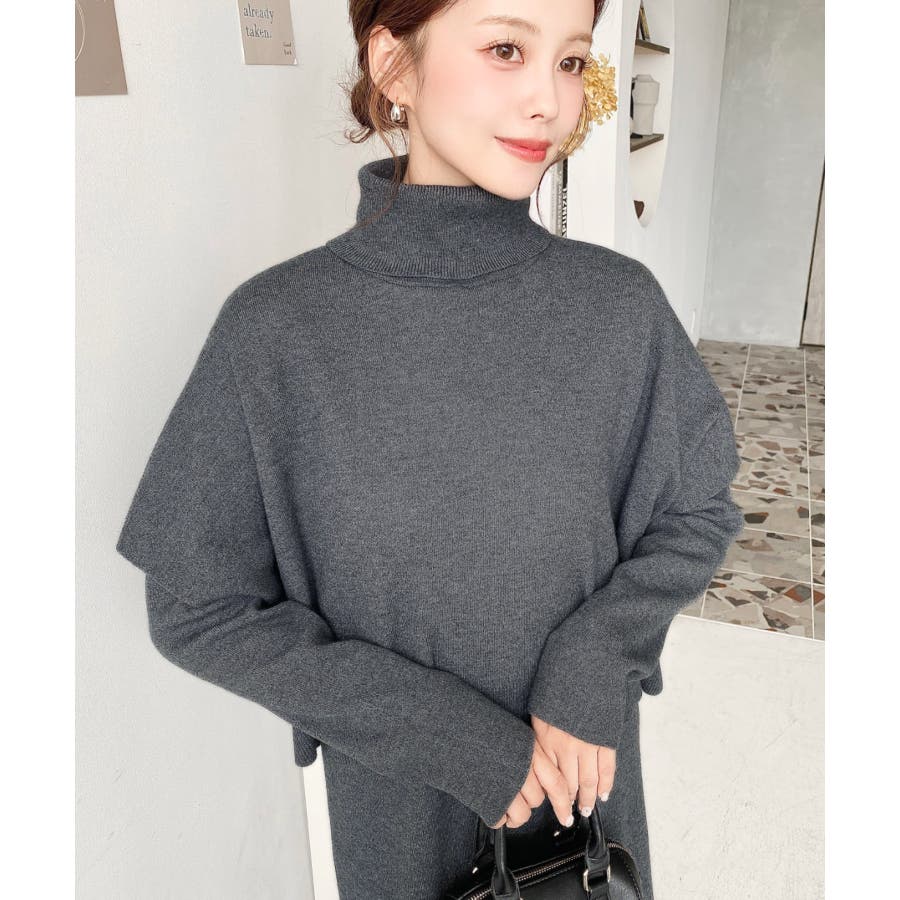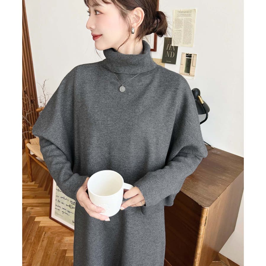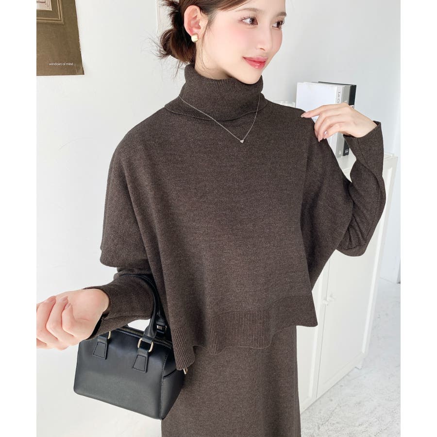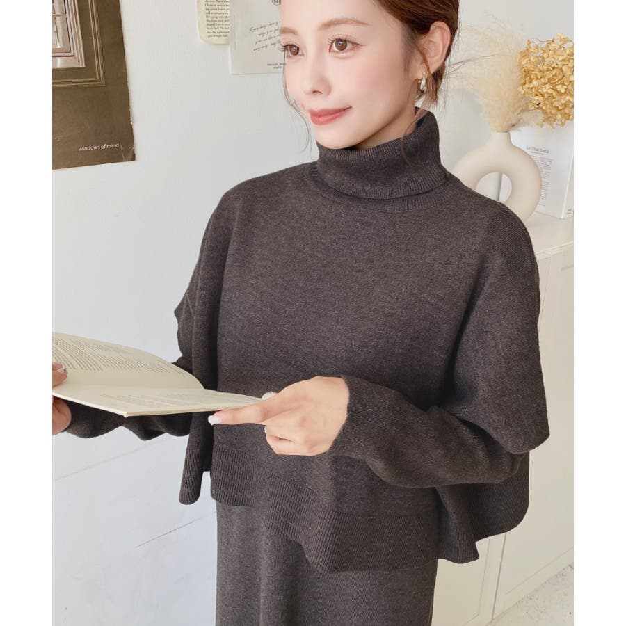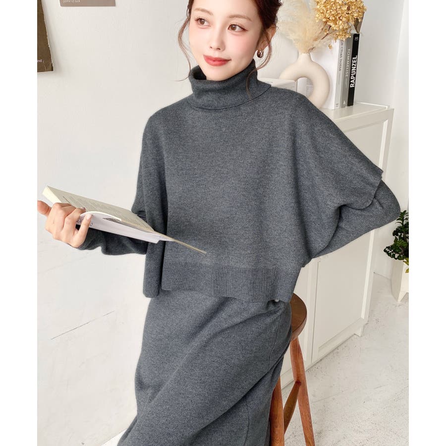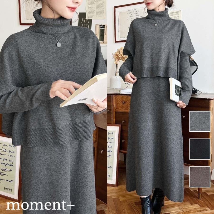 タートルネックベスト&クルーネック長袖ニットワンピース