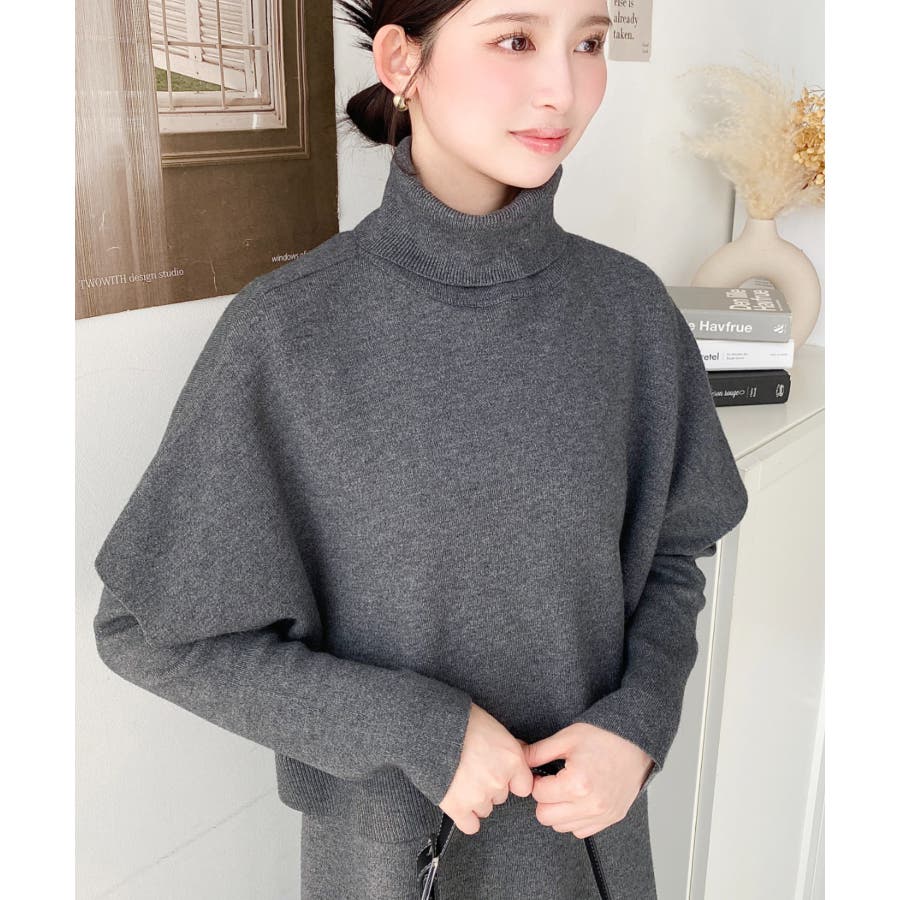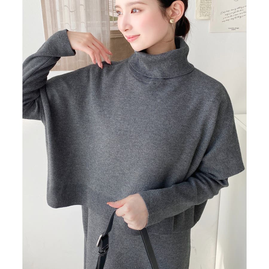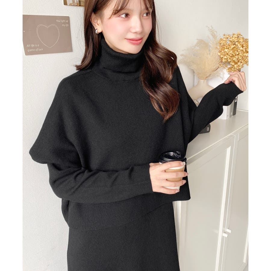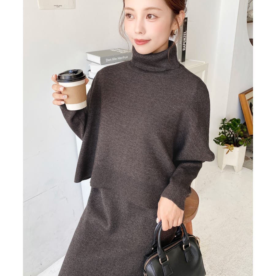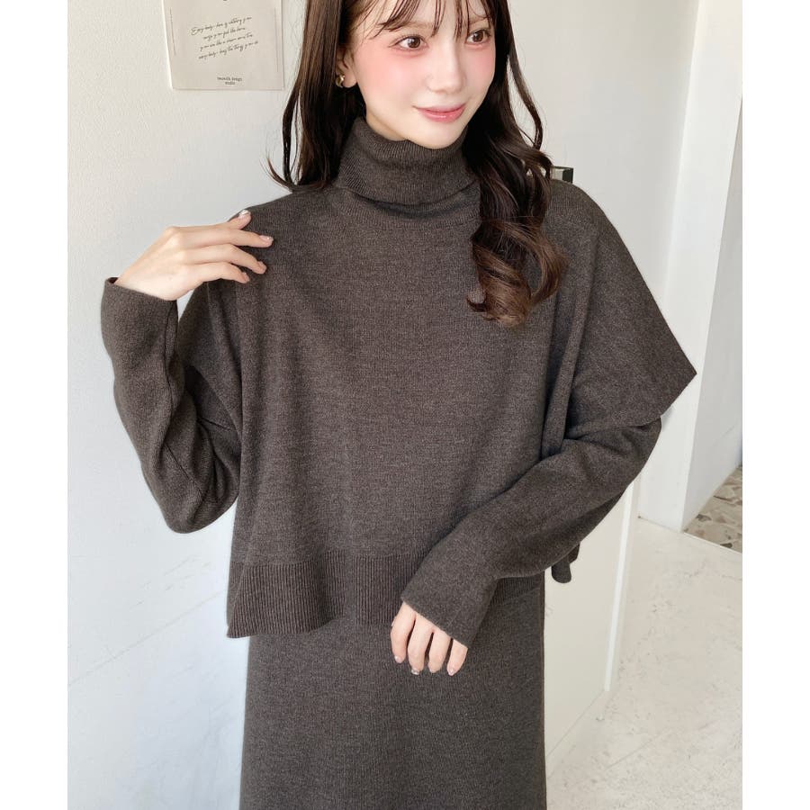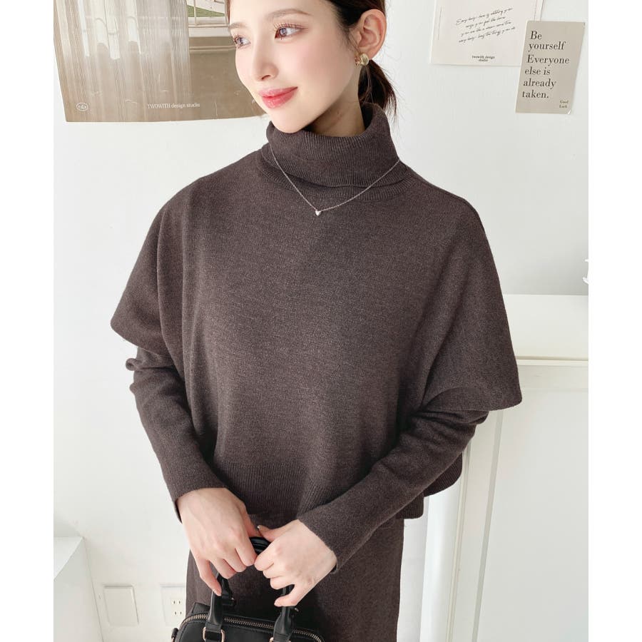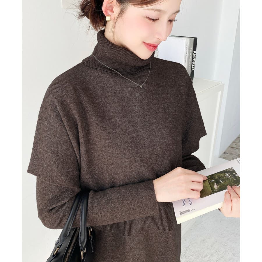 タートルネックベスト&クルーネック長袖ニットワンピース