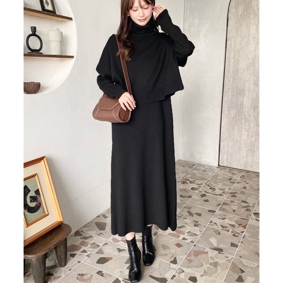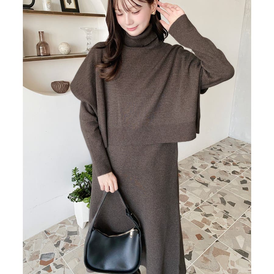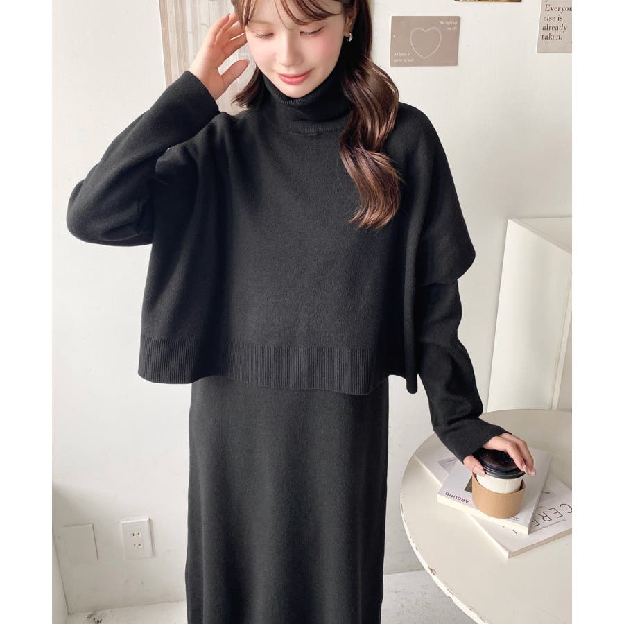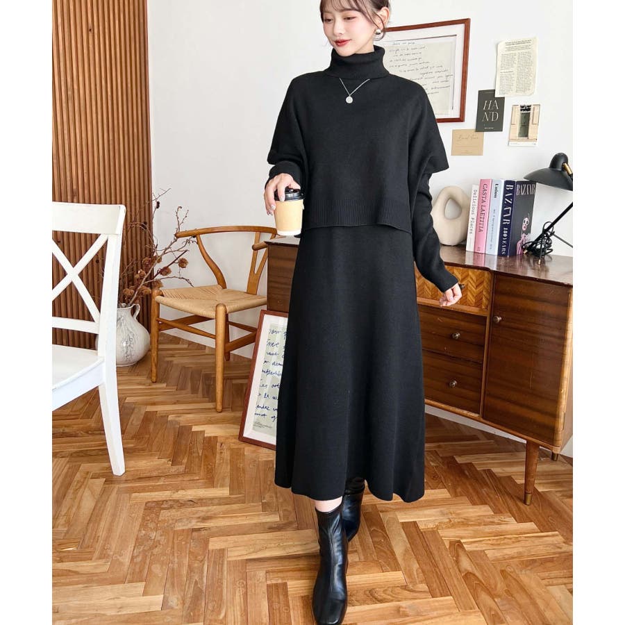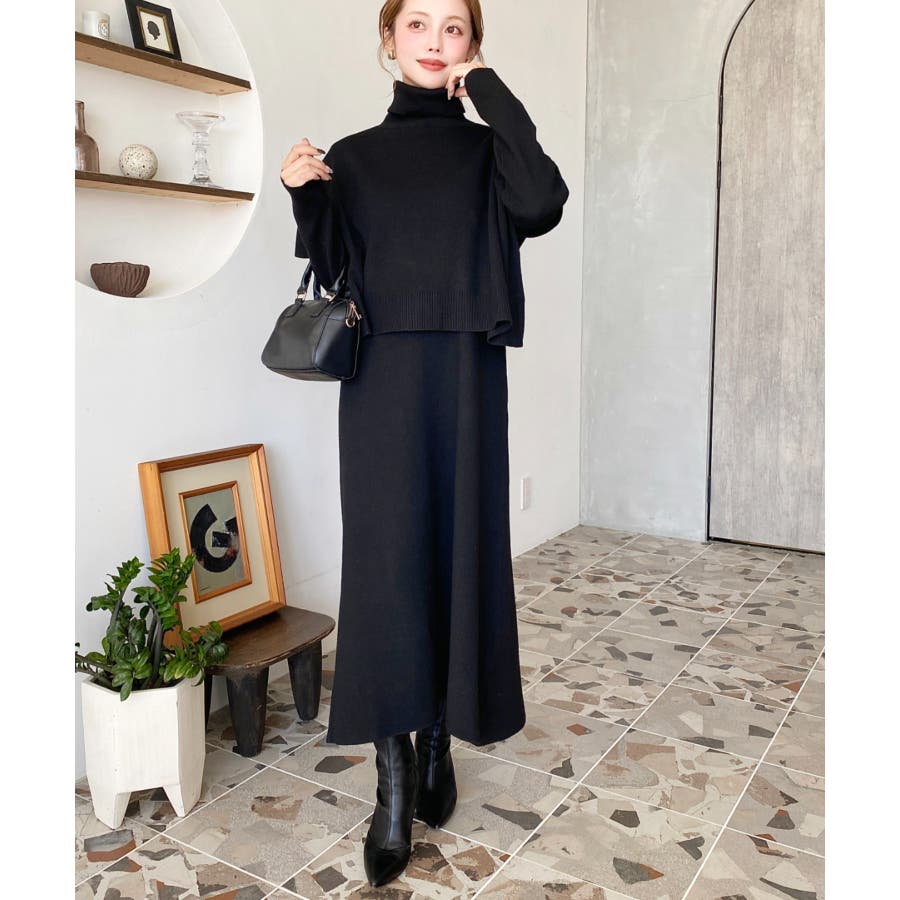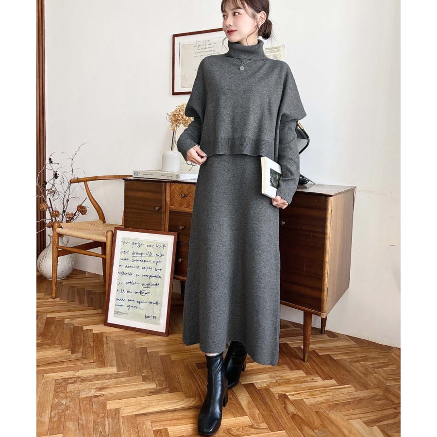 ・ベーシックワンピースとタートルネックベストのアンサンブルセット。