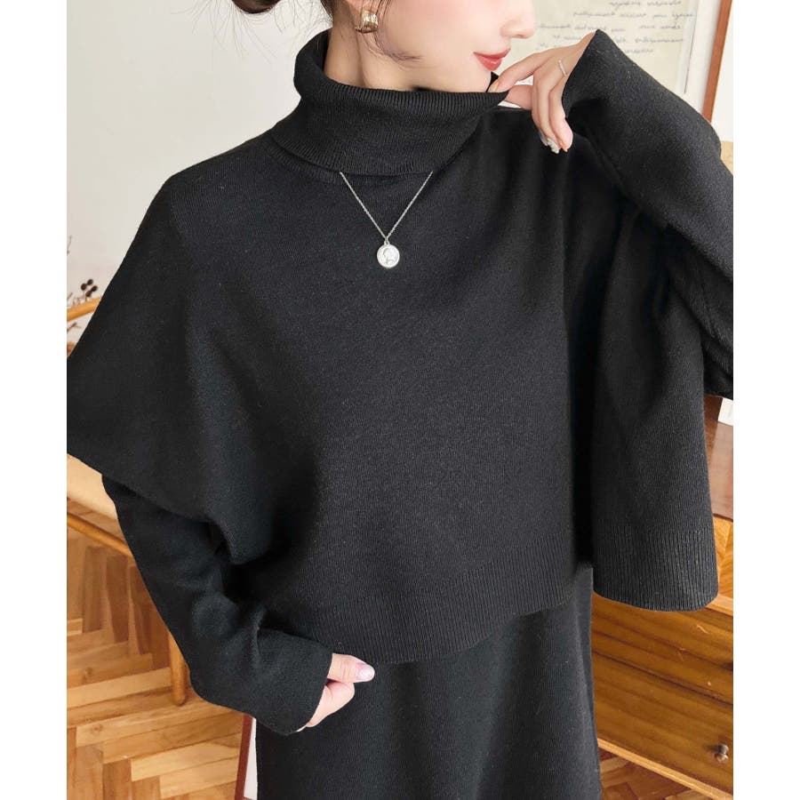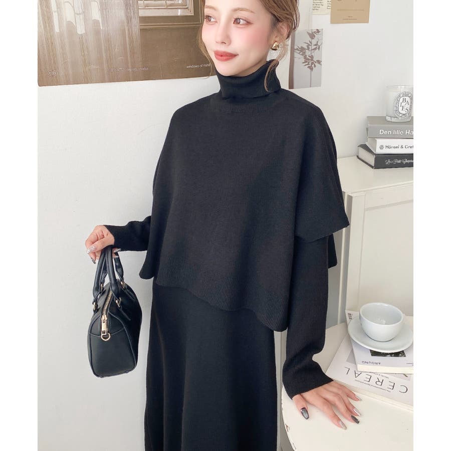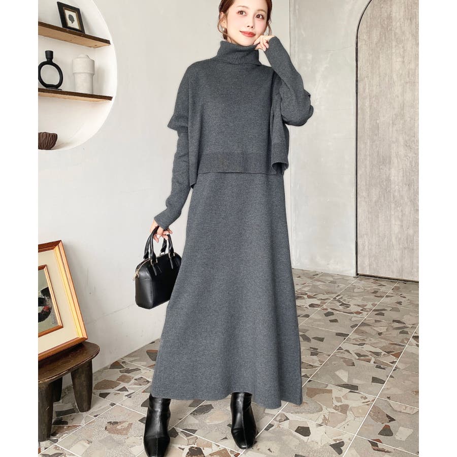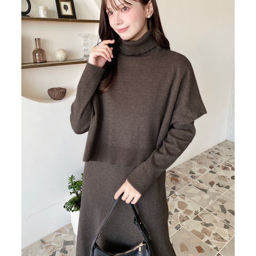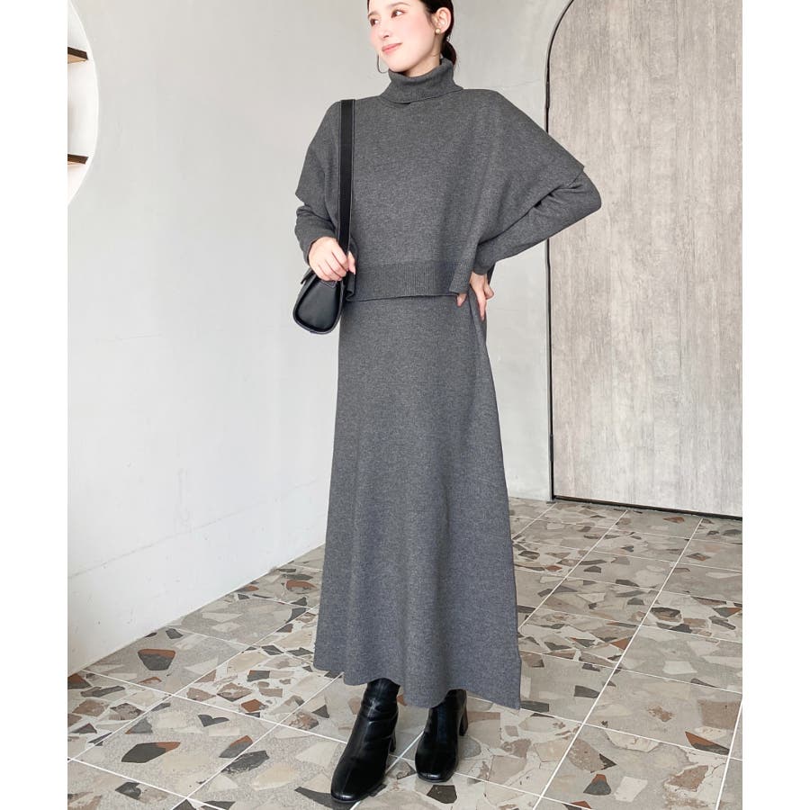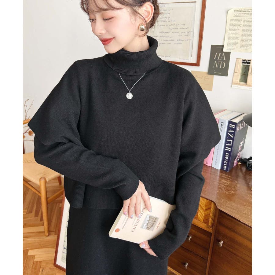 ・ベーシックワンピースとタートルネックベストのアンサンブルセット。