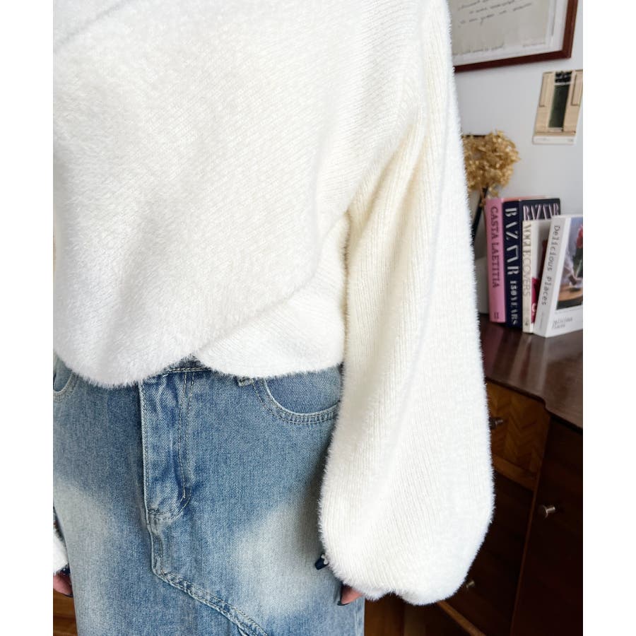 ・空気を含んだようにふんわりと編まれたシャギー素材が大人フェミニンな印象のニットプルオーバー。