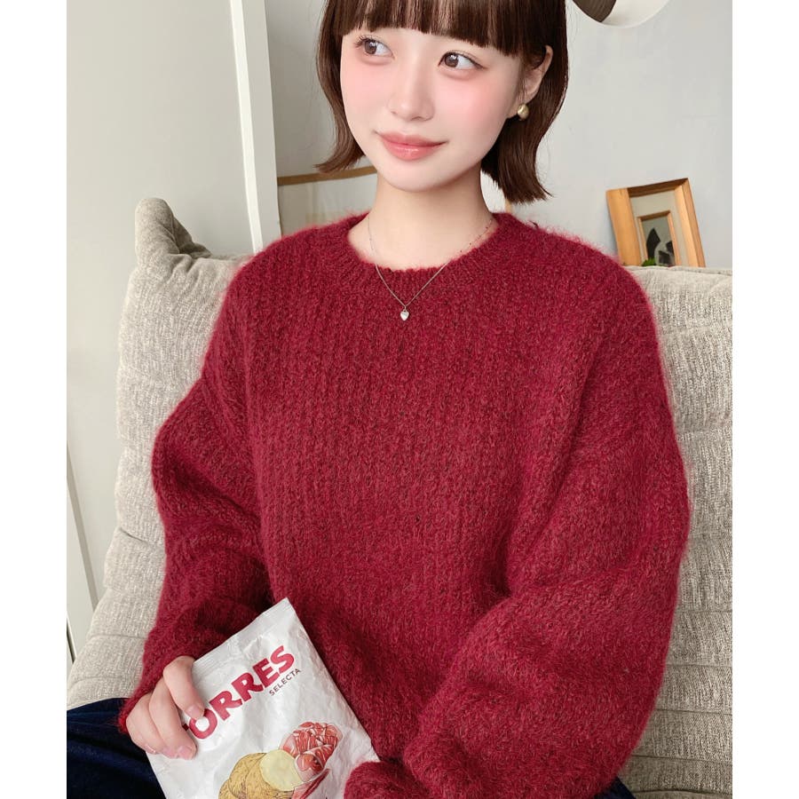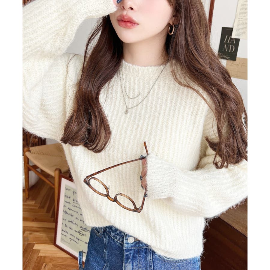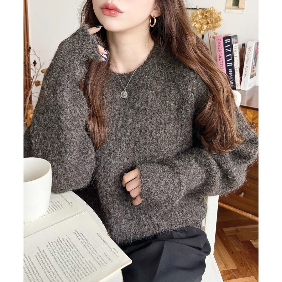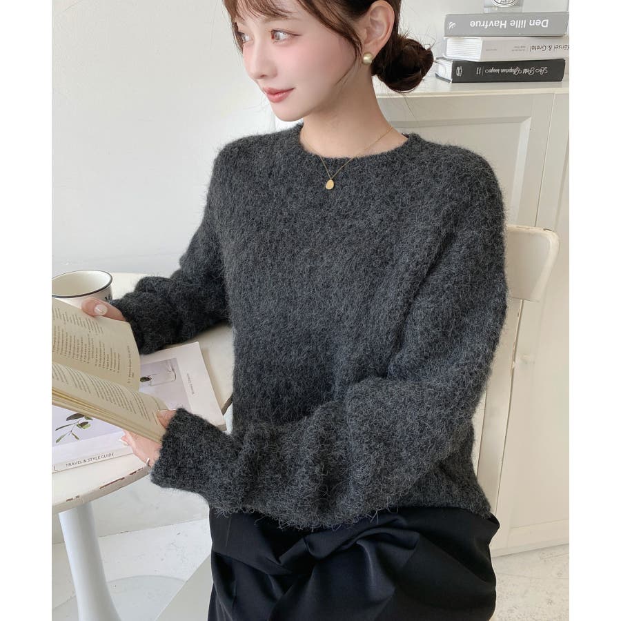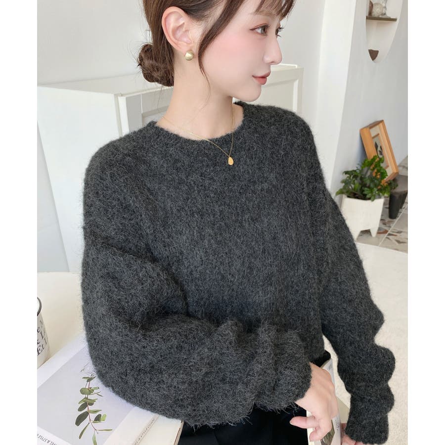 ・シンプルなシルエットにふんわり起毛で暖かみある表面感が魅力のニットプルオーバー。
