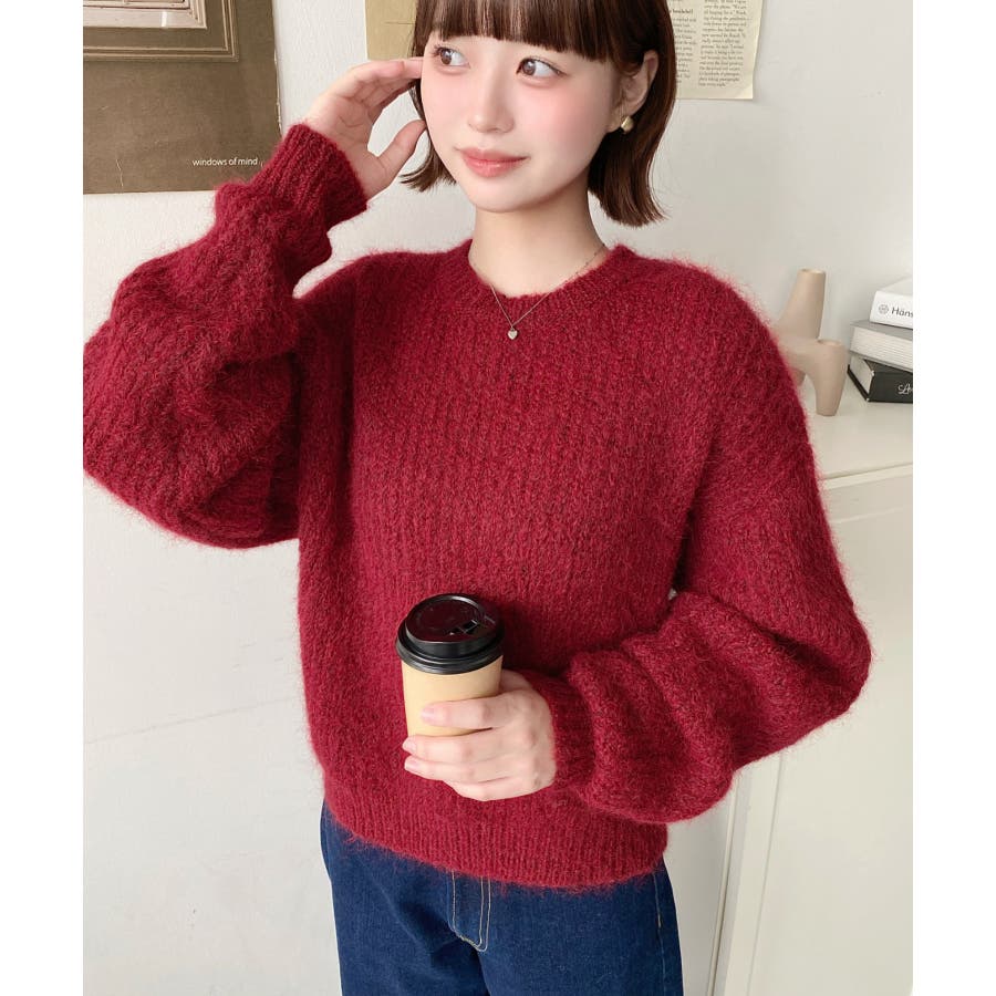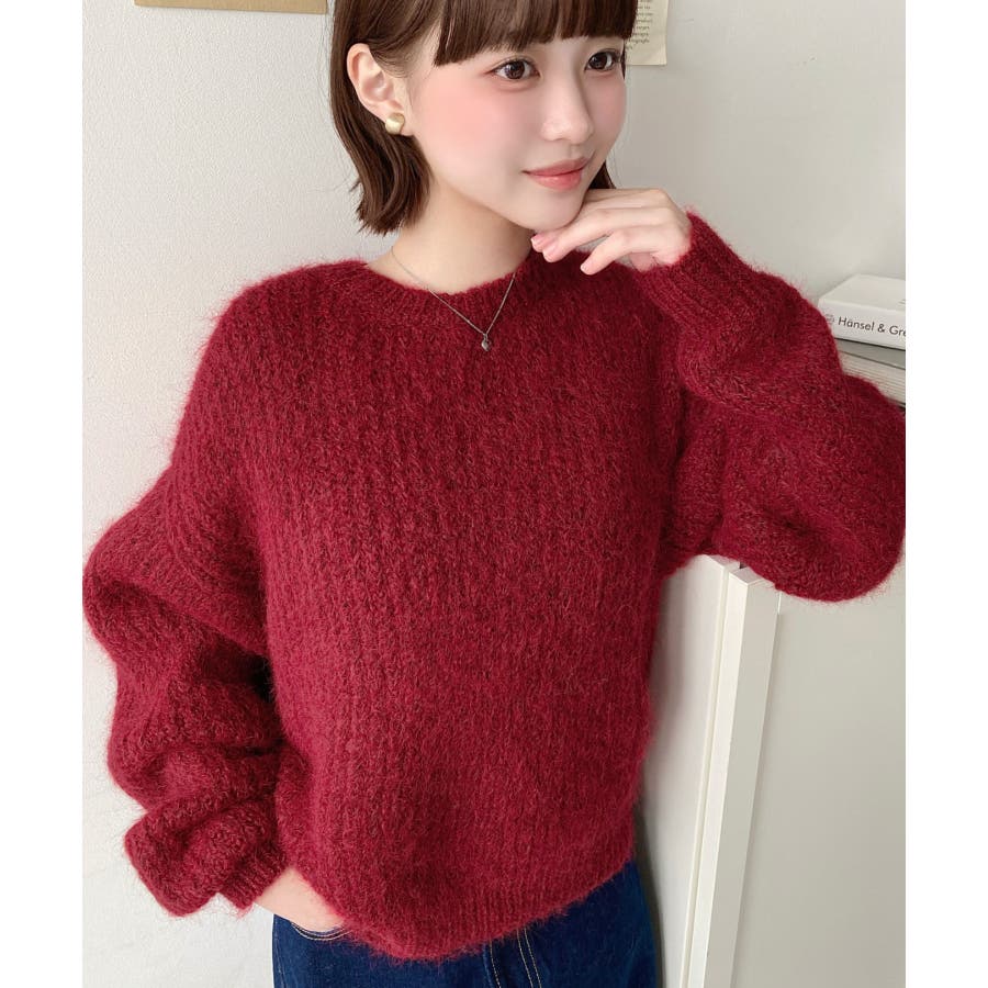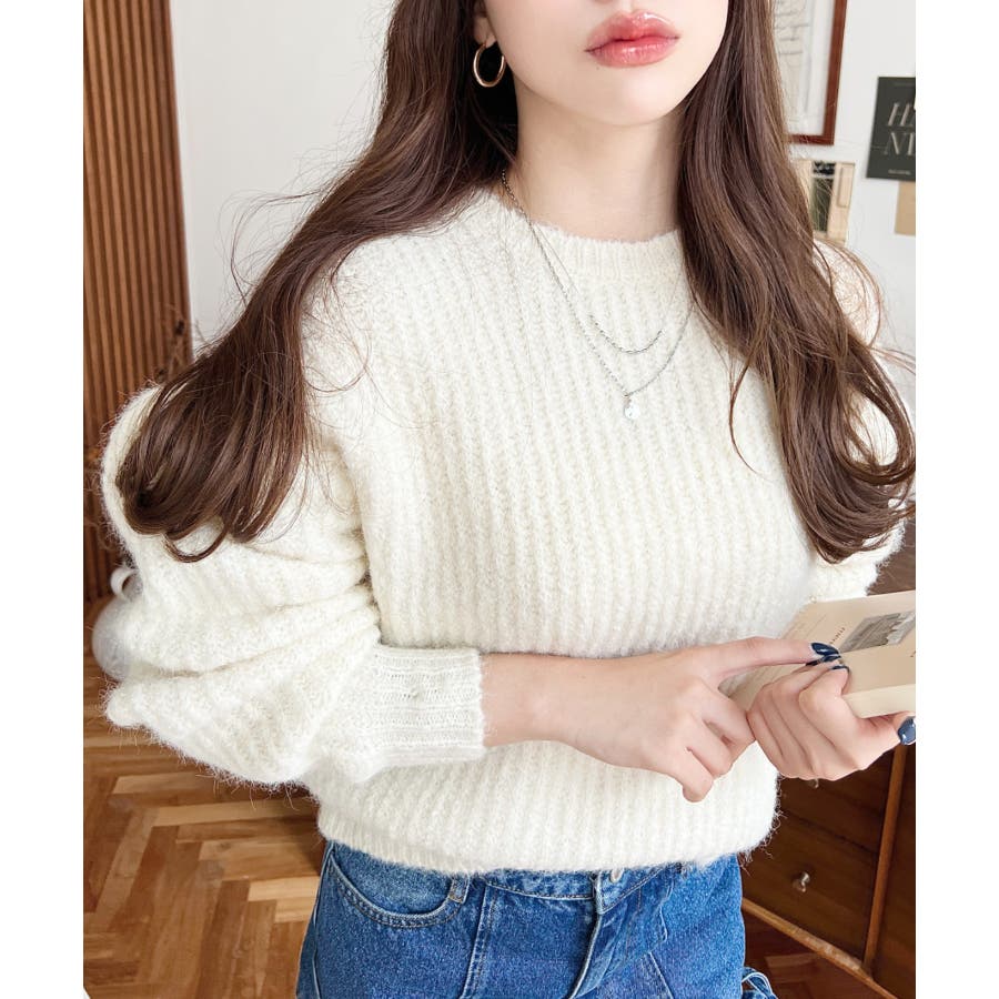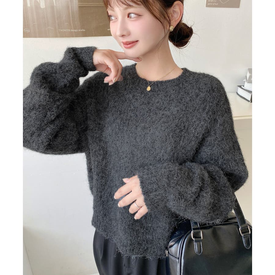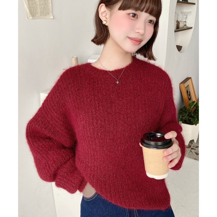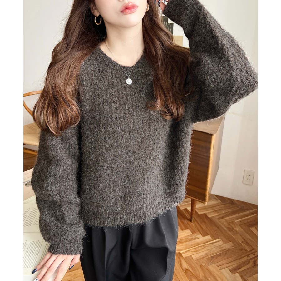 ・シンプルなシルエットにふんわり起毛で暖かみある表面感が魅力のニットプルオーバー。