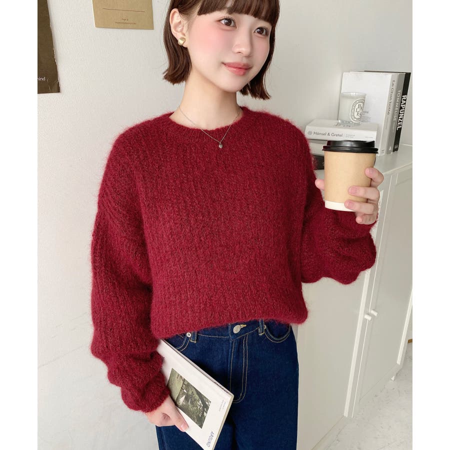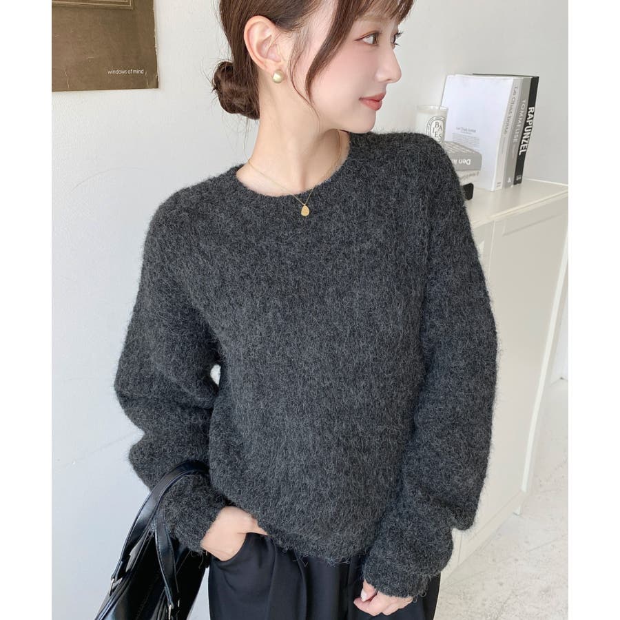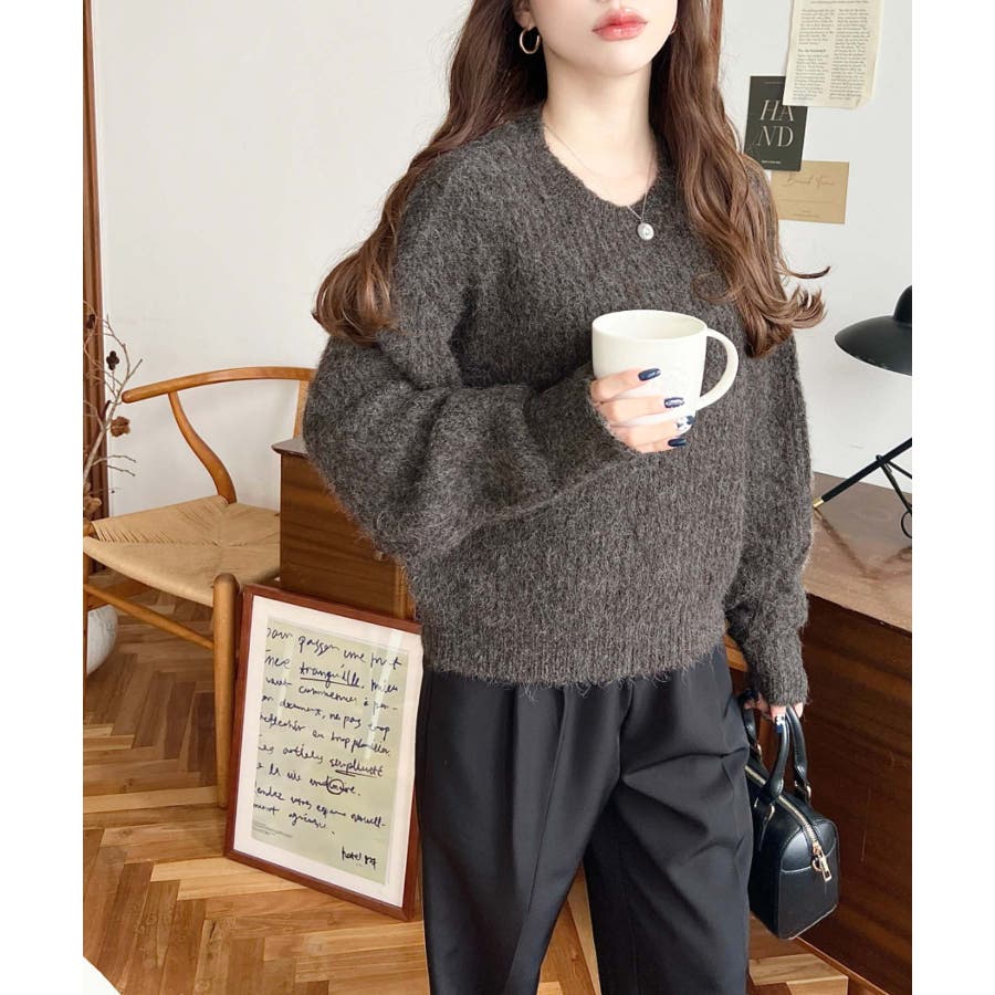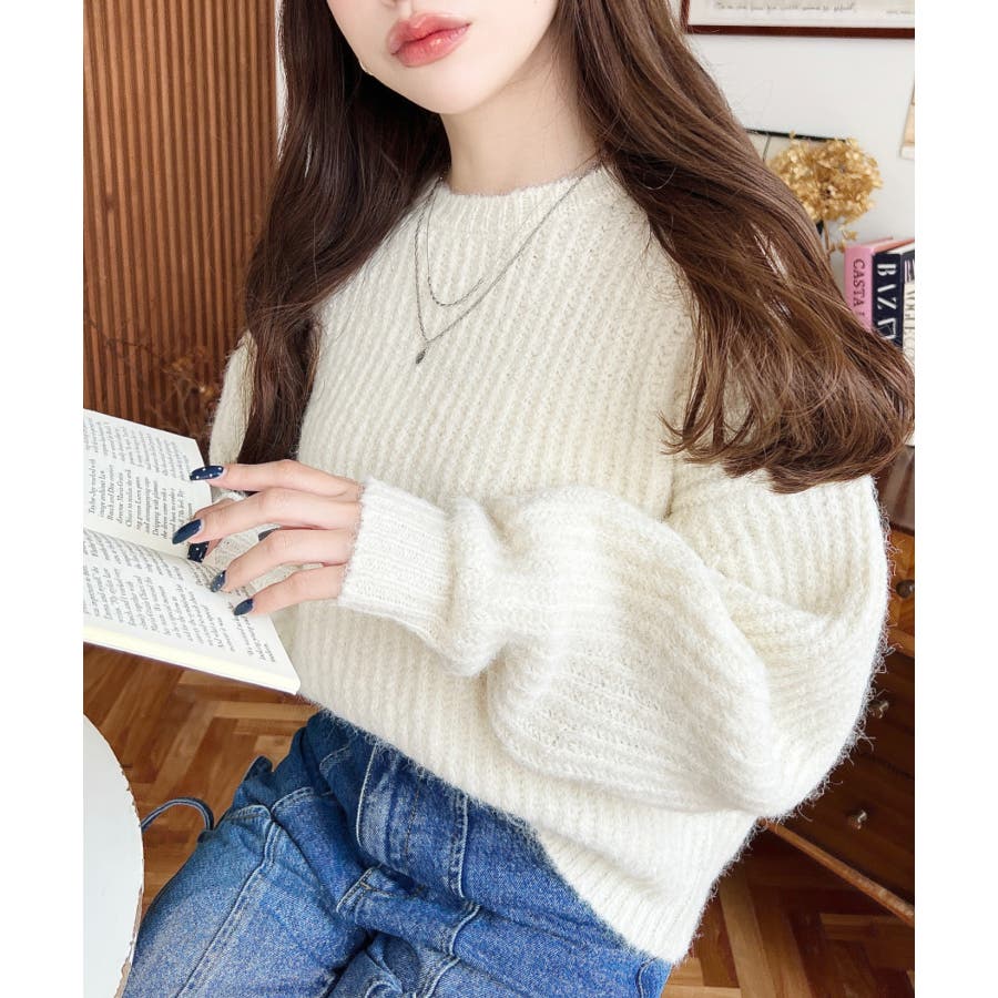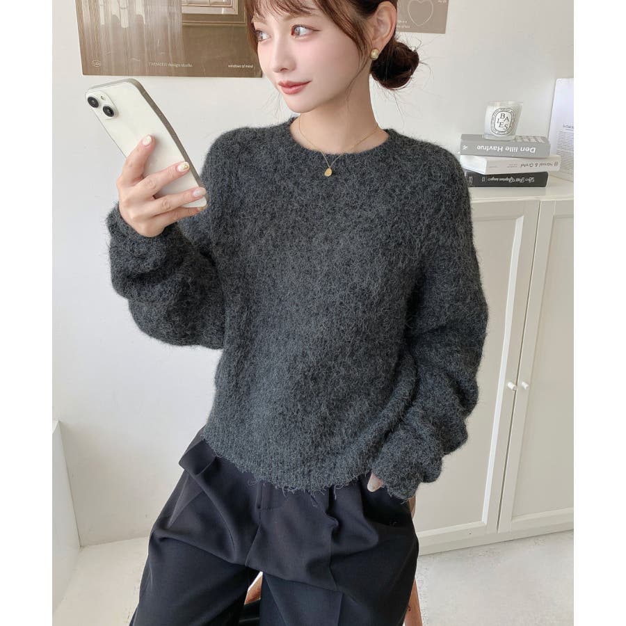 ・シンプルなシルエットにふんわり起毛で暖かみある表面感が魅力のニットプルオーバー。