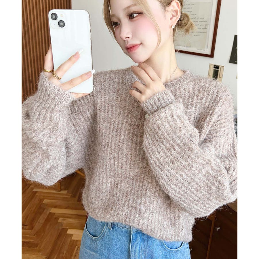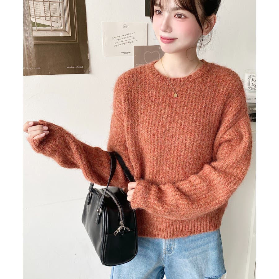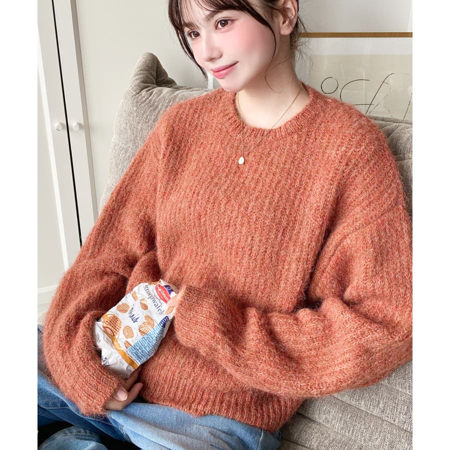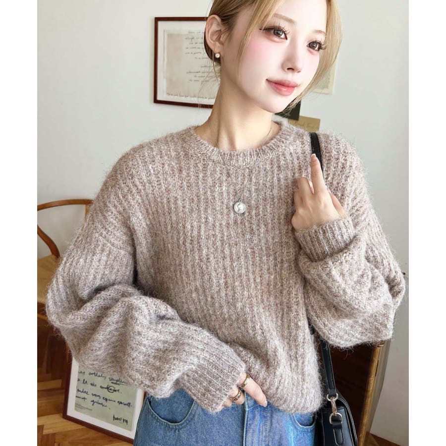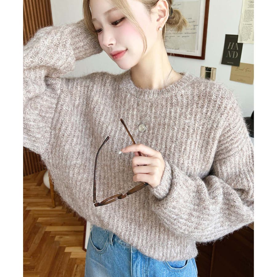 ざっくり畦編みMIXヤーンニットプルオーバー