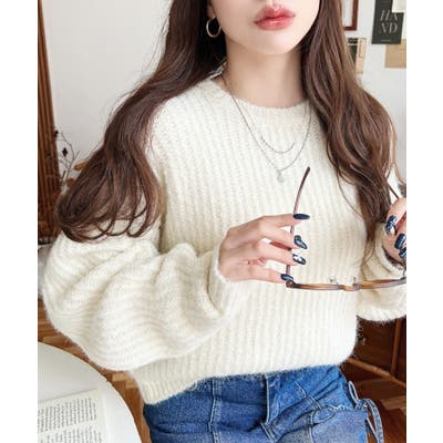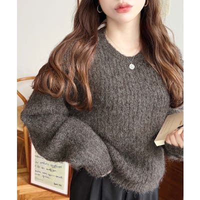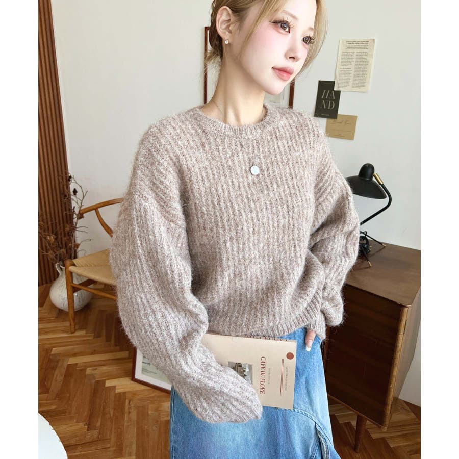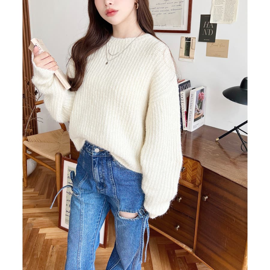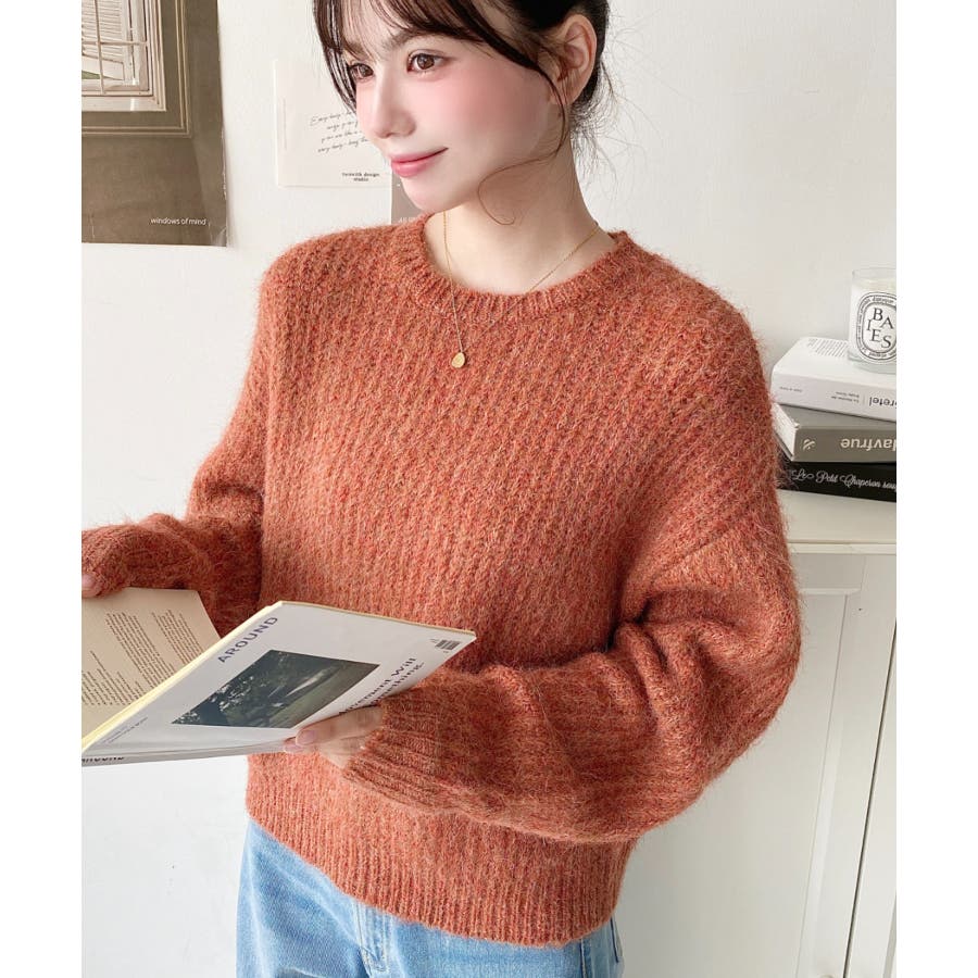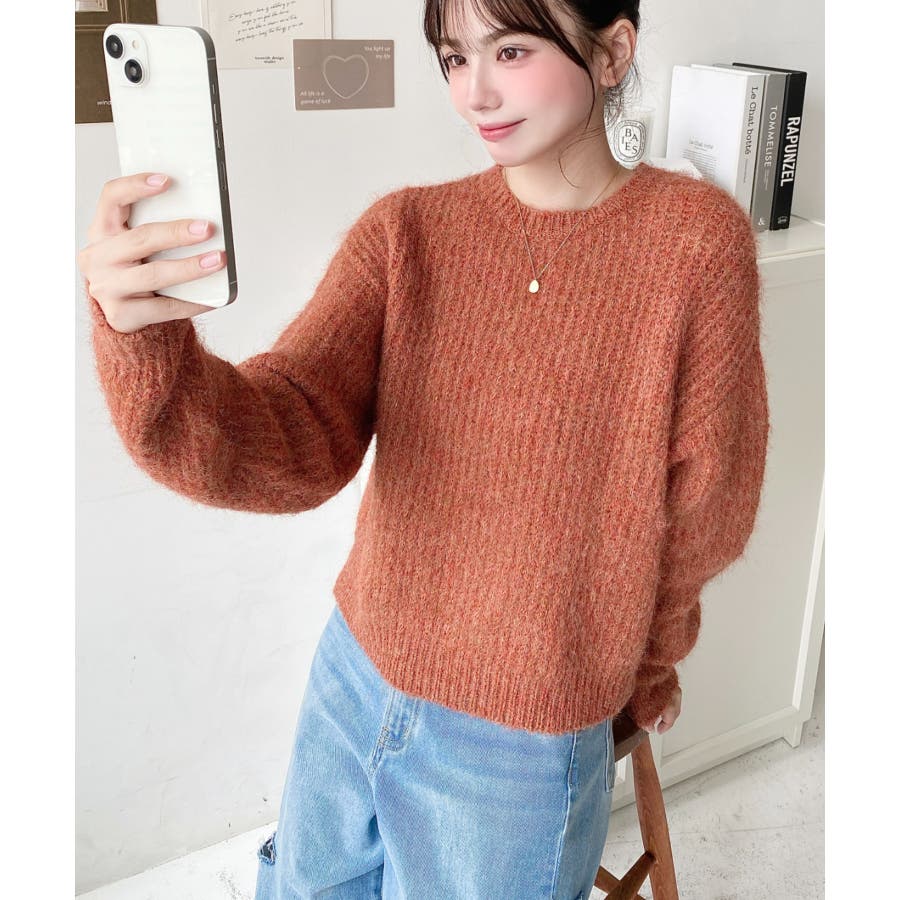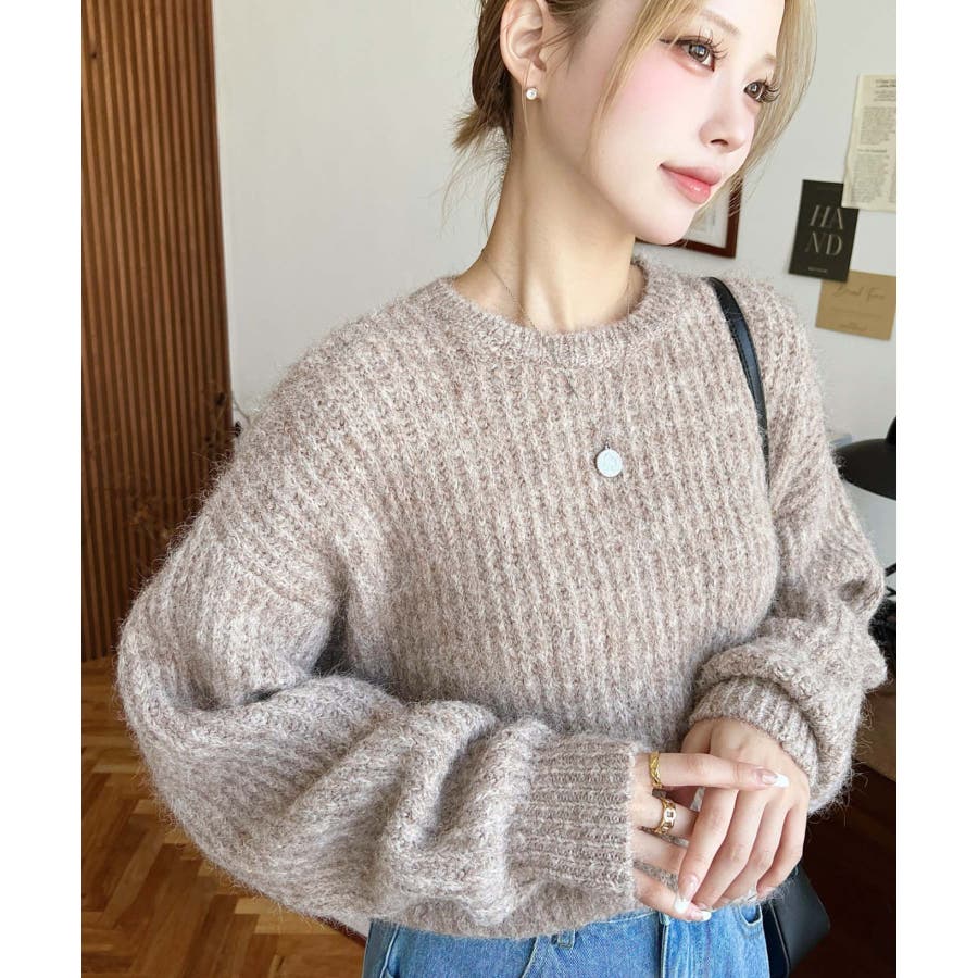 ざっくり畦編みMIXヤーンニットプルオーバー