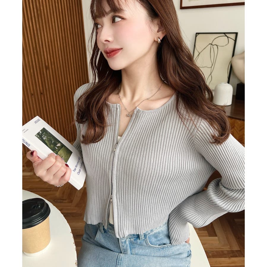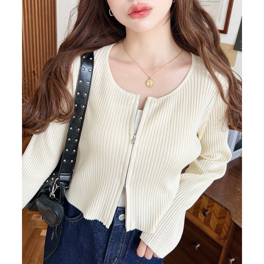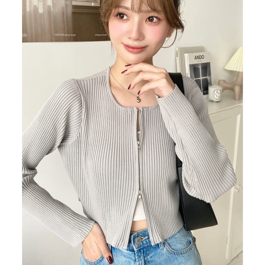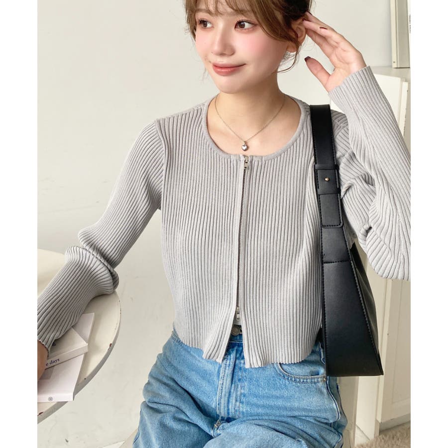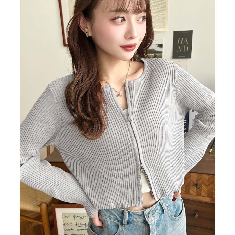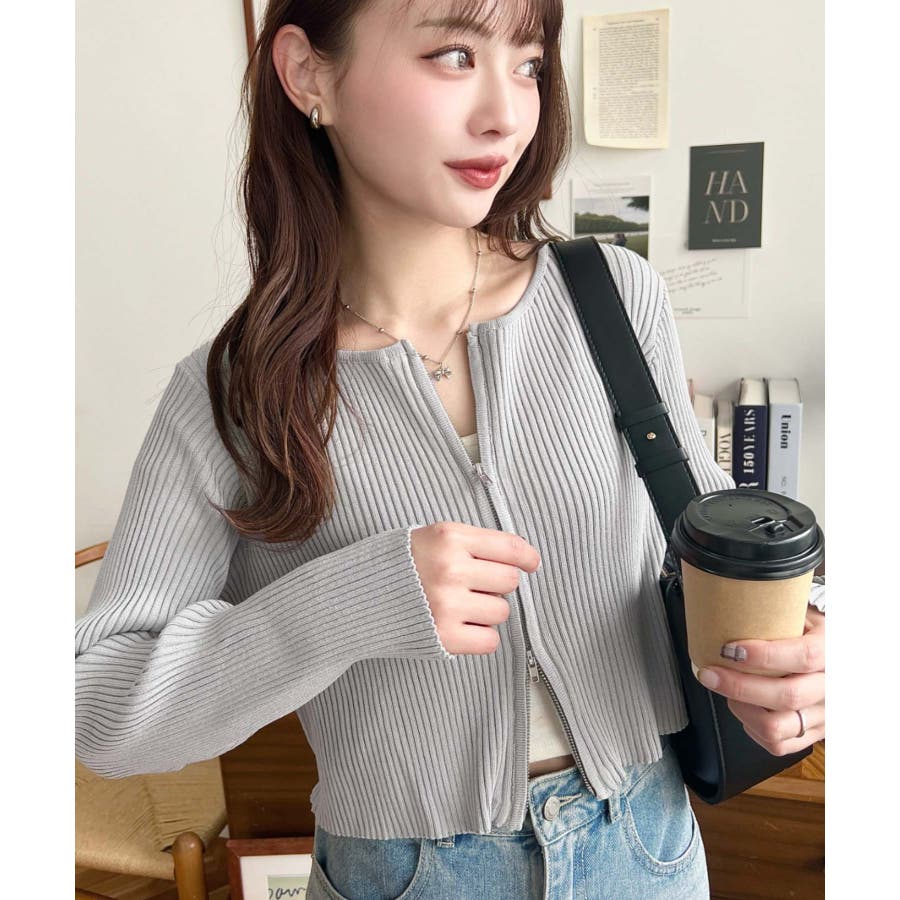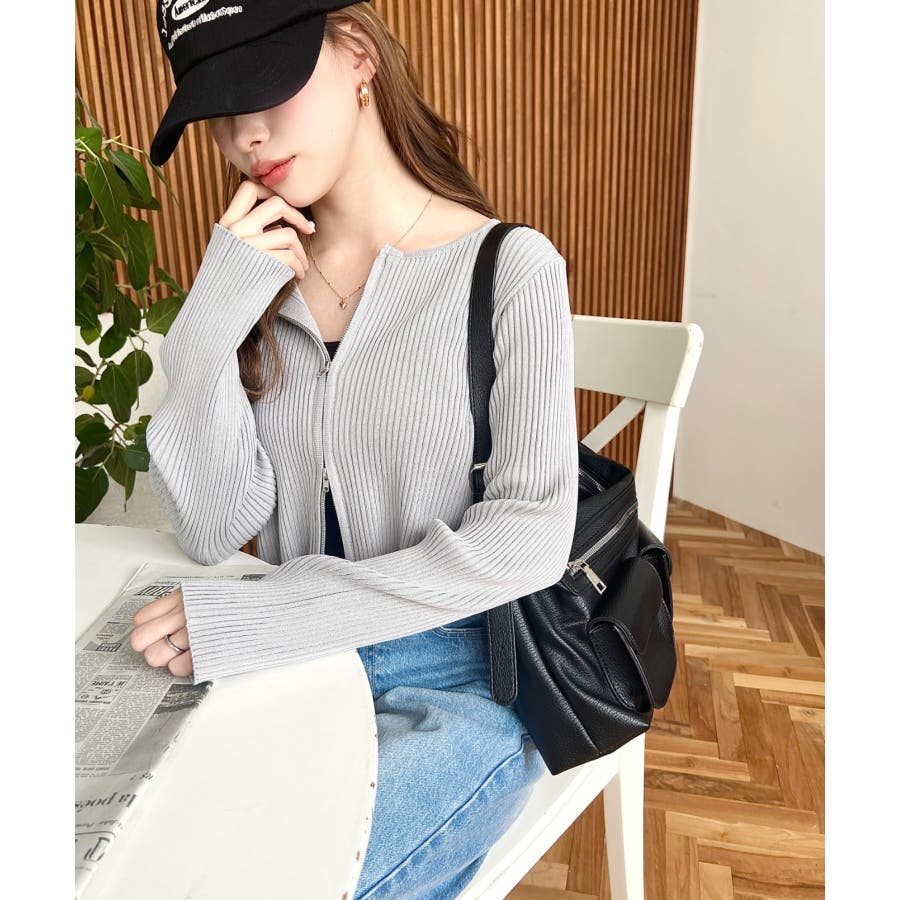 ・Wジップのトレンドライクなデザインに、大人カジュアルなリブ素材で上品さも併せ持つリブニットカーディガン。