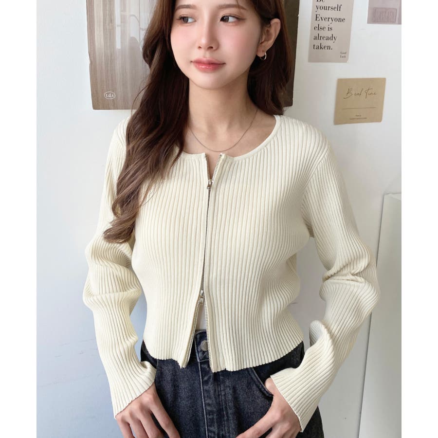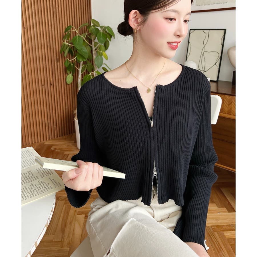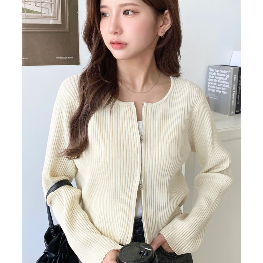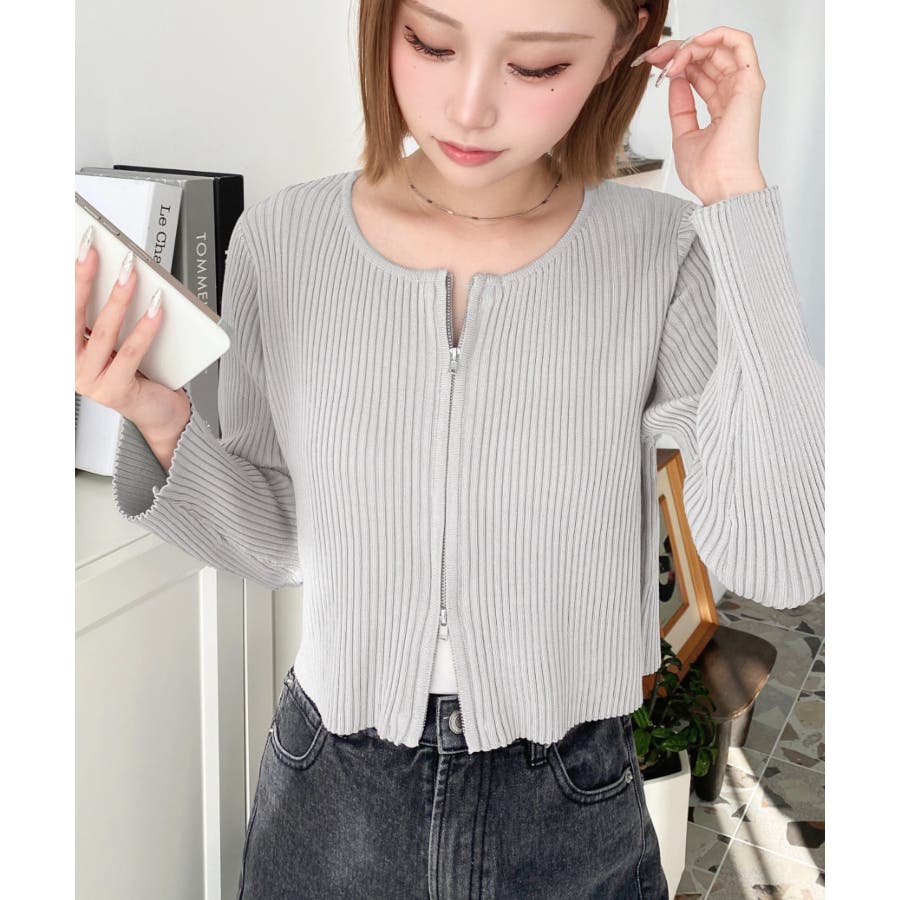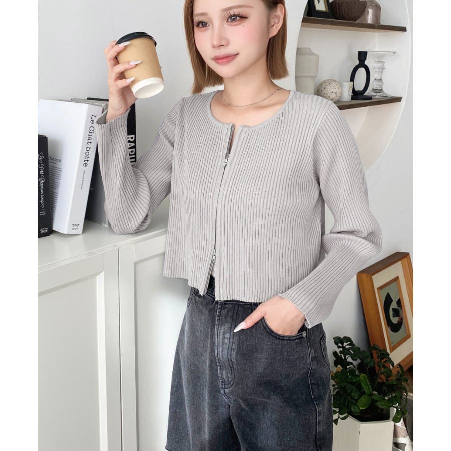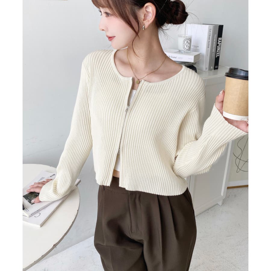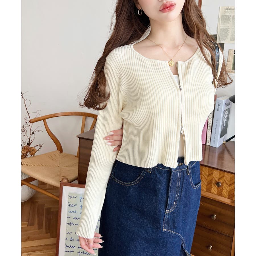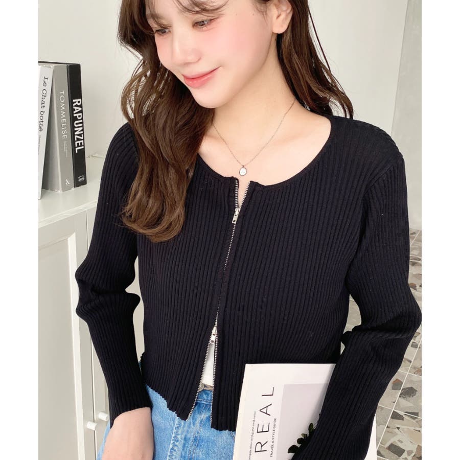 ・Wジップのトレンドライクなデザインに、大人カジュアルなリブ素材で上品さも併せ持つリブニットカーディガン。