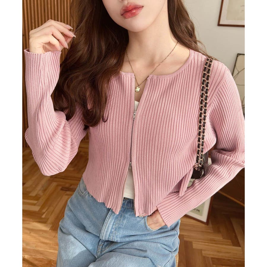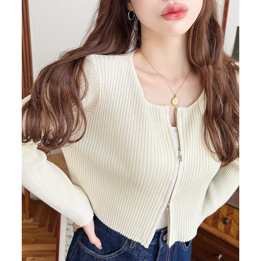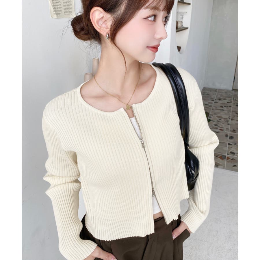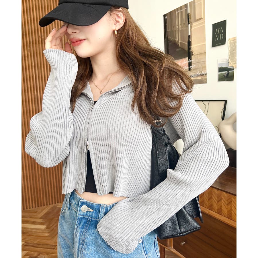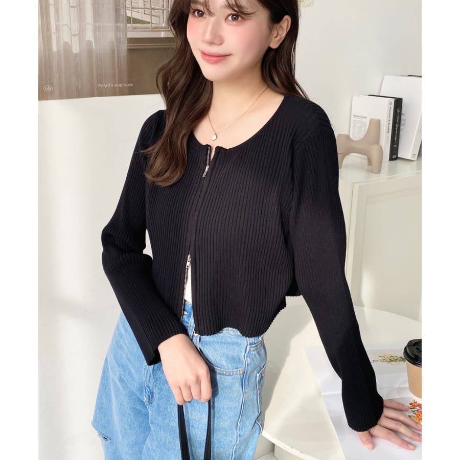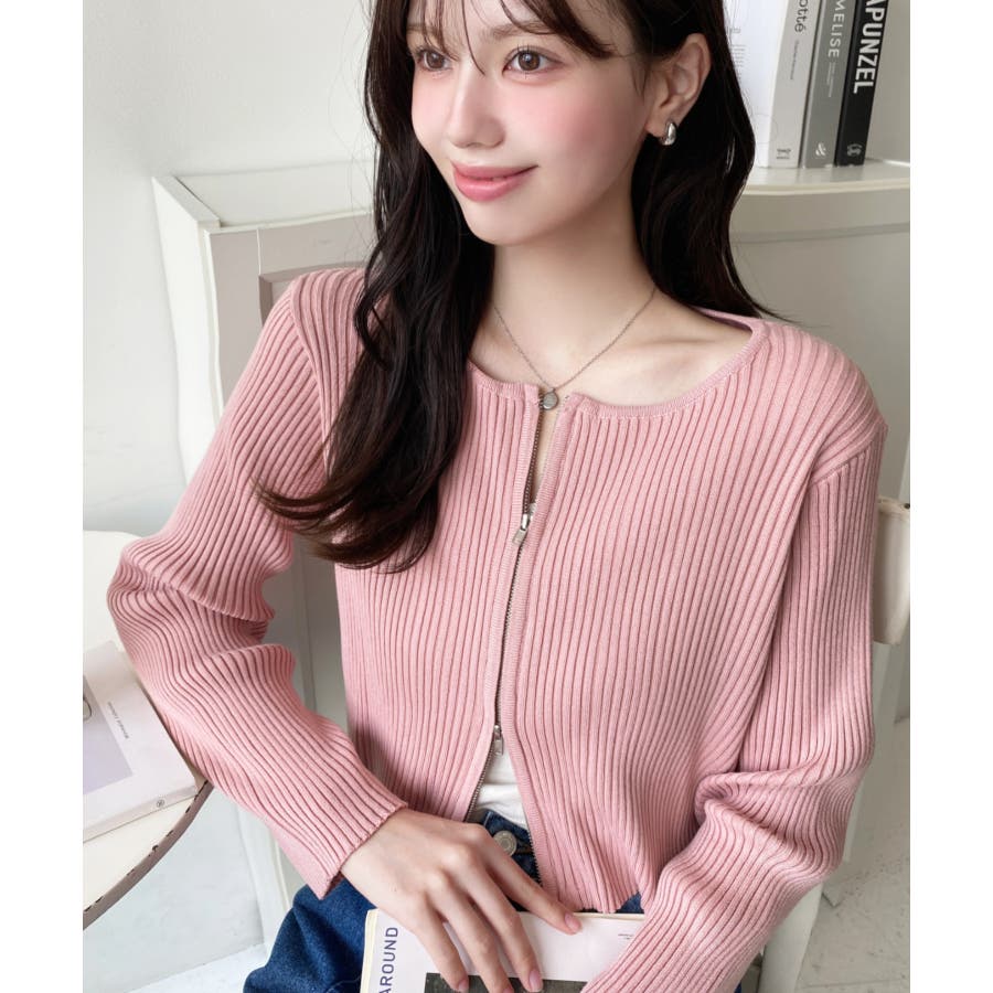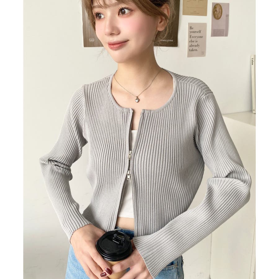 ・Wジップのトレンドライクなデザインに、大人カジュアルなリブ素材で上品さも併せ持つリブニットカーディガン。