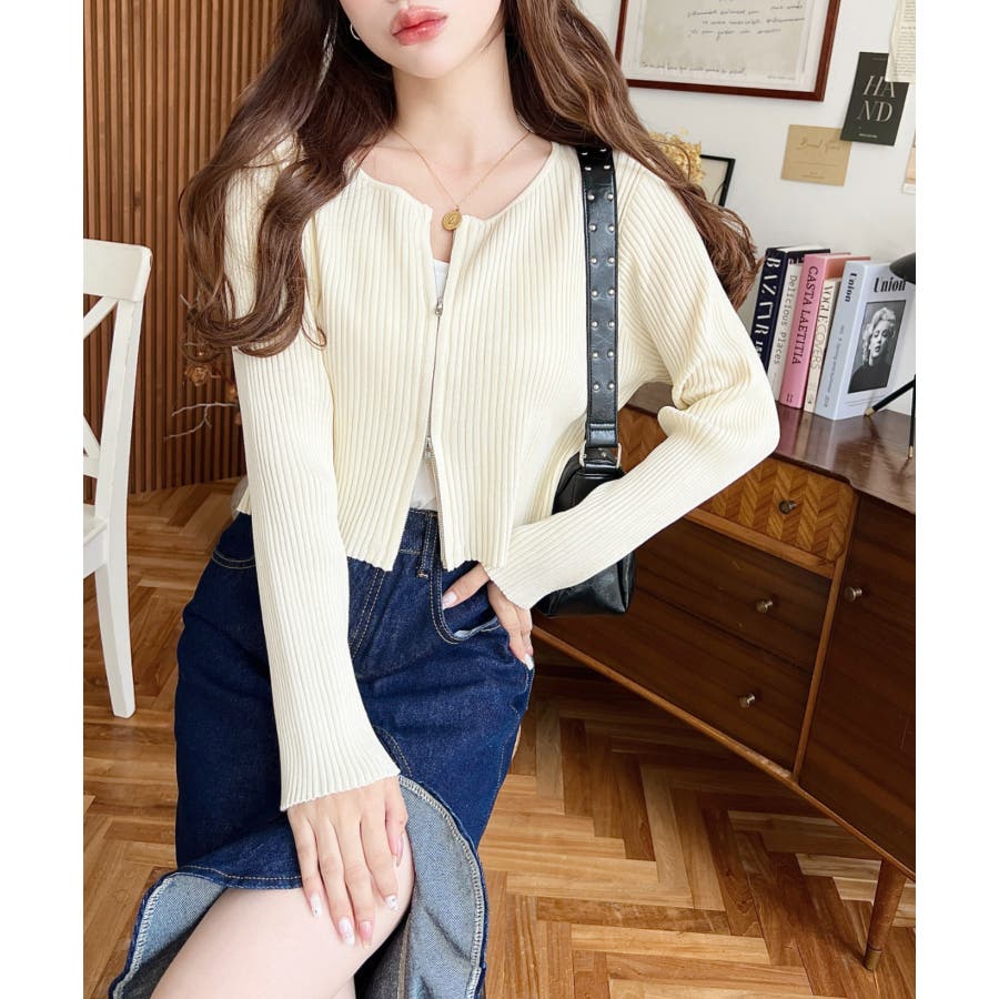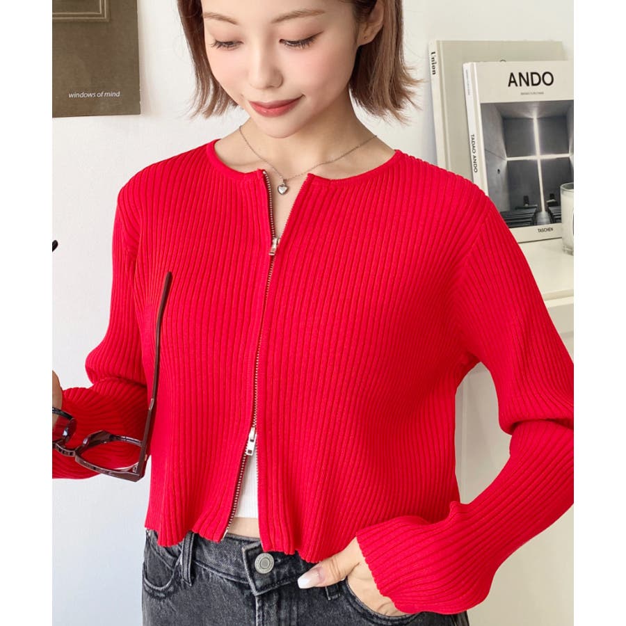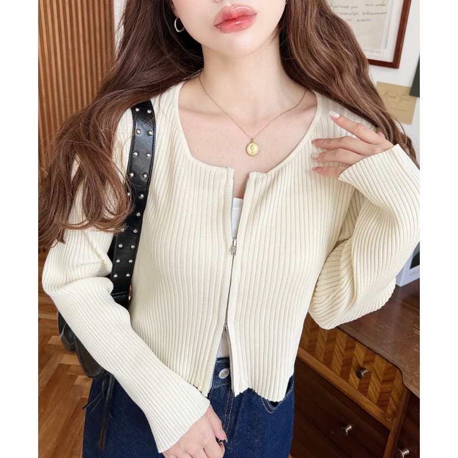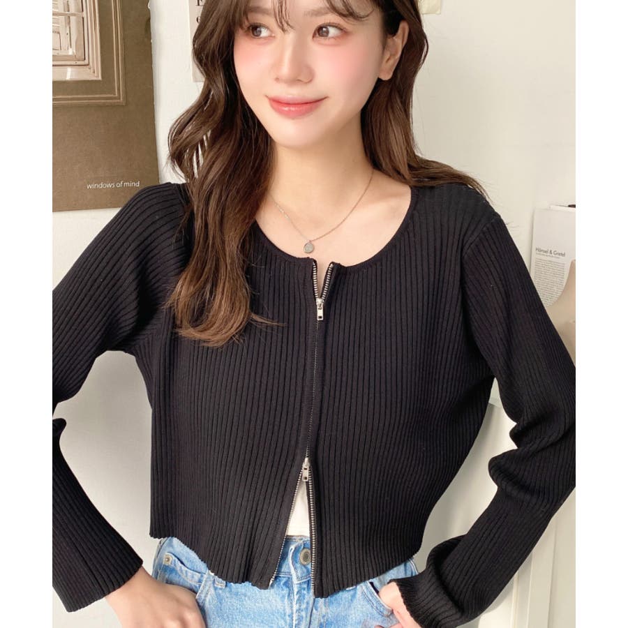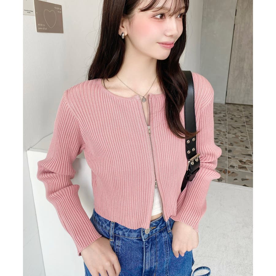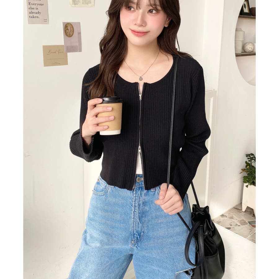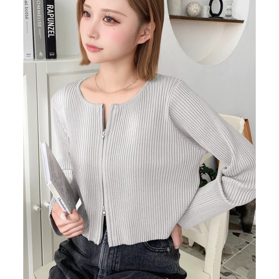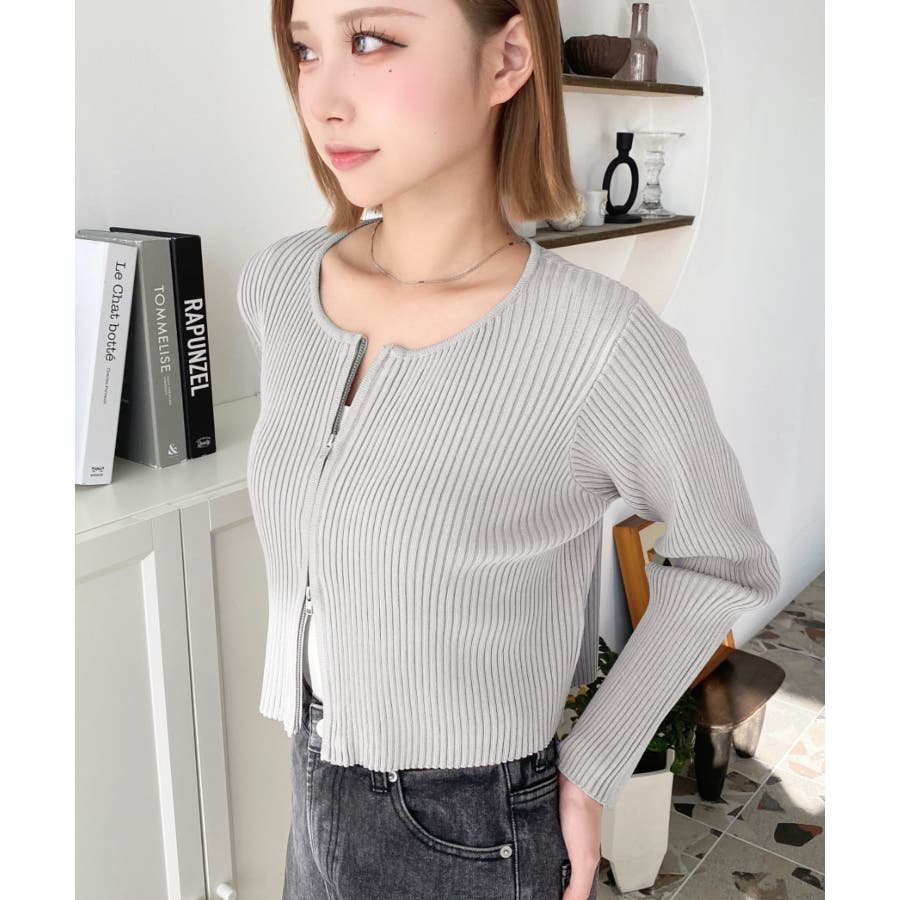 ・Wジップのトレンドライクなデザインに、大人カジュアルなリブ素材で上品さも併せ持つリブニットカーディガン。
