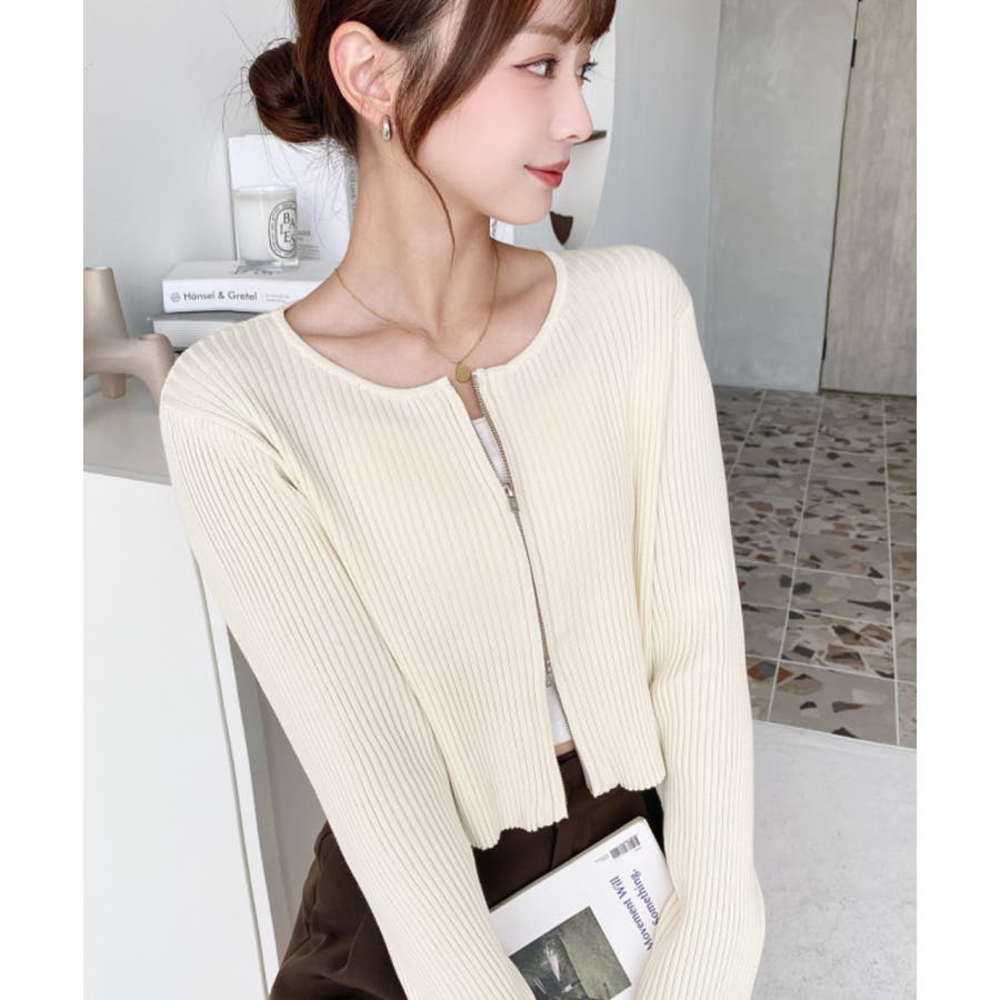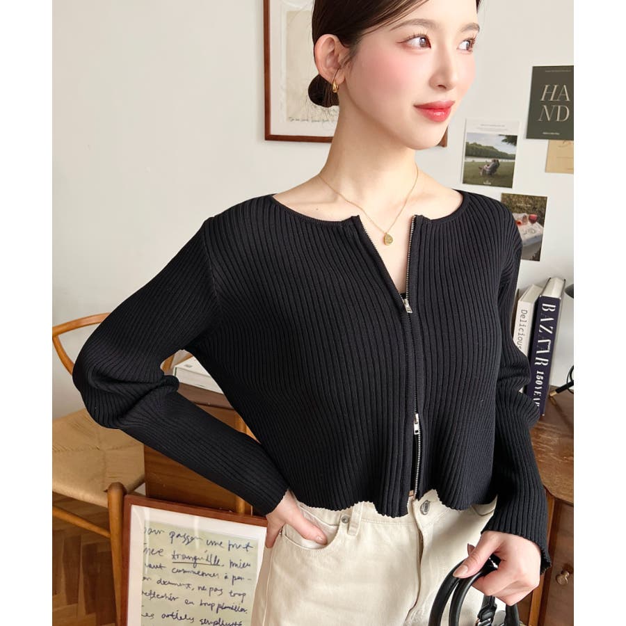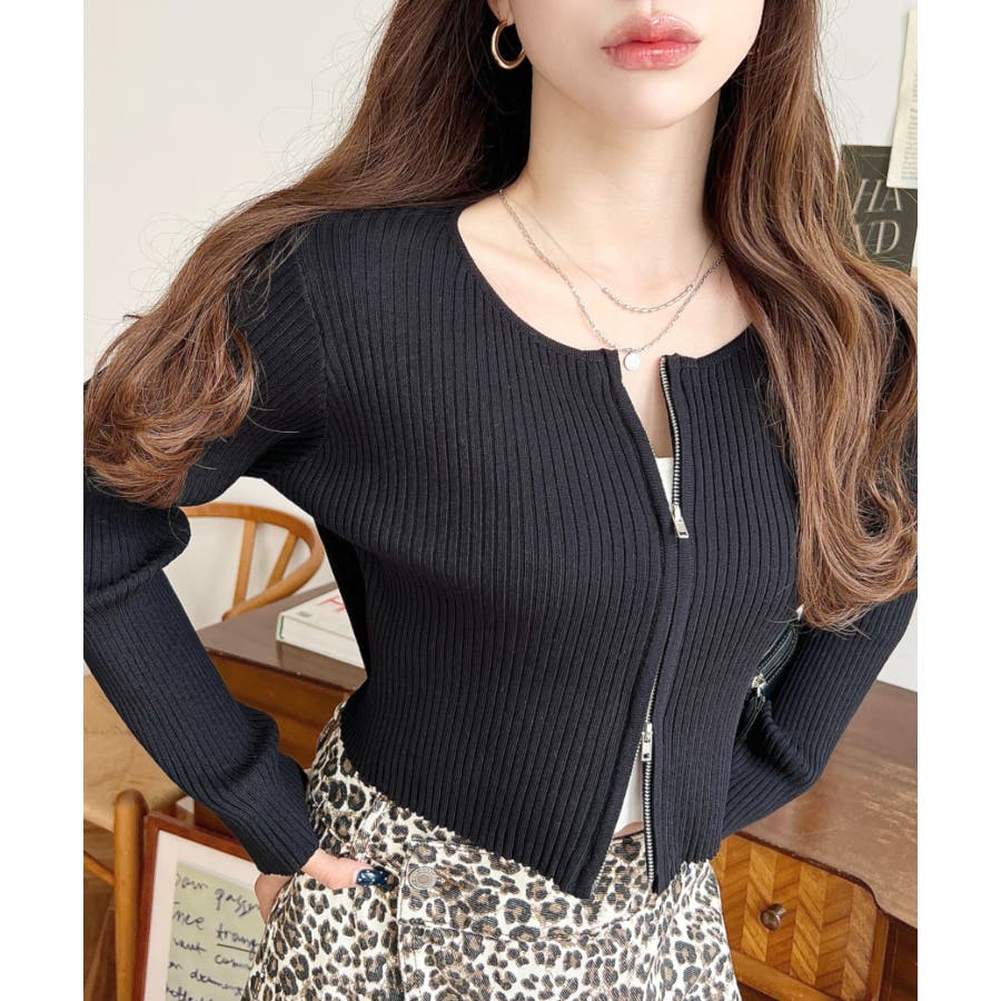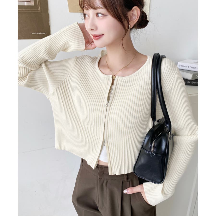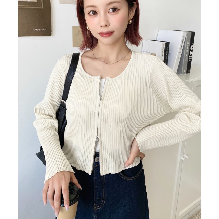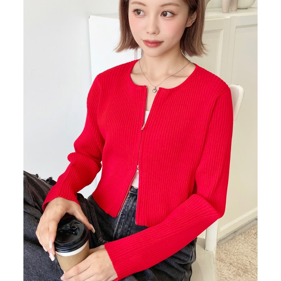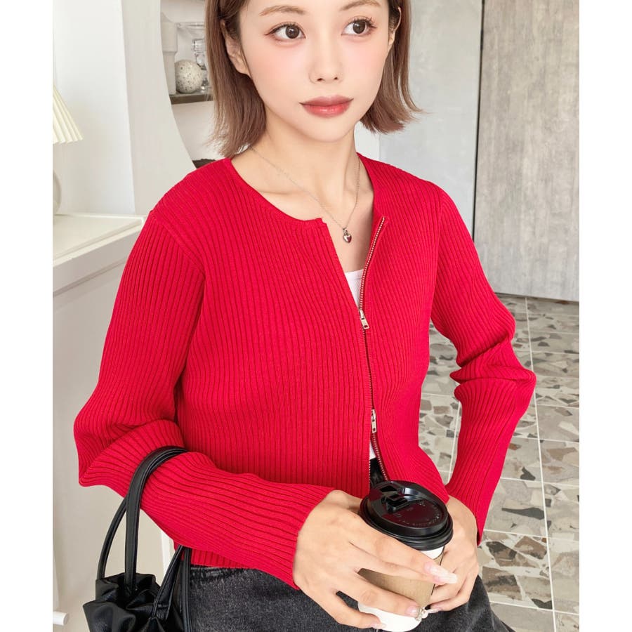 ・Wジップのトレンドライクなデザインに、大人カジュアルなリブ素材で上品さも併せ持つリブニットカーディガン。