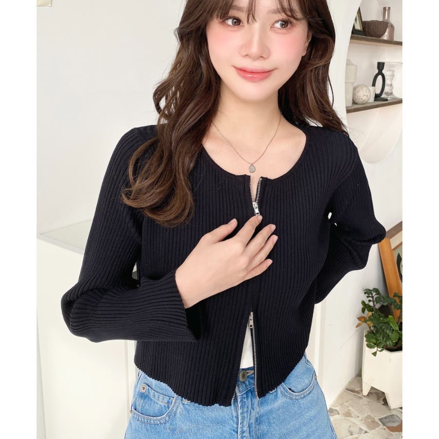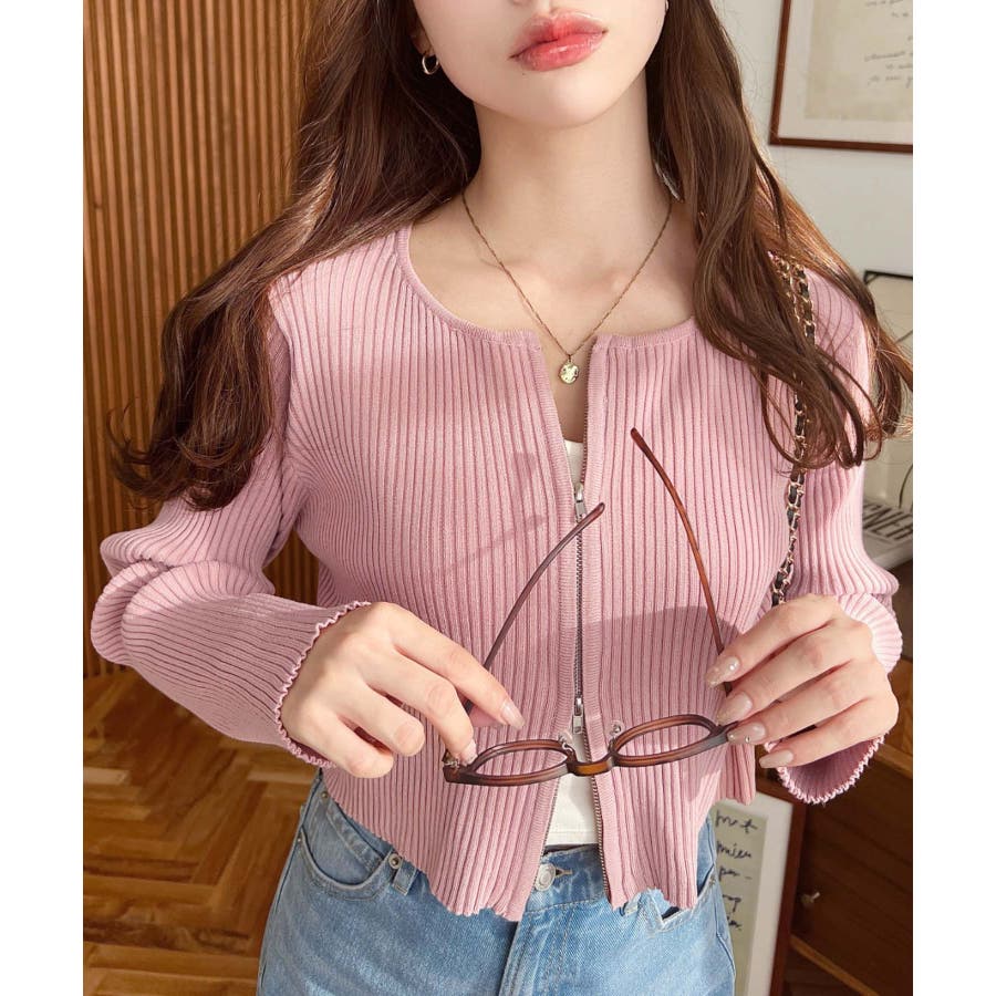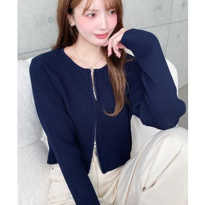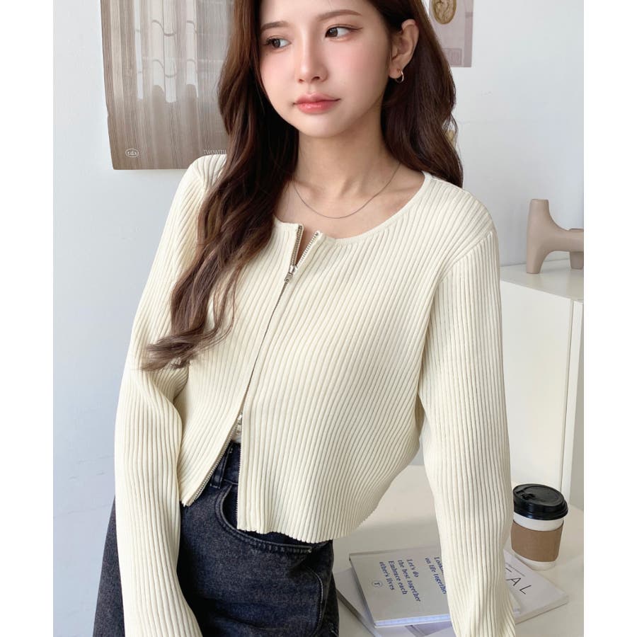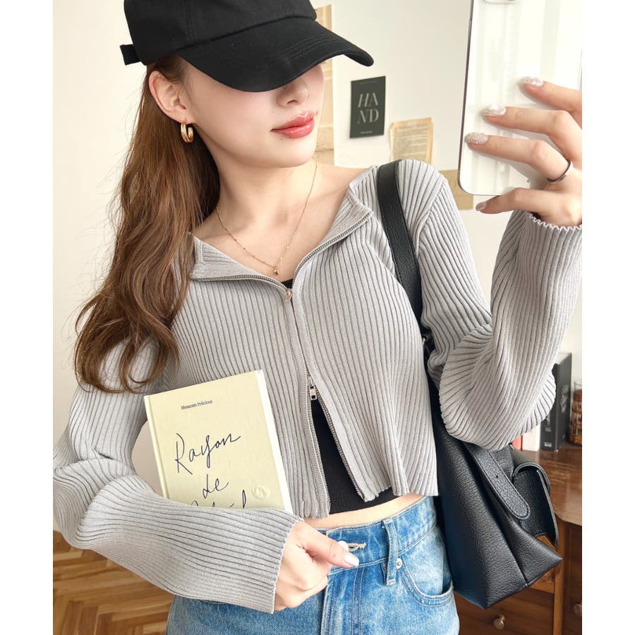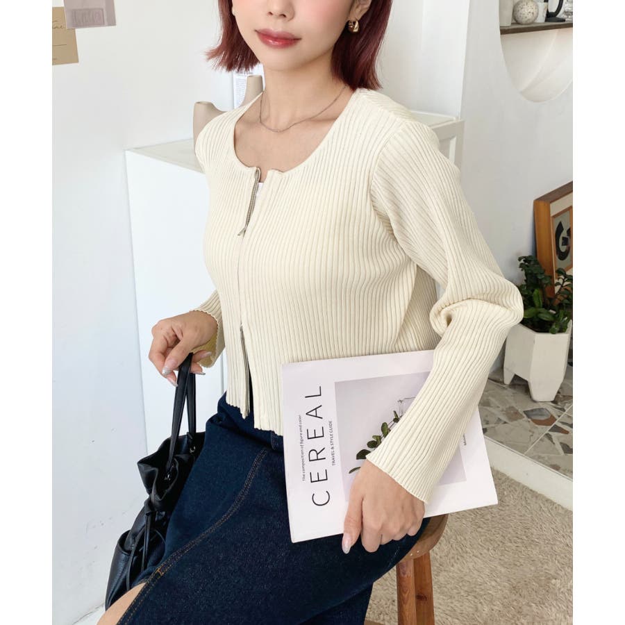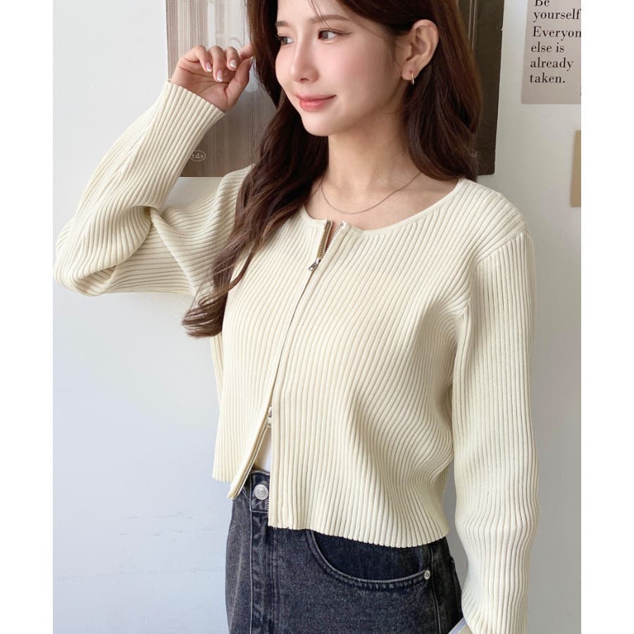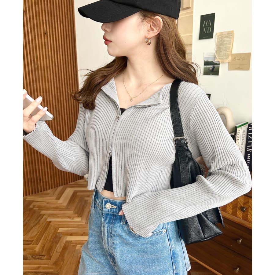 ・Wジップのトレンドライクなデザインに、大人カジュアルなリブ素材で上品さも併せ持つリブニットカーディガン。