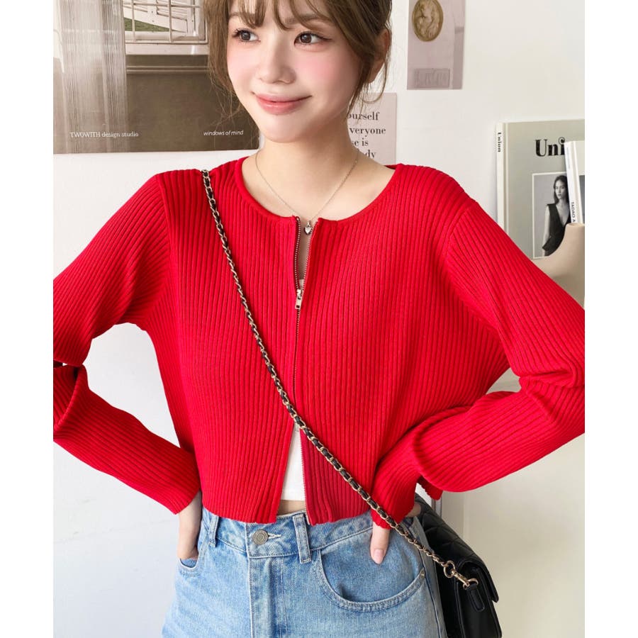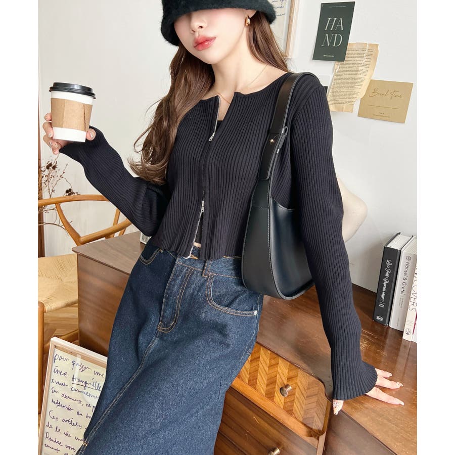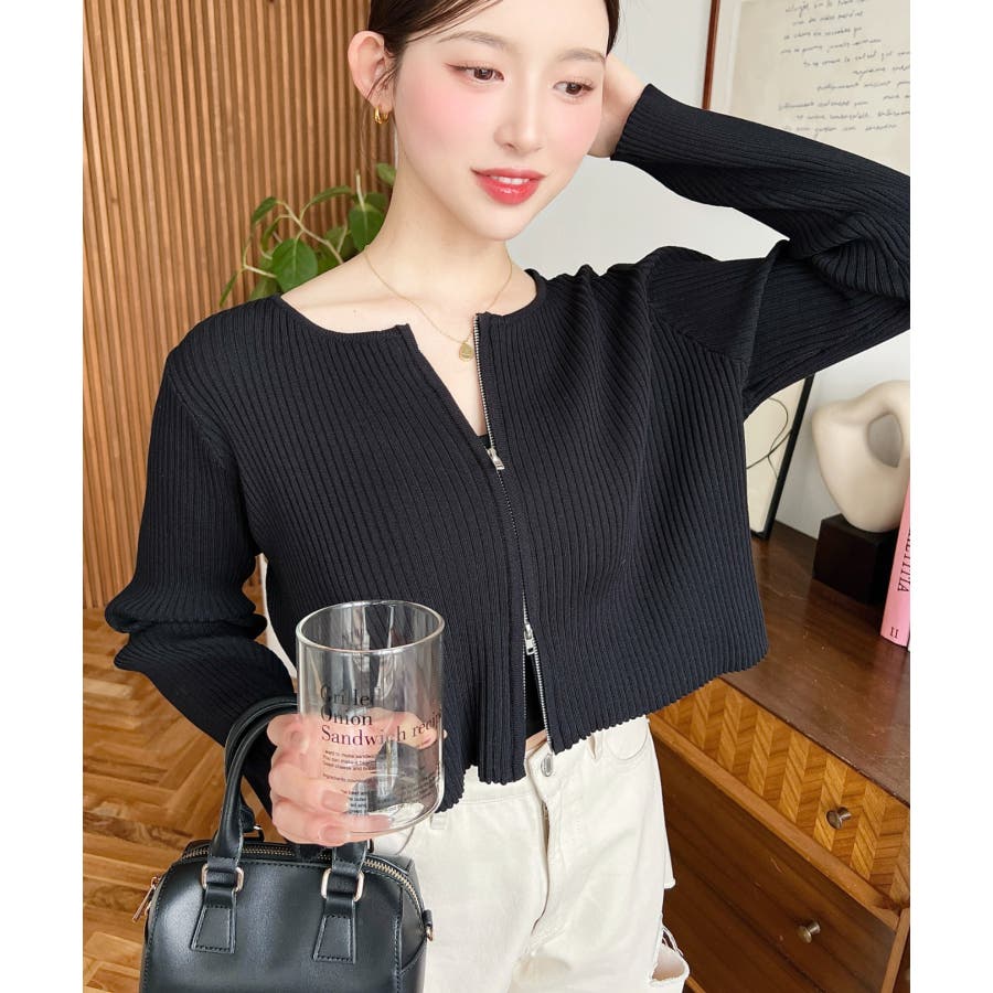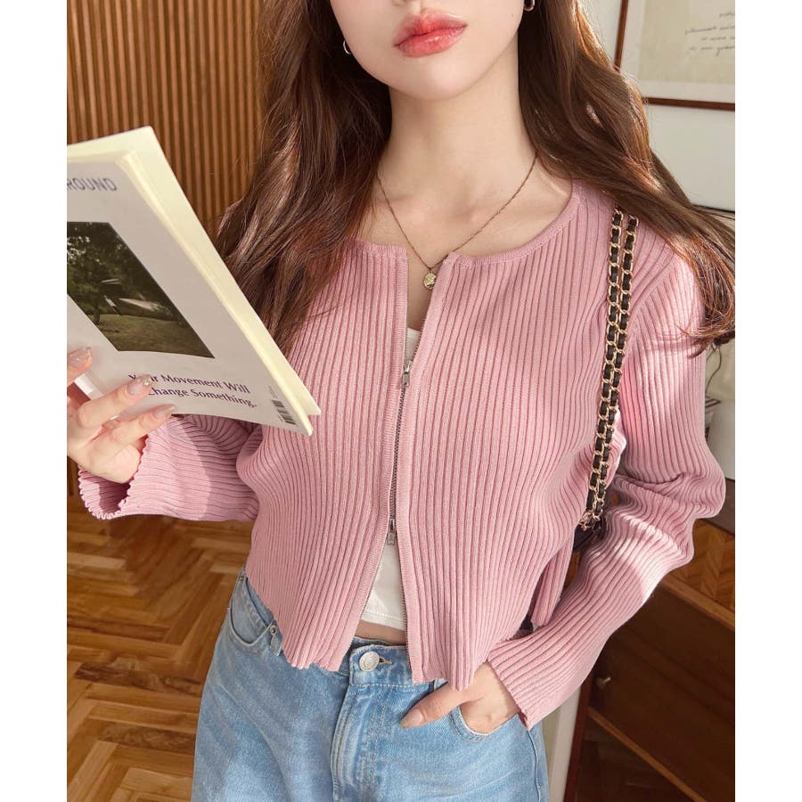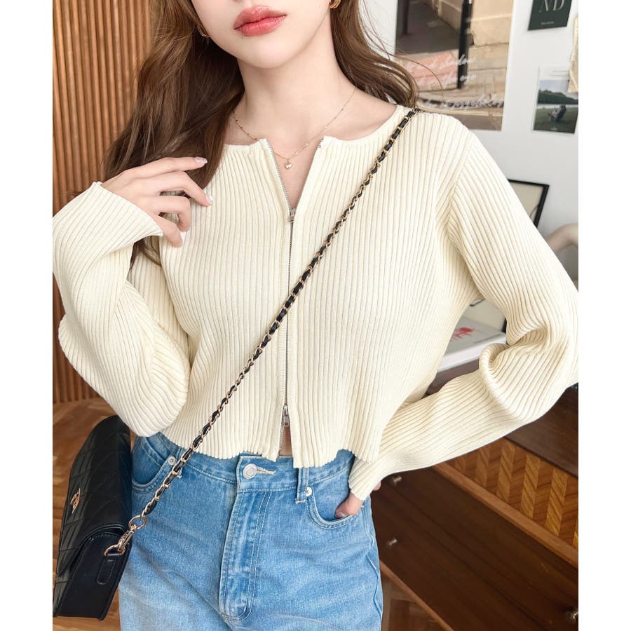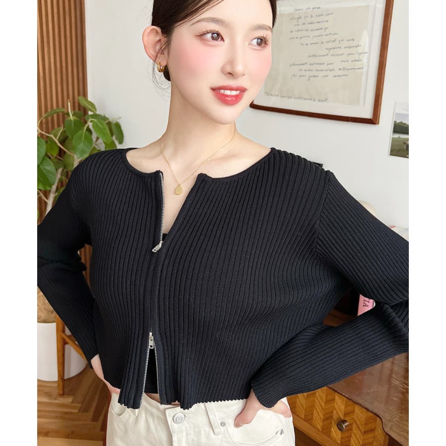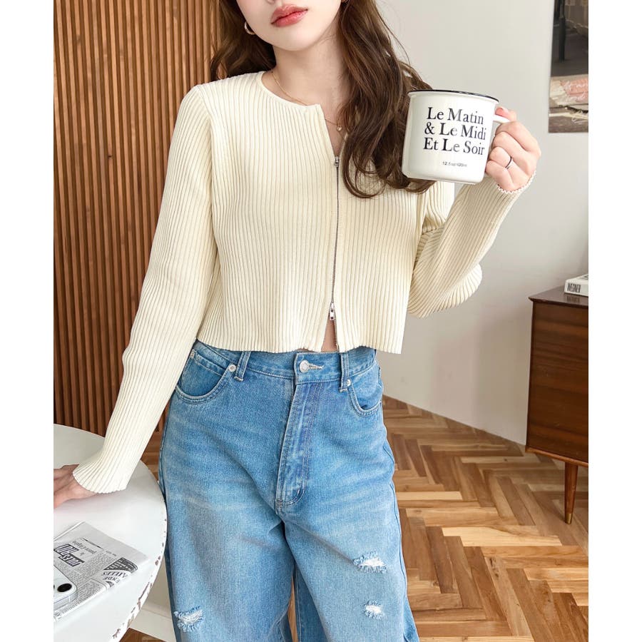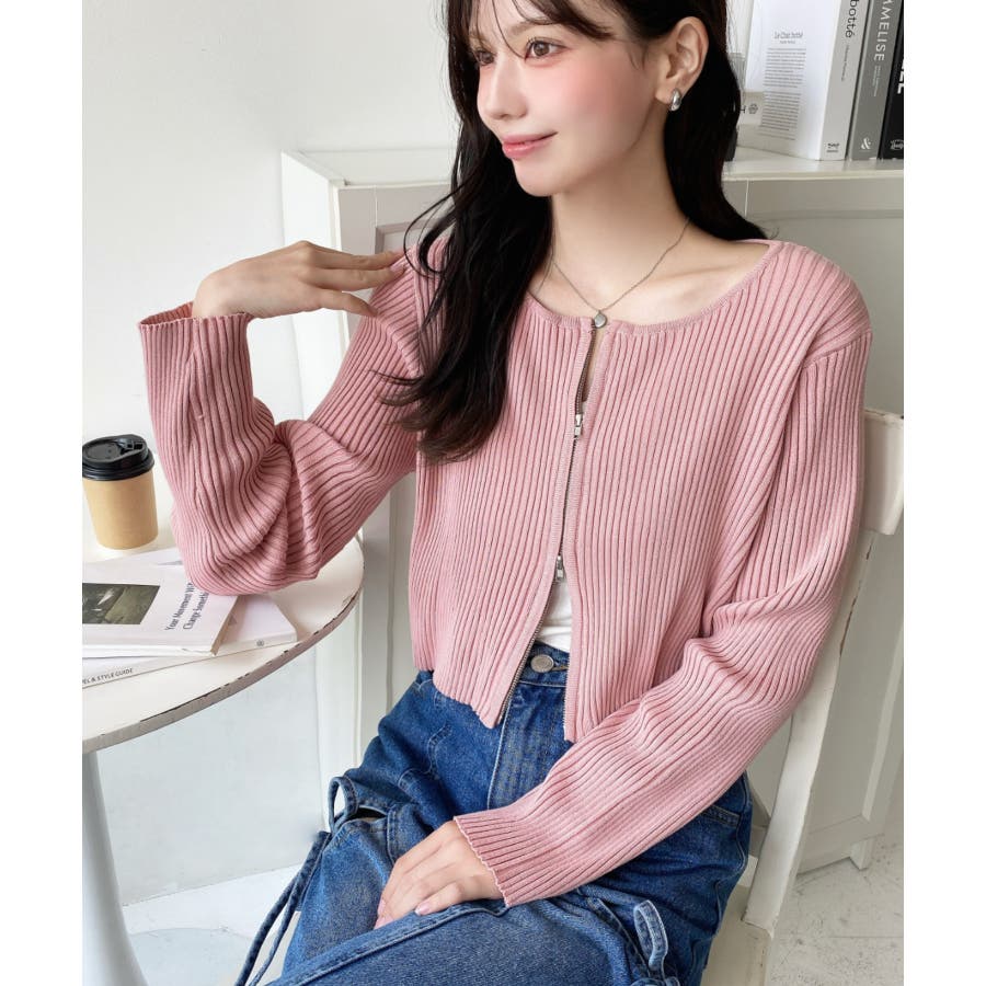 ・Wジップのトレンドライクなデザインに、大人カジュアルなリブ素材で上品さも併せ持つリブニットカーディガン。