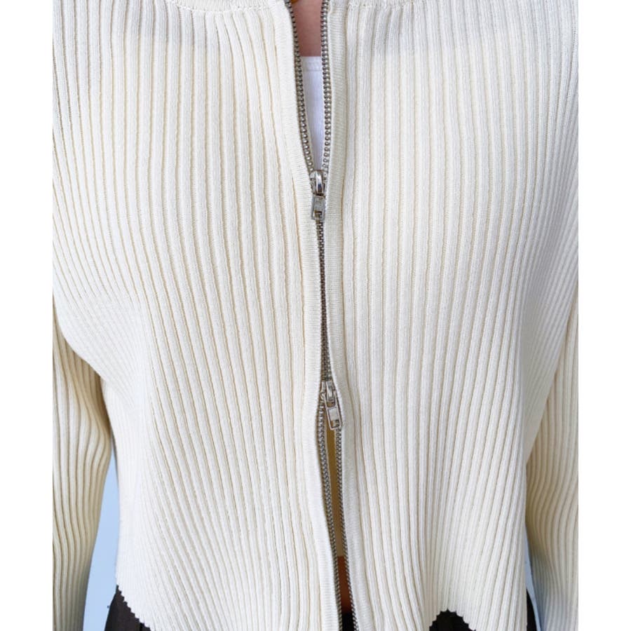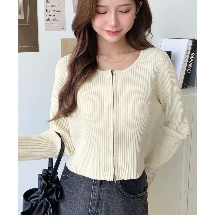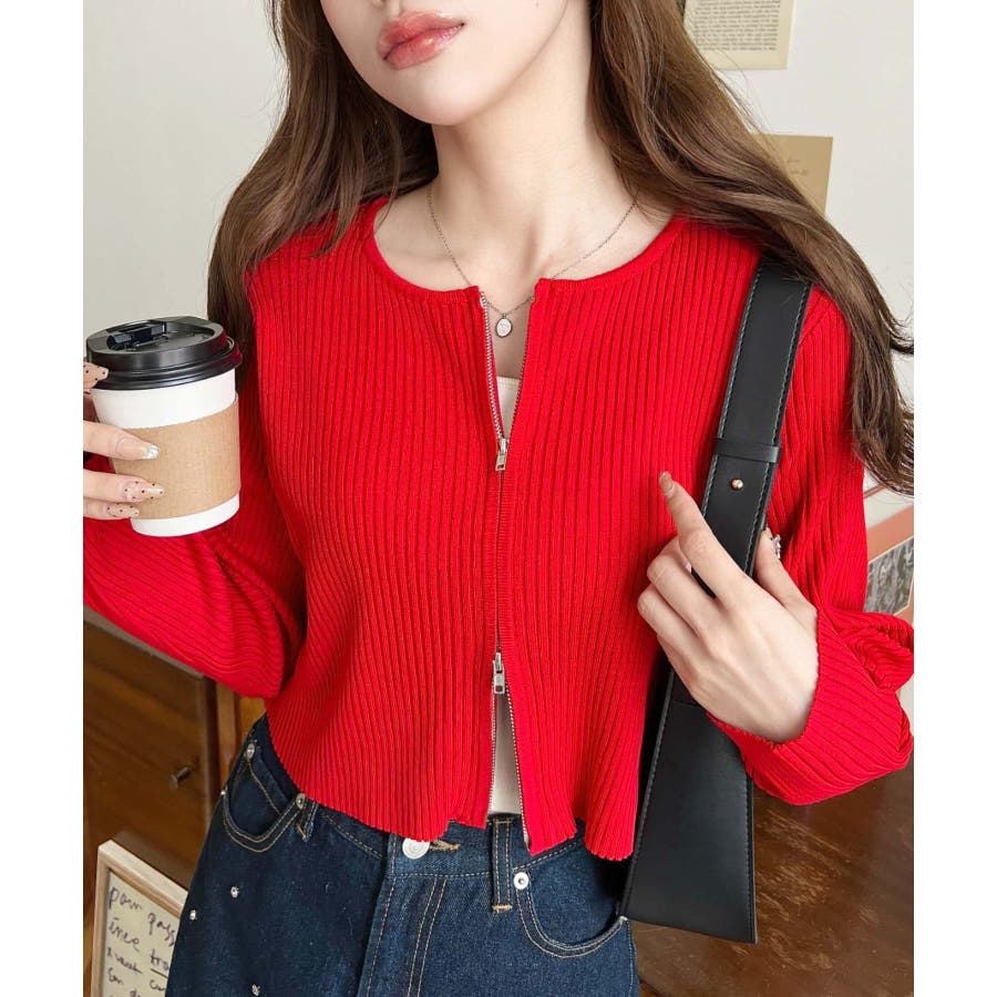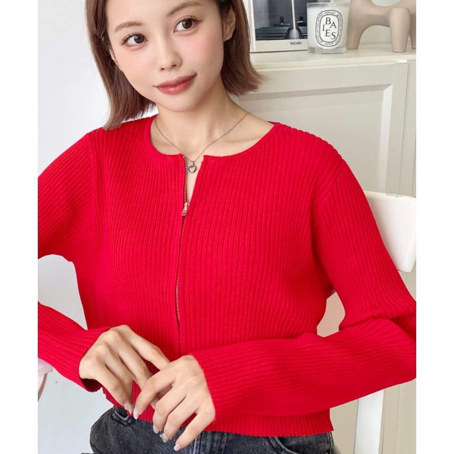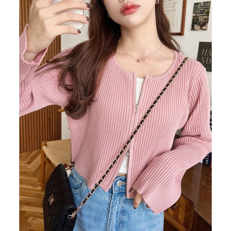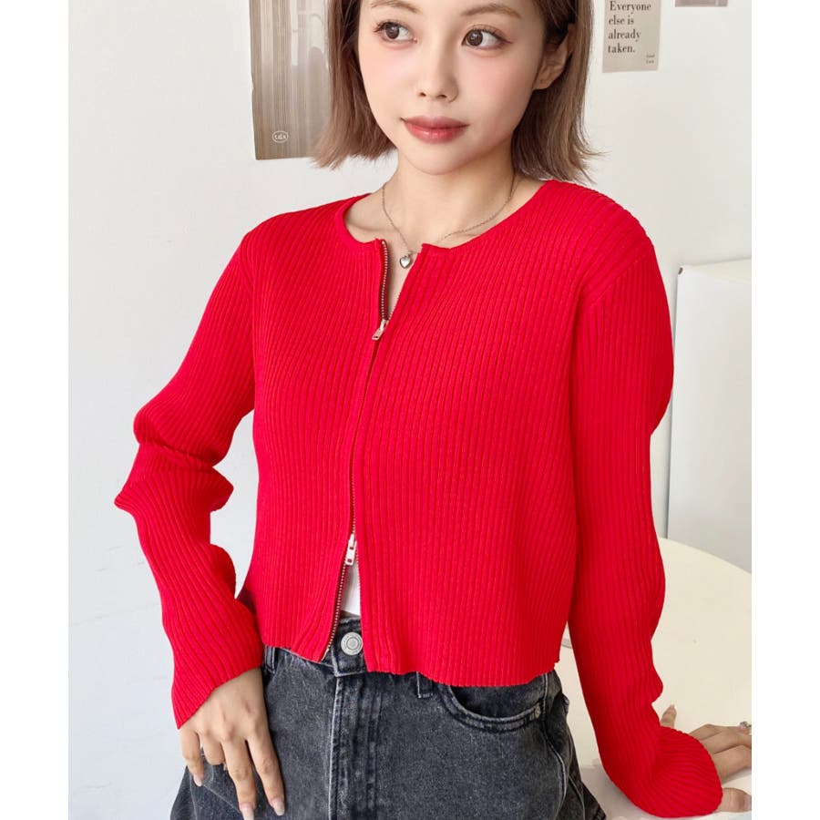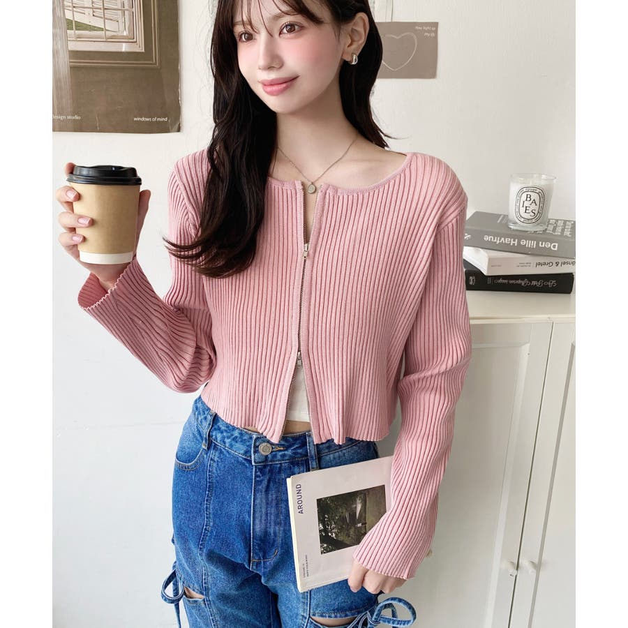 ・Wジップのトレンドライクなデザインに、大人カジュアルなリブ素材で上品さも併せ持つリブニットカーディガン。