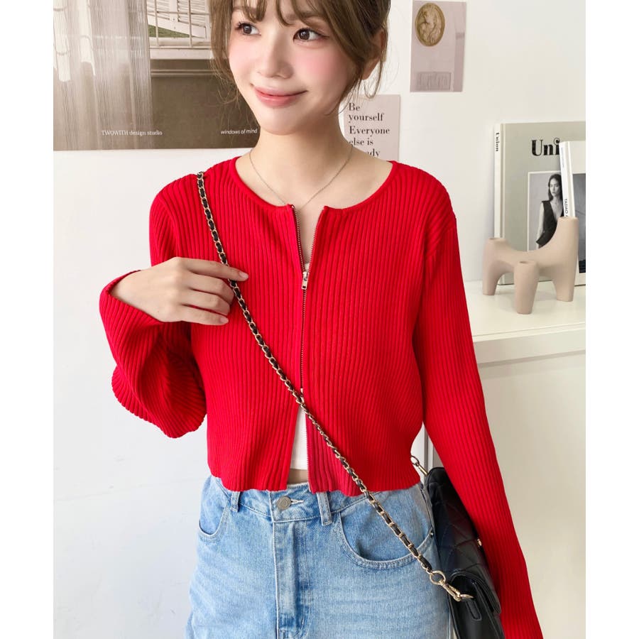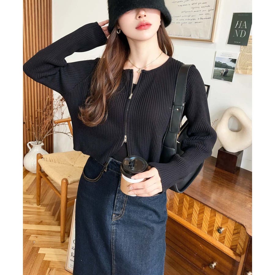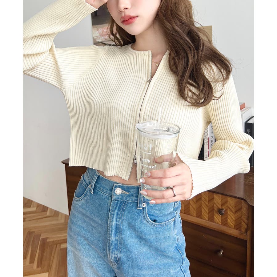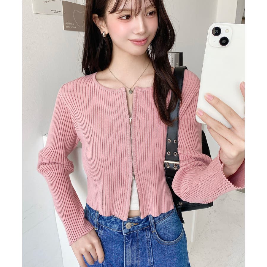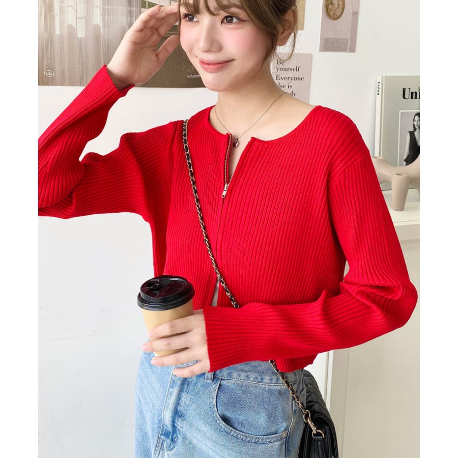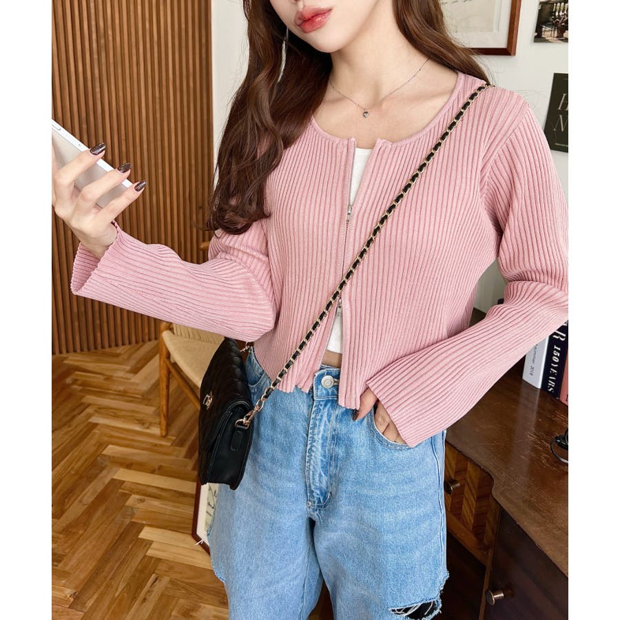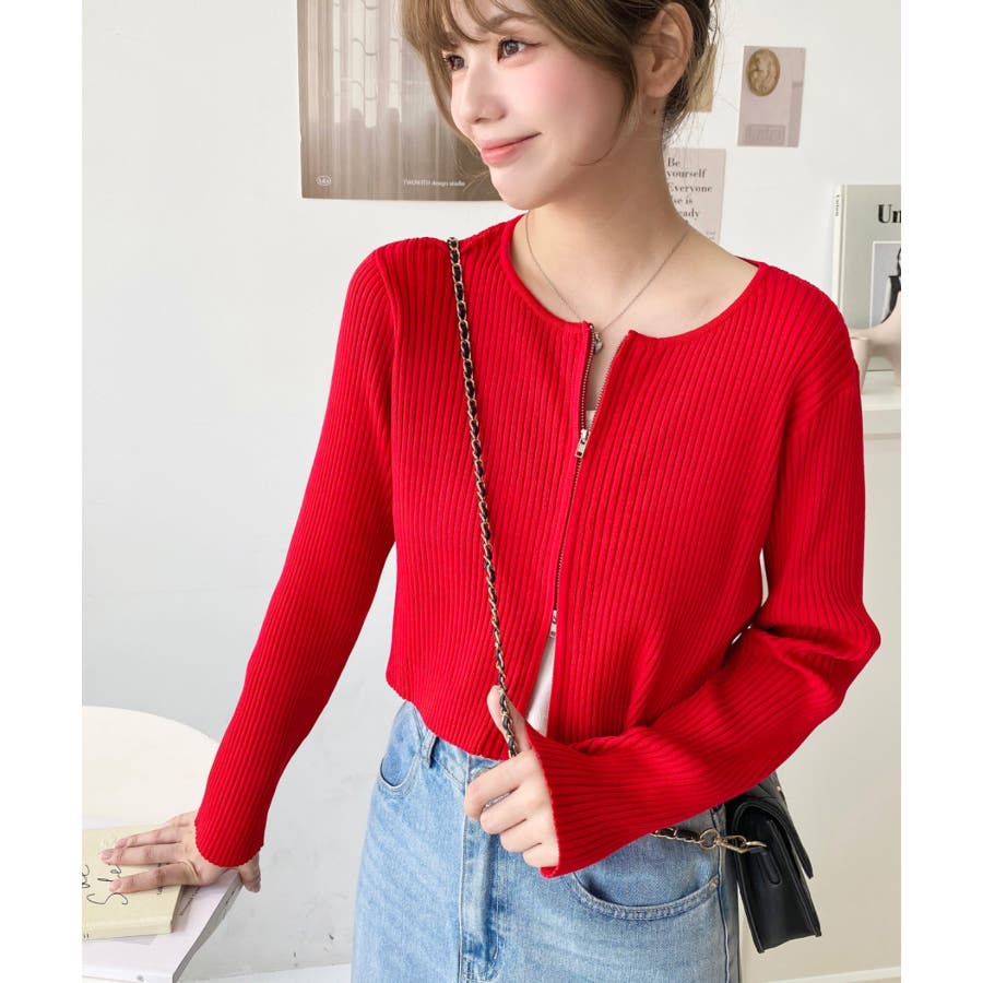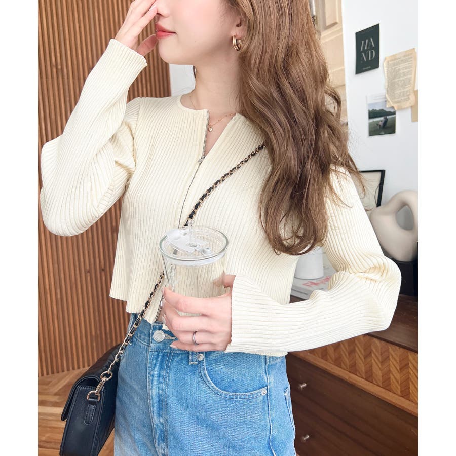 ・Wジップのトレンドライクなデザインに、大人カジュアルなリブ素材で上品さも併せ持つリブニットカーディガン。