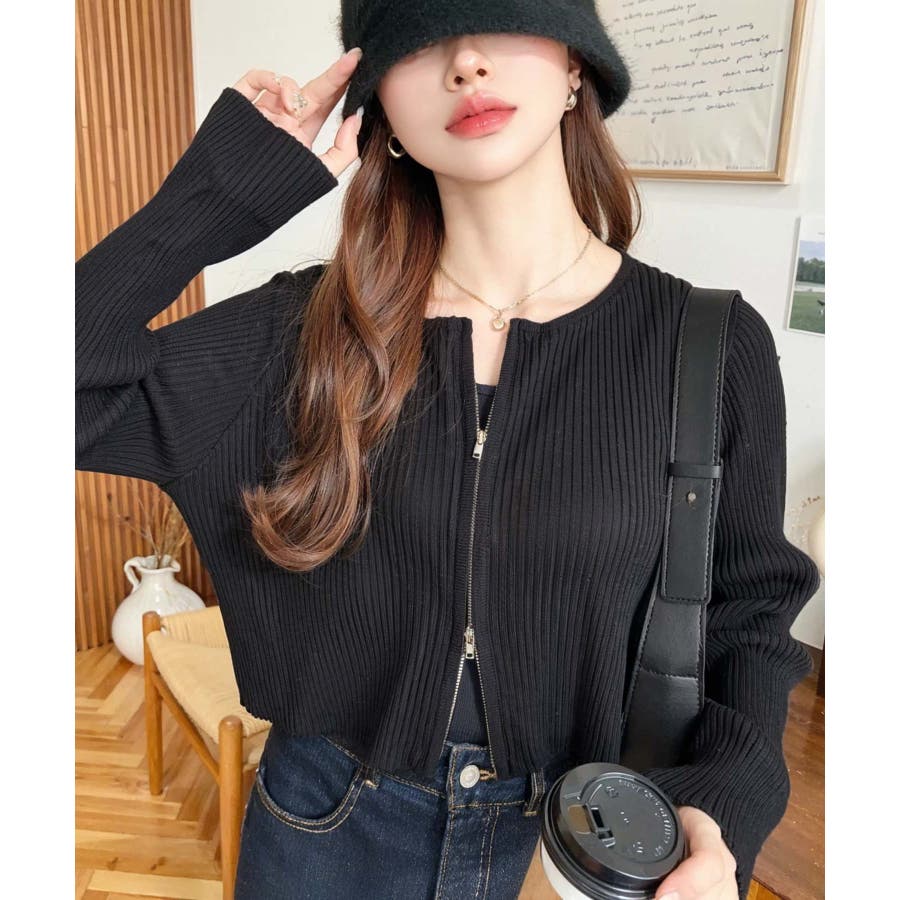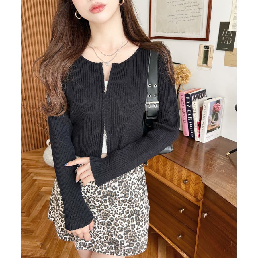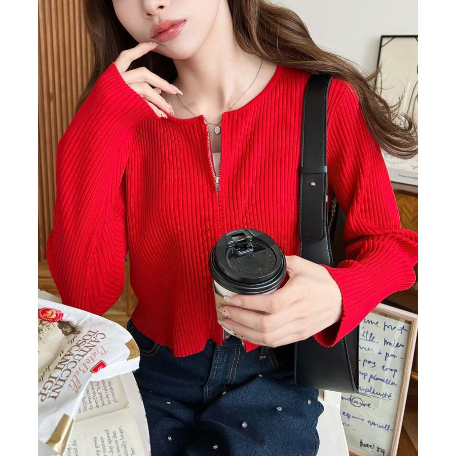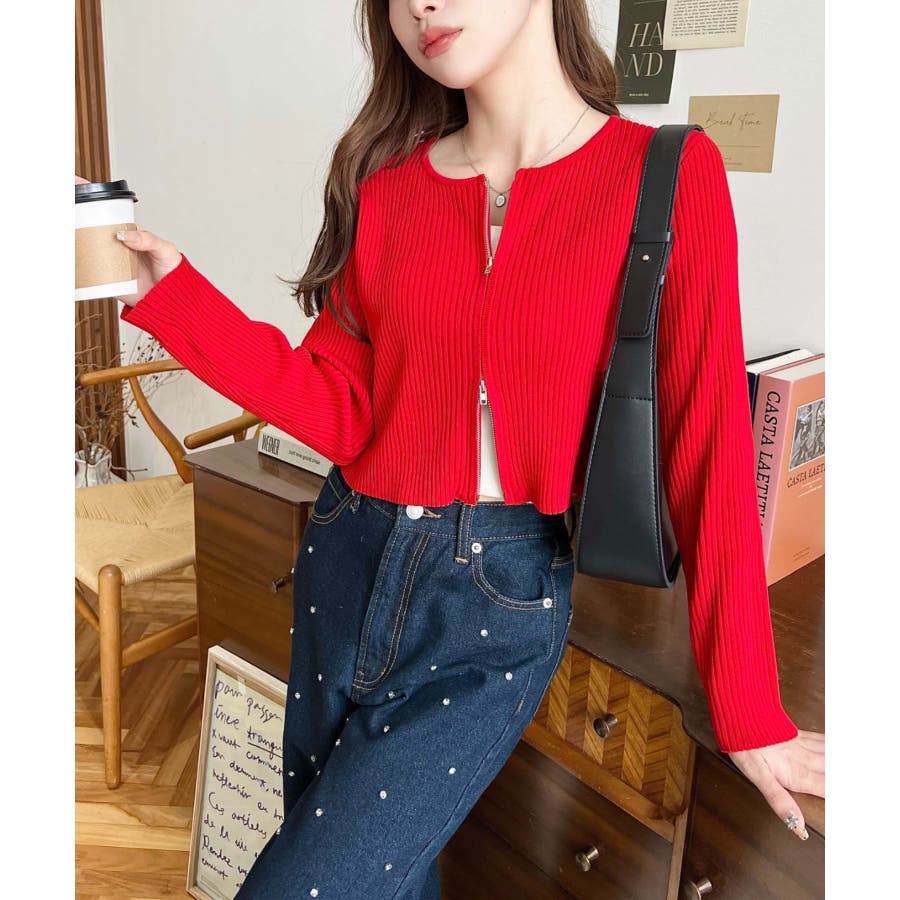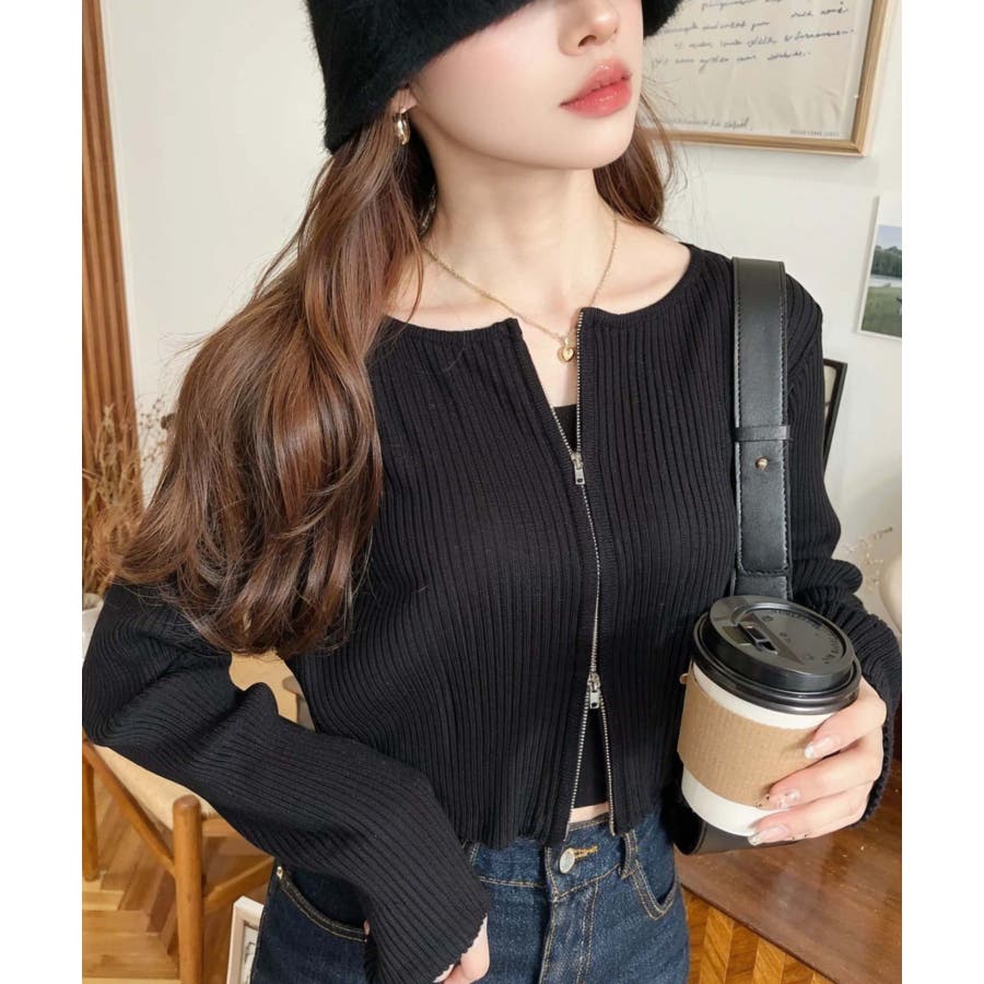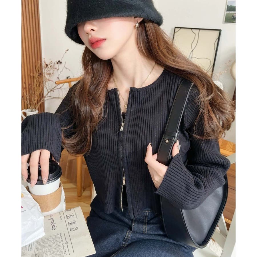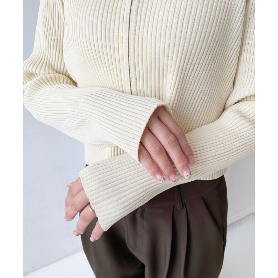 ・Wジップのトレンドライクなデザインに、大人カジュアルなリブ素材で上品さも併せ持つリブニットカーディガン。
