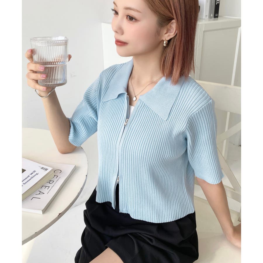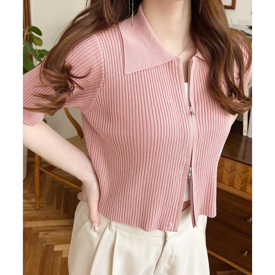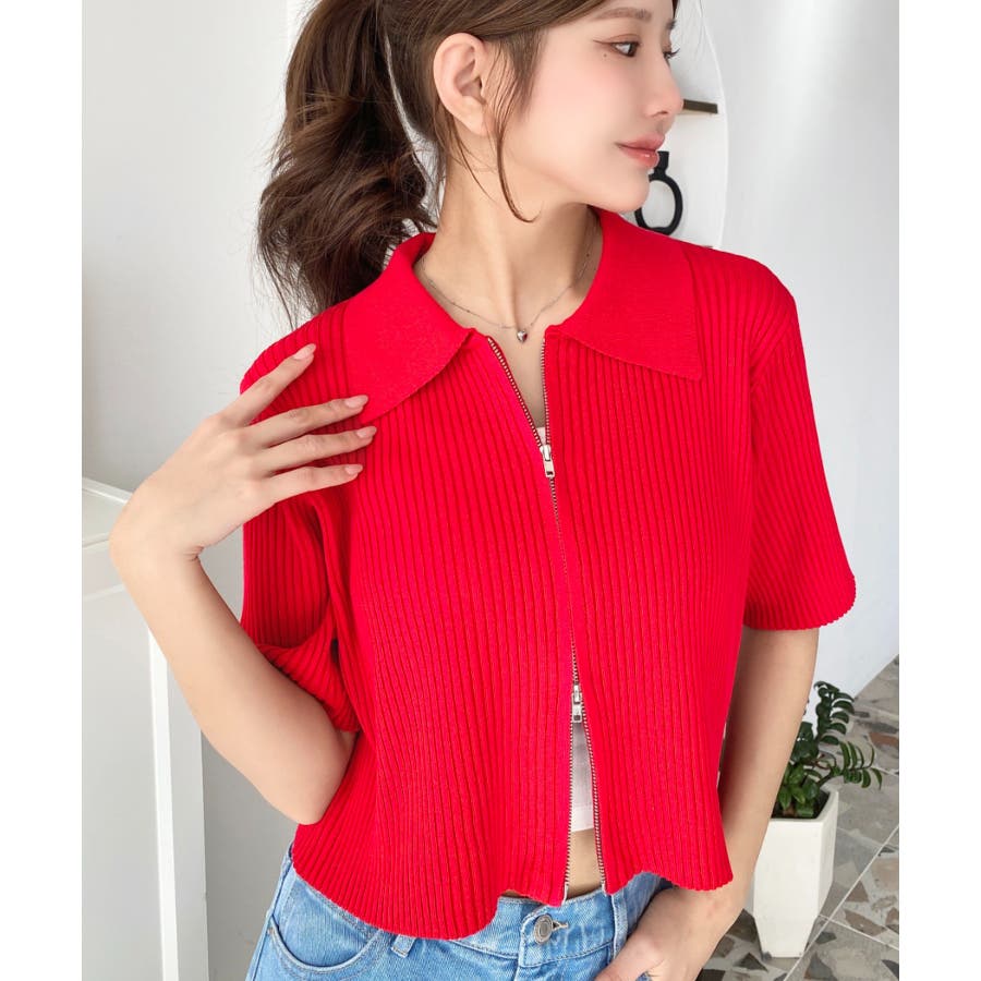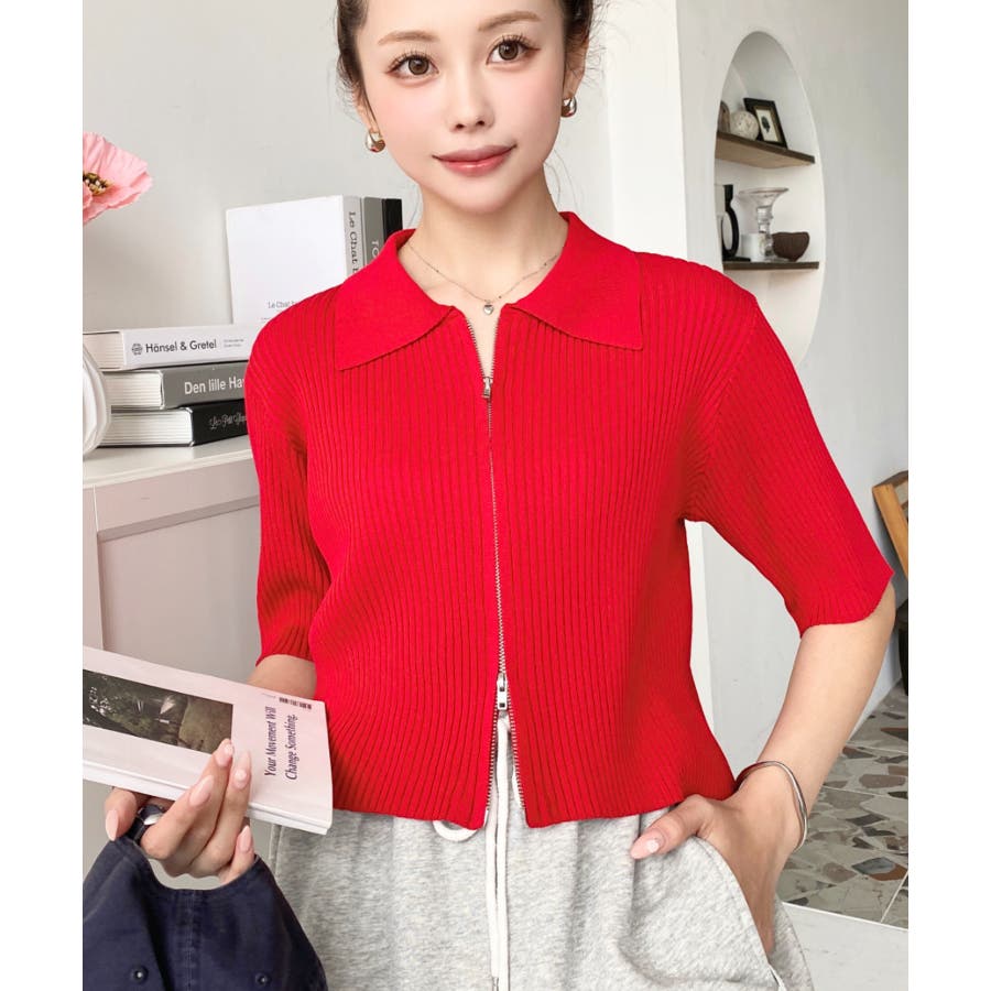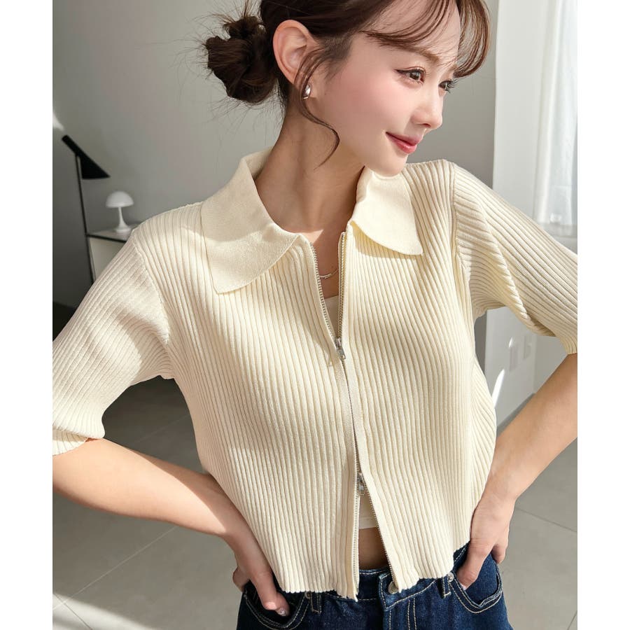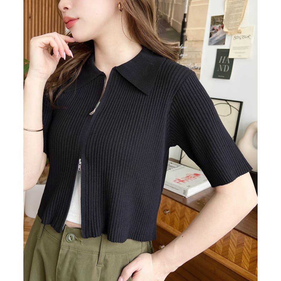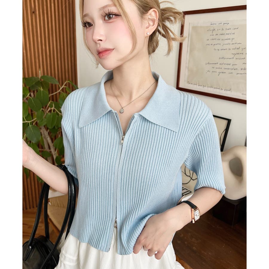 【トレンドのWジップ衿付き半袖カーディガンが登場!】