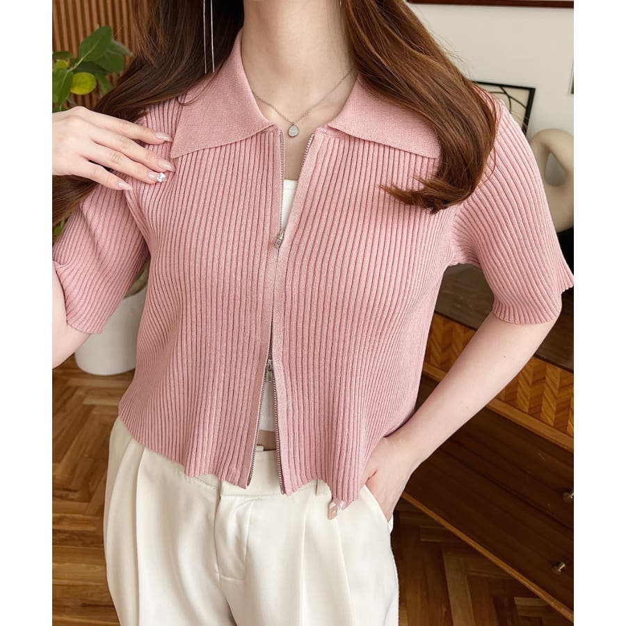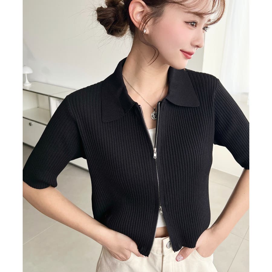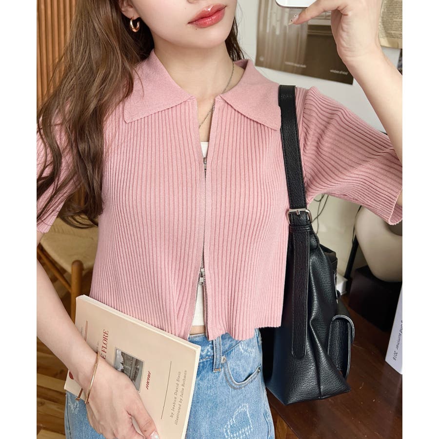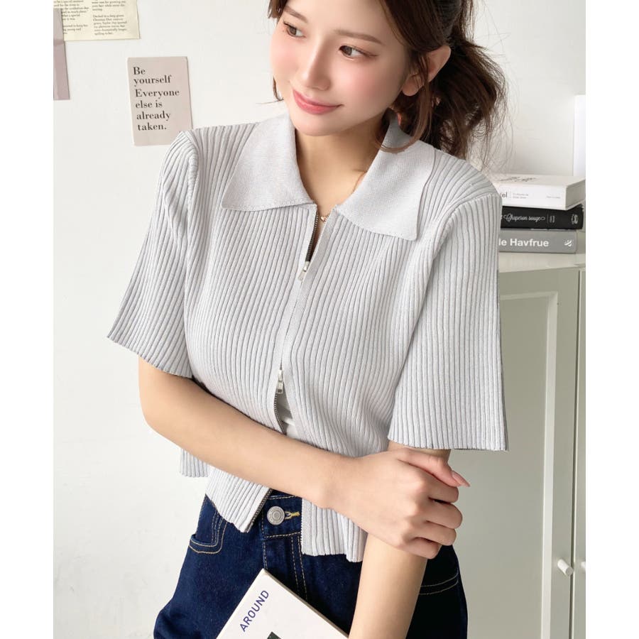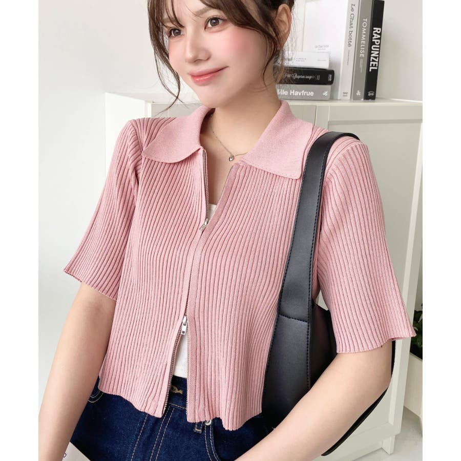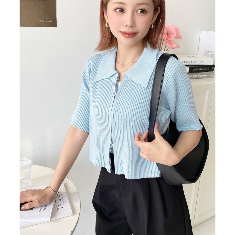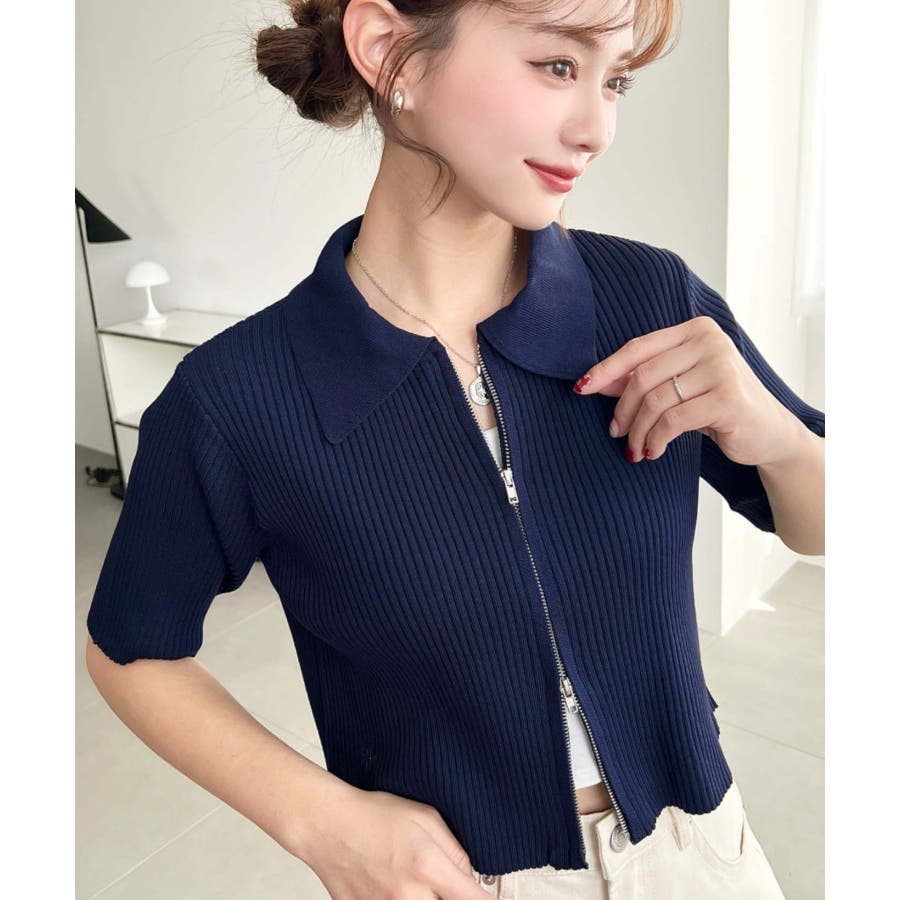 【トレンドのWジップ衿付き半袖カーディガンが登場!】