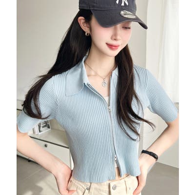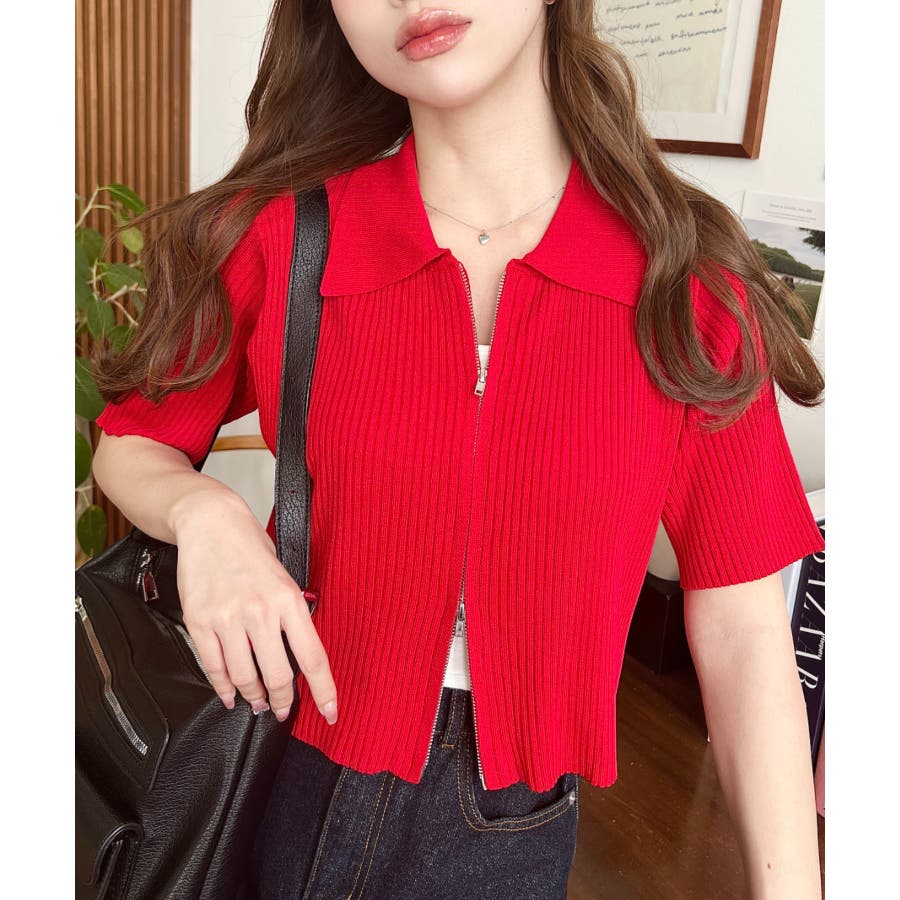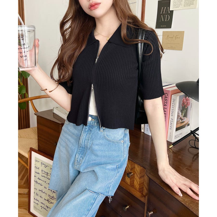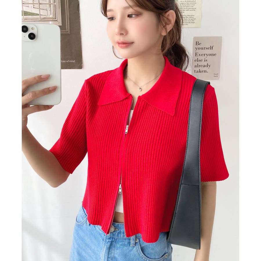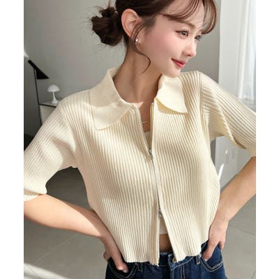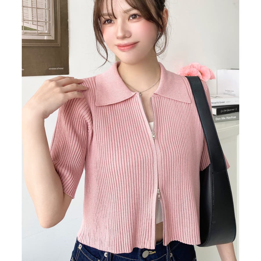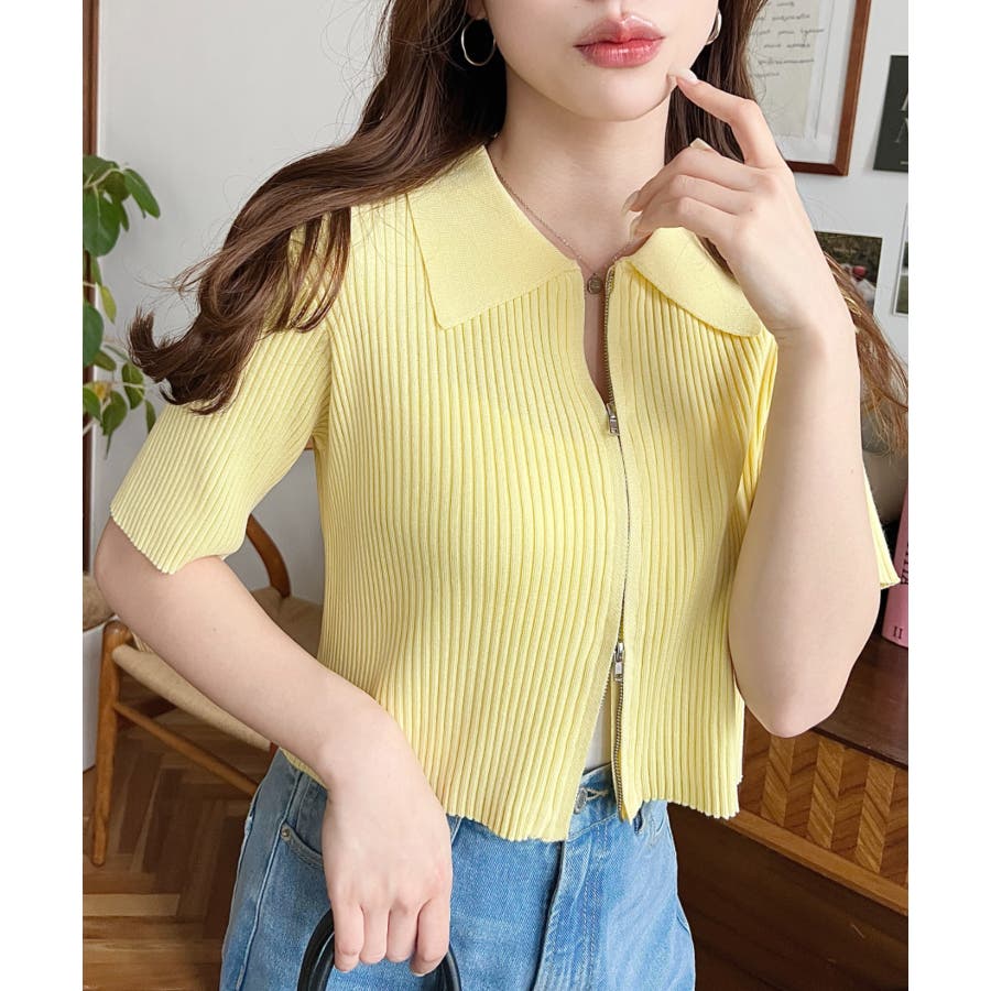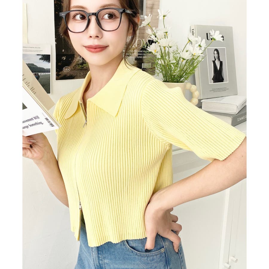 【トレンドのWジップ衿付き半袖カーディガンが登場!】