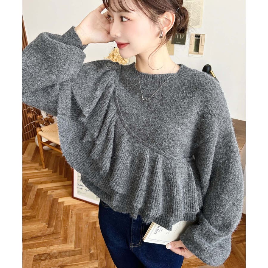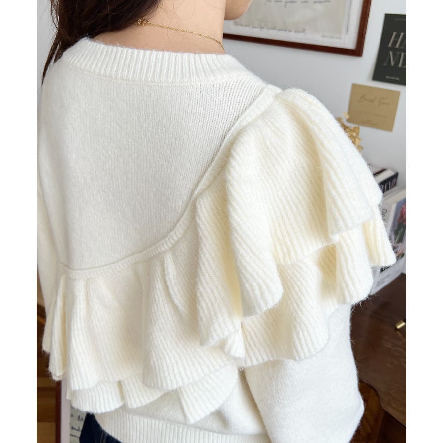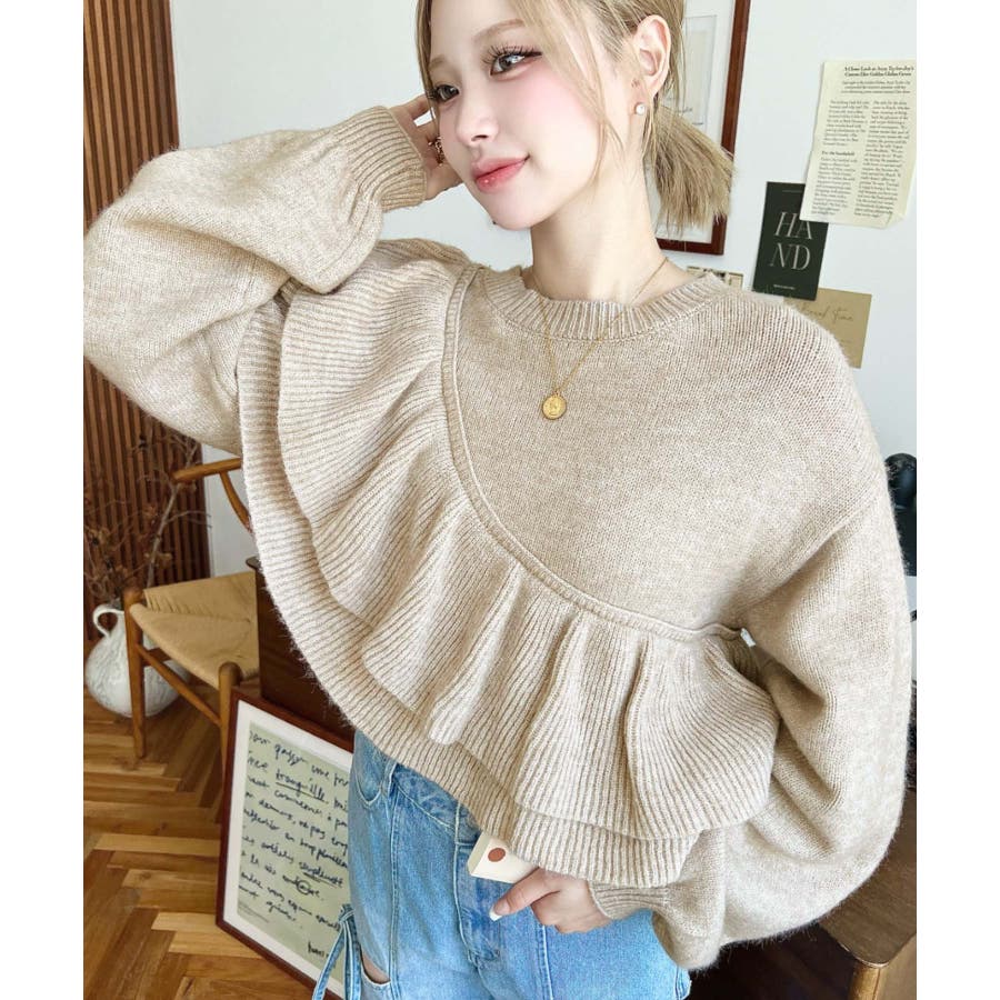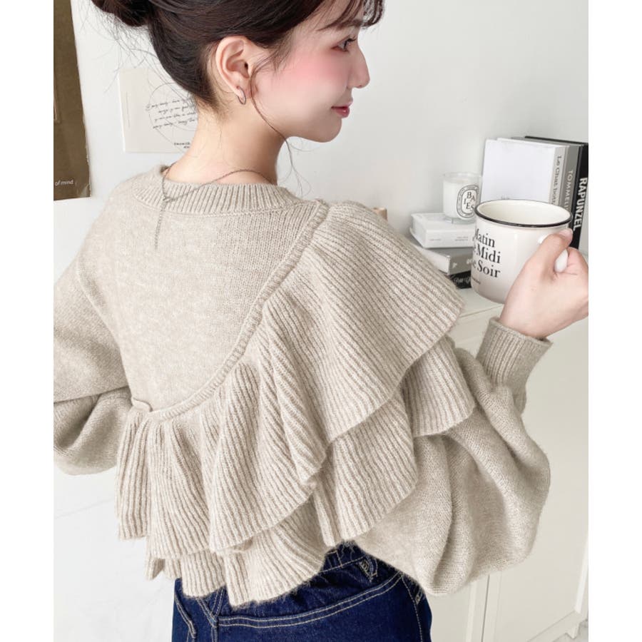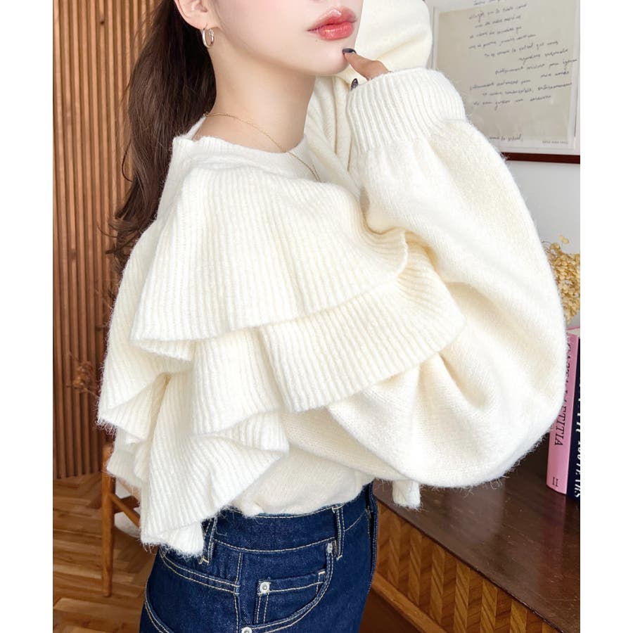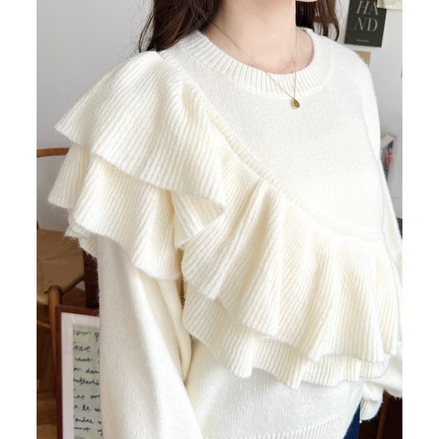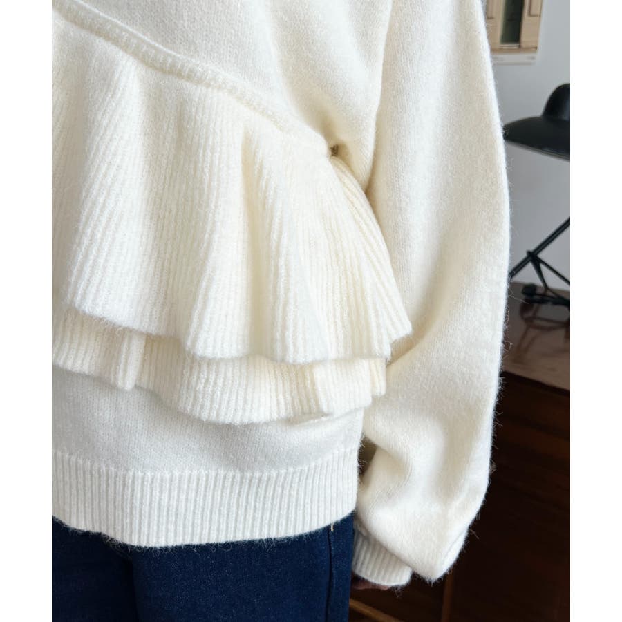 ・大ぶりなフリルを、トレンドライクなシルエットにあしらったシーズンムード高まるゆるニット。