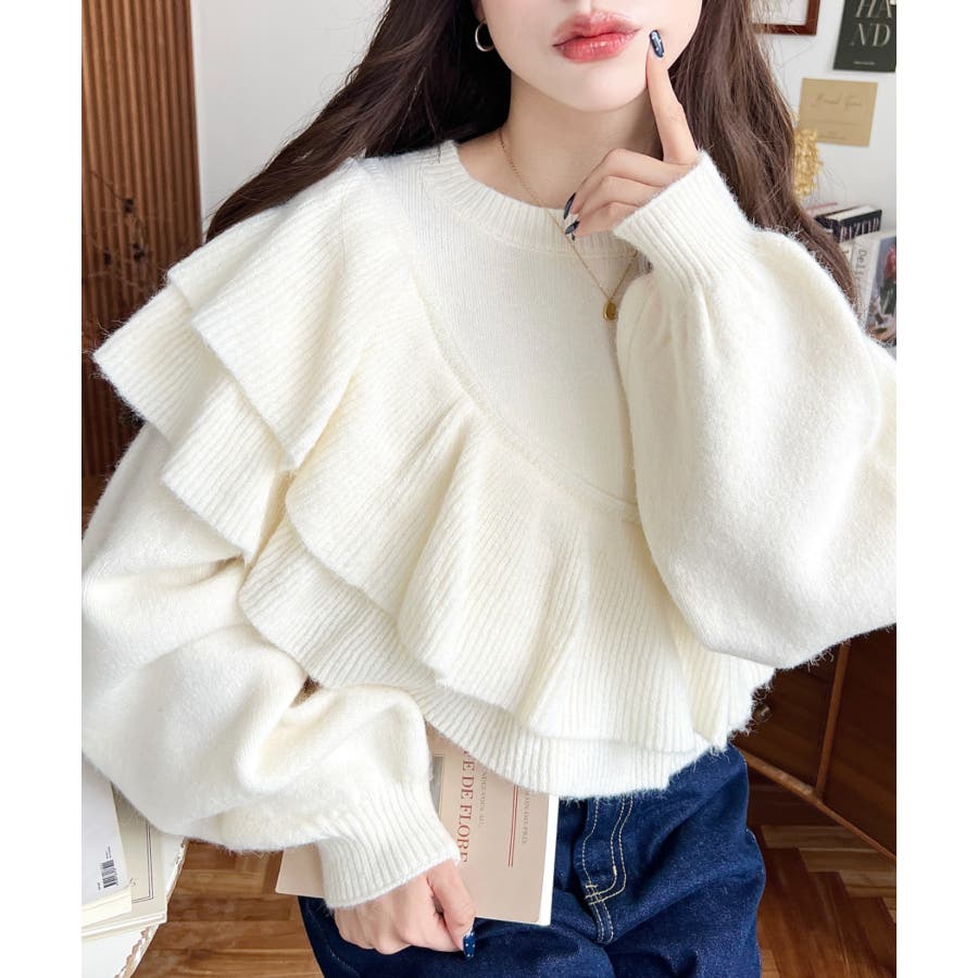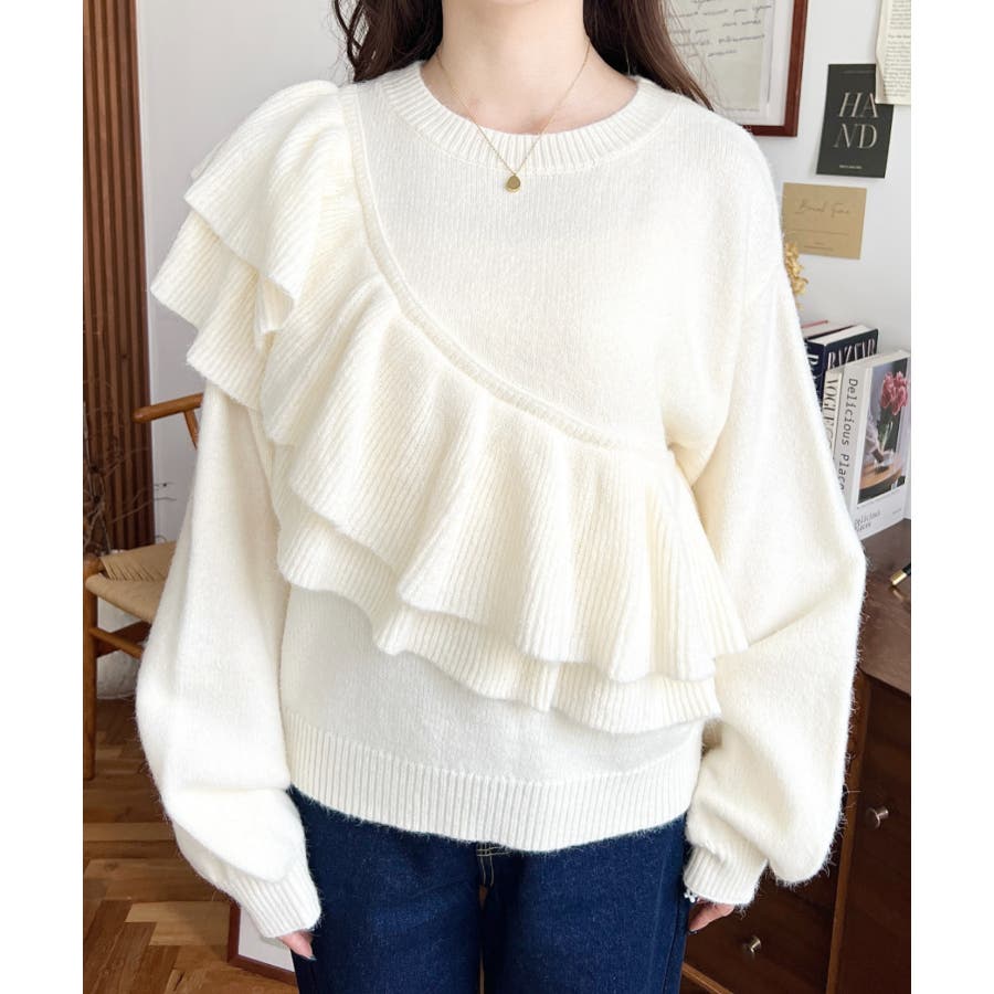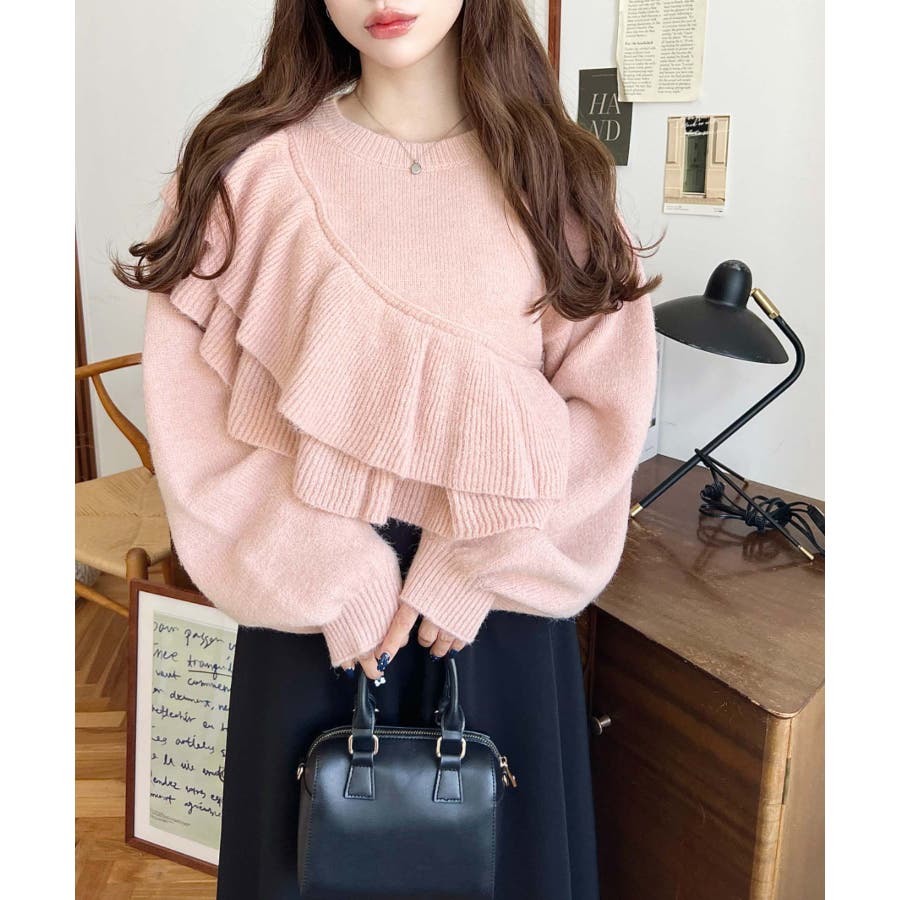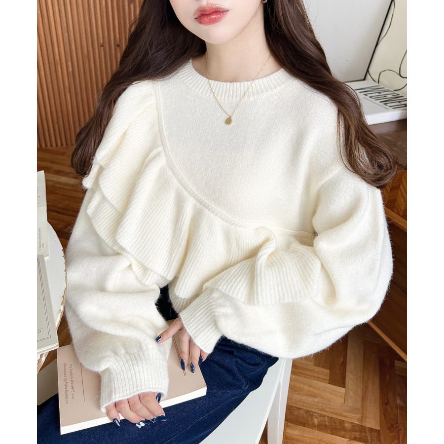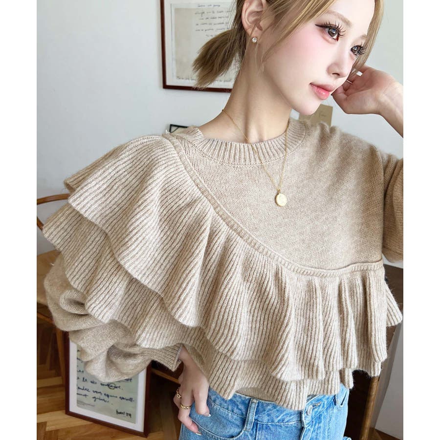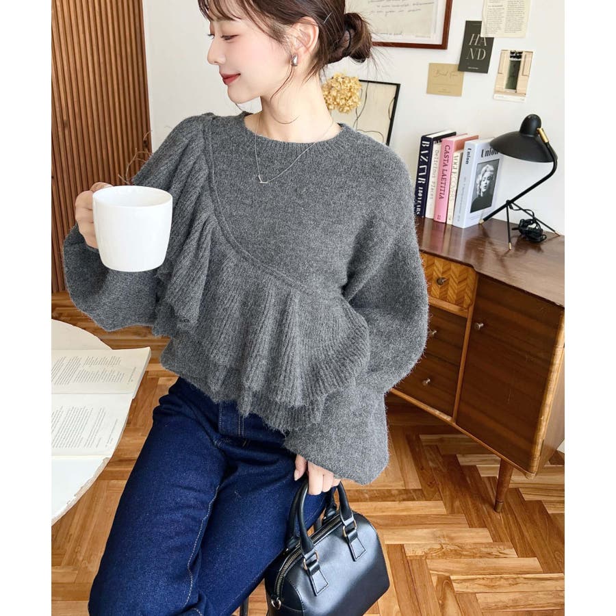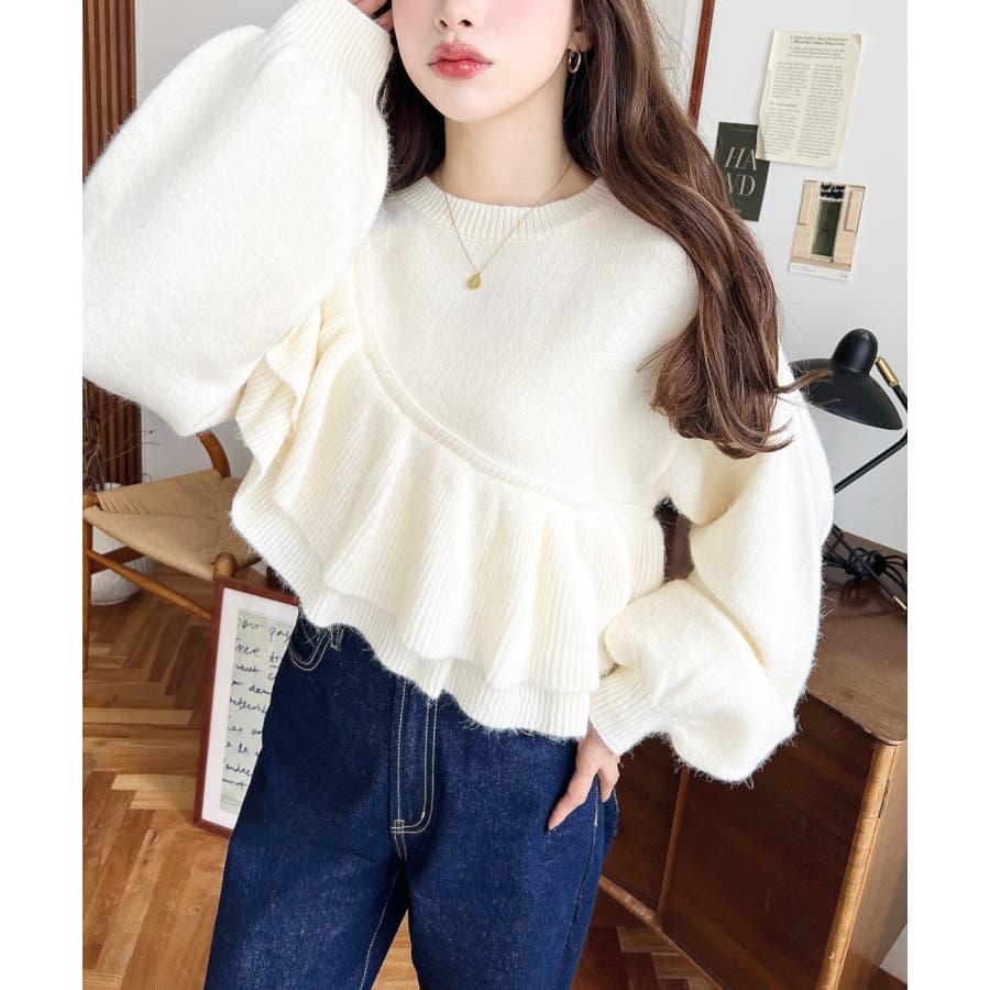 ・大ぶりなフリルを、トレンドライクなシルエットにあしらったシーズンムード高まるゆるニット。