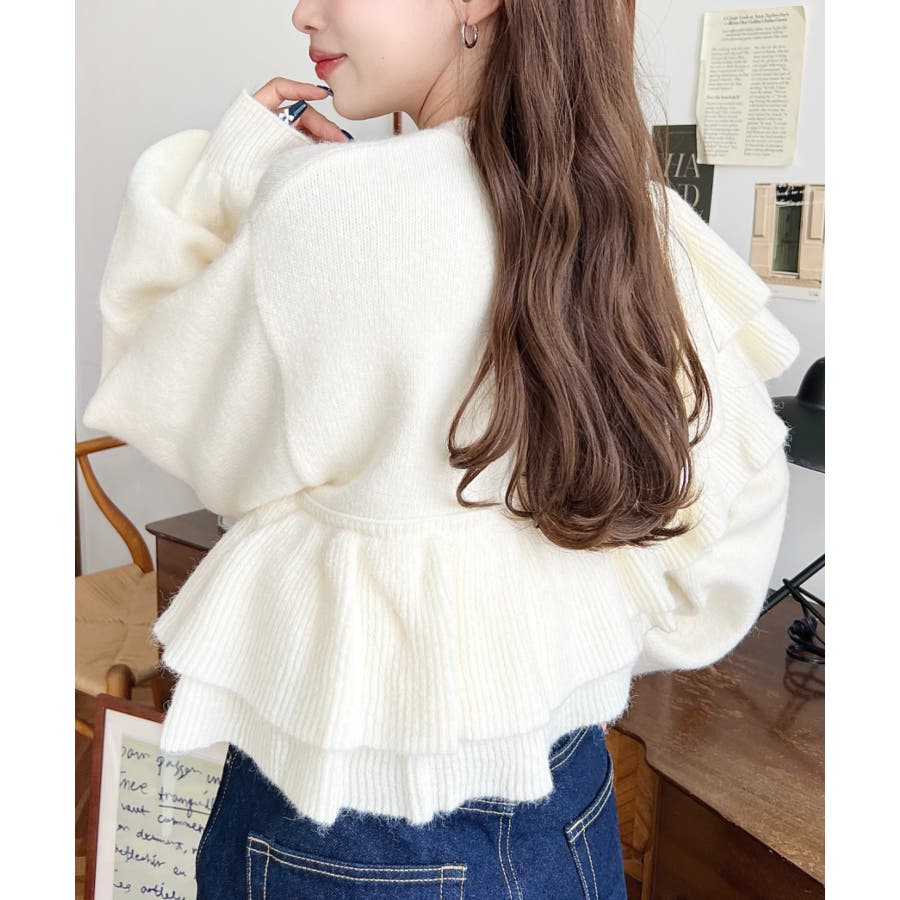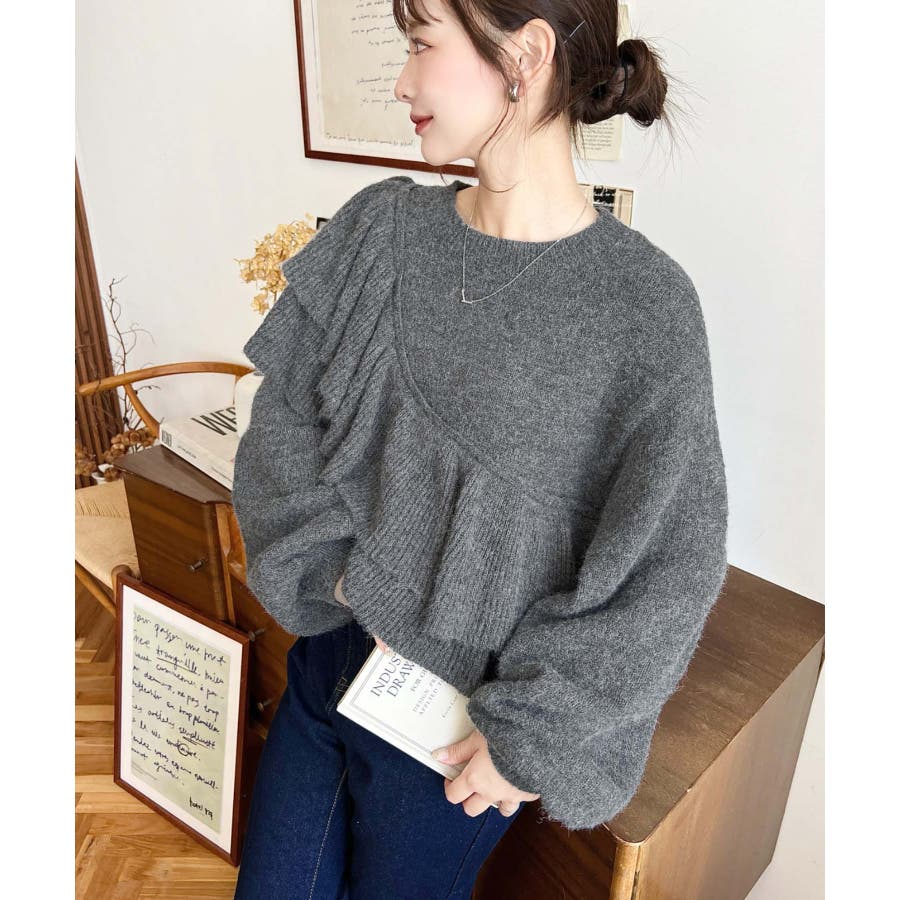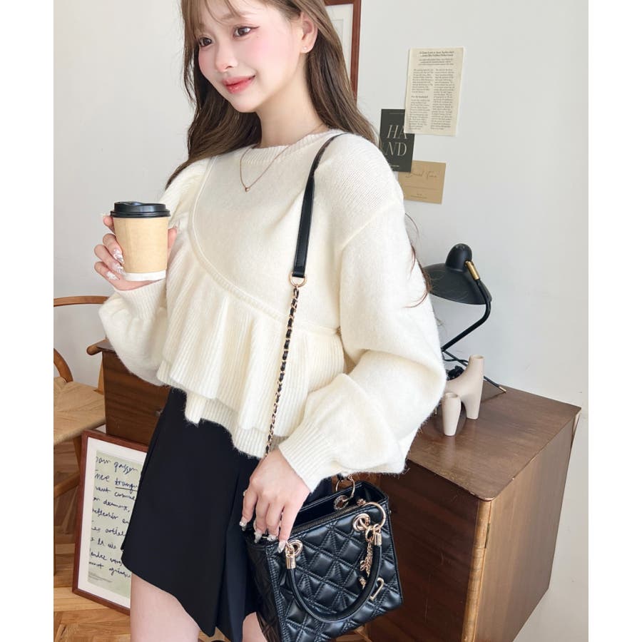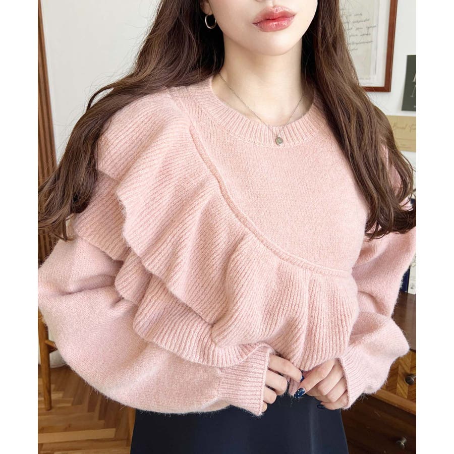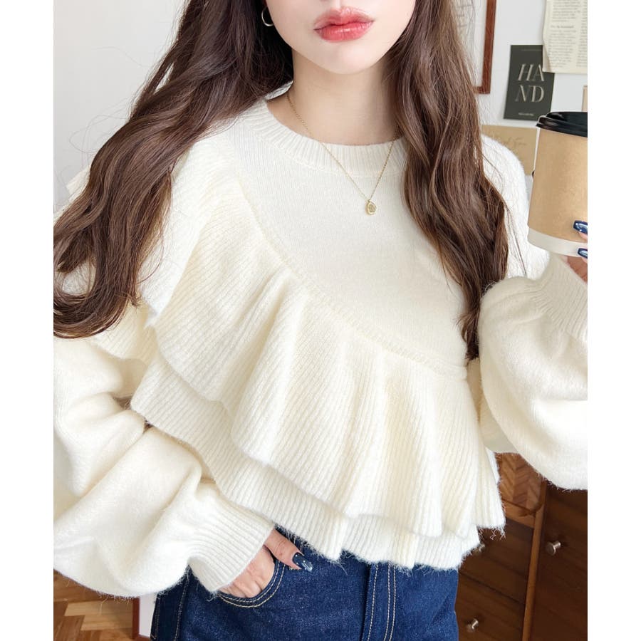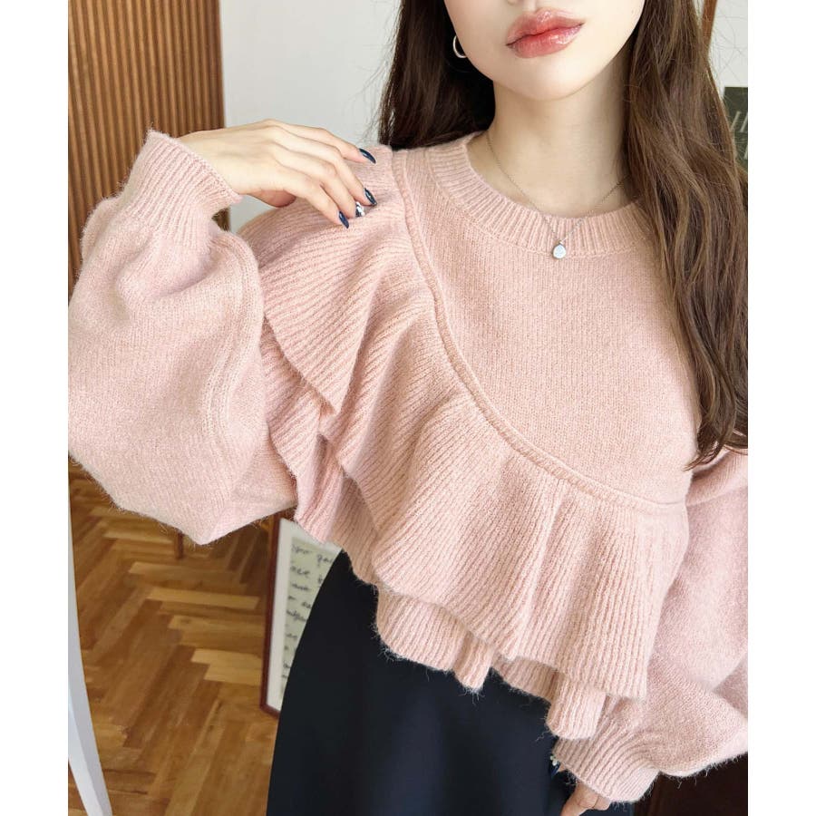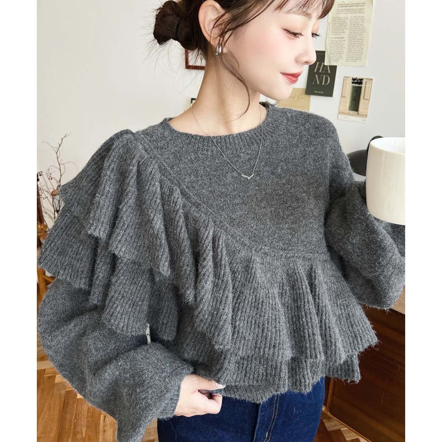 ・大ぶりなフリルを、トレンドライクなシルエットにあしらったシーズンムード高まるゆるニット。