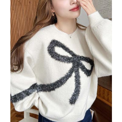・ビッグリボンが存在感たっぷりの目を惹くゆるふわニット!