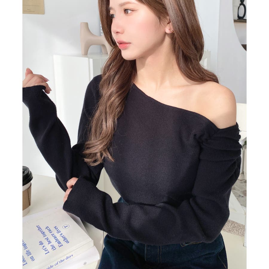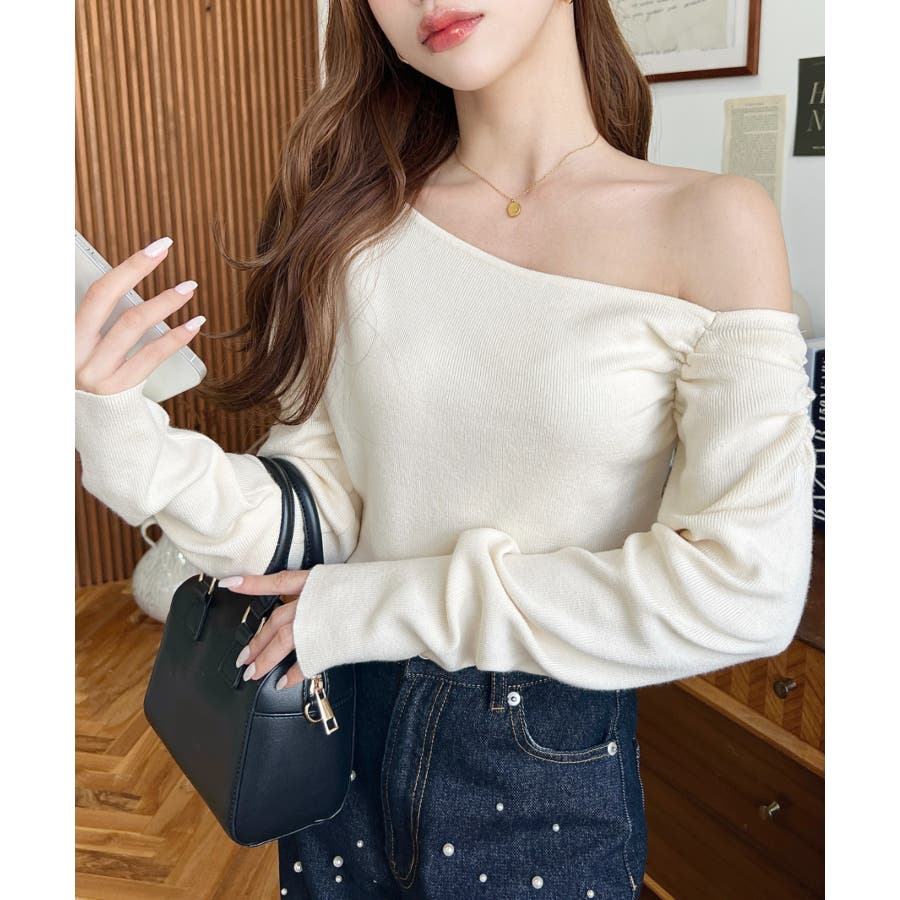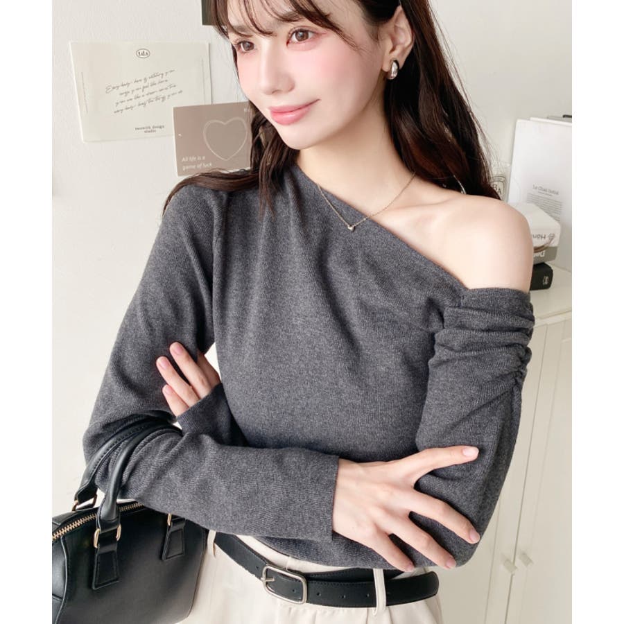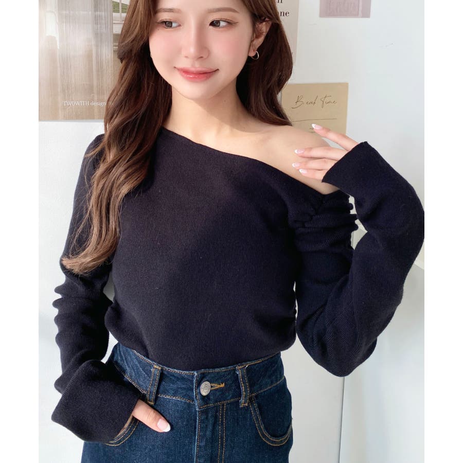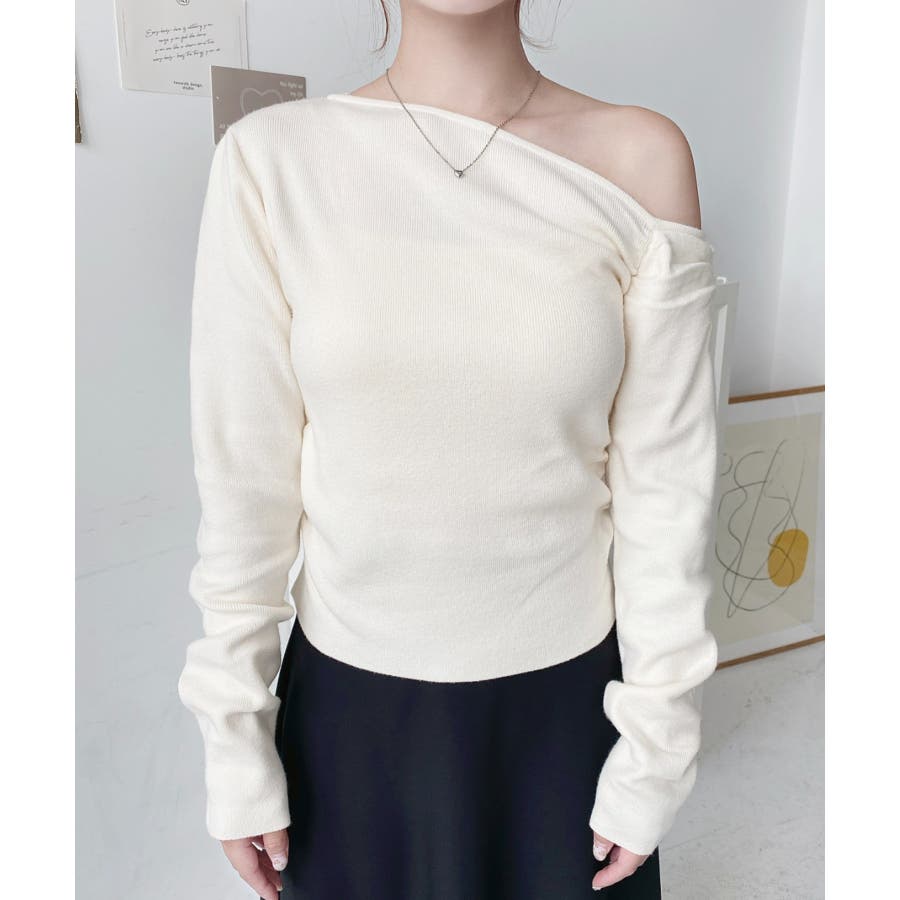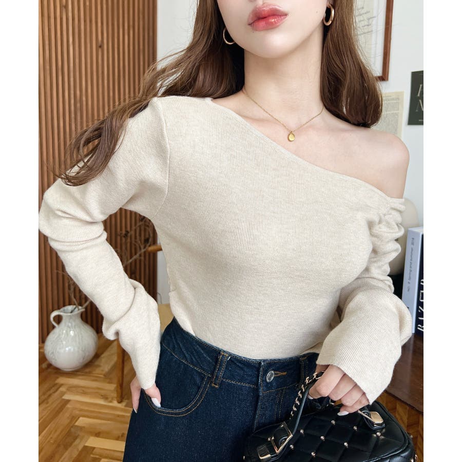 ・アシメワンショルダーが魅力的でちょっと甘めなニットプルオーバー!