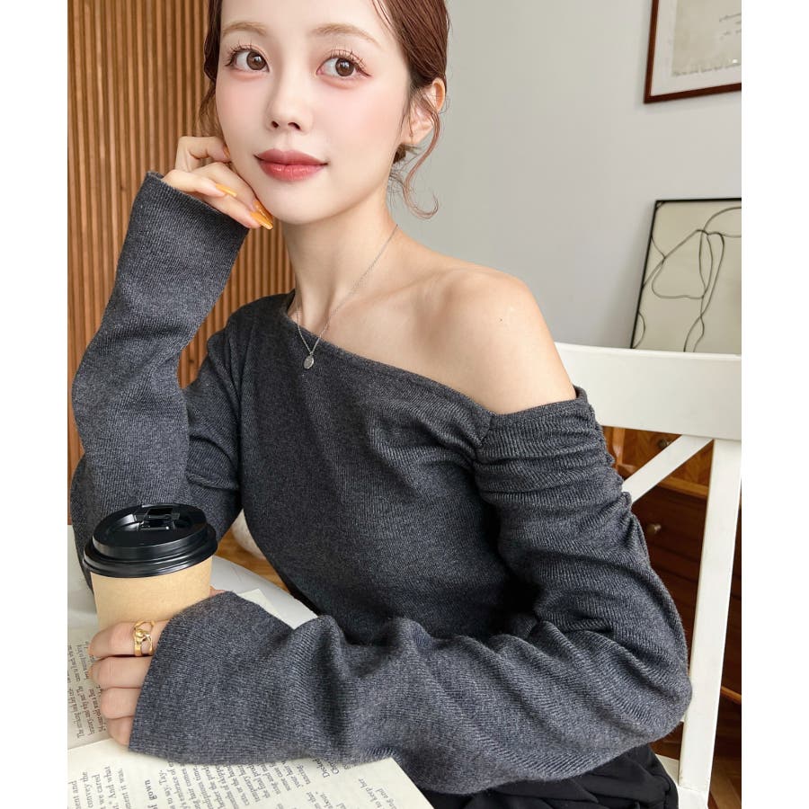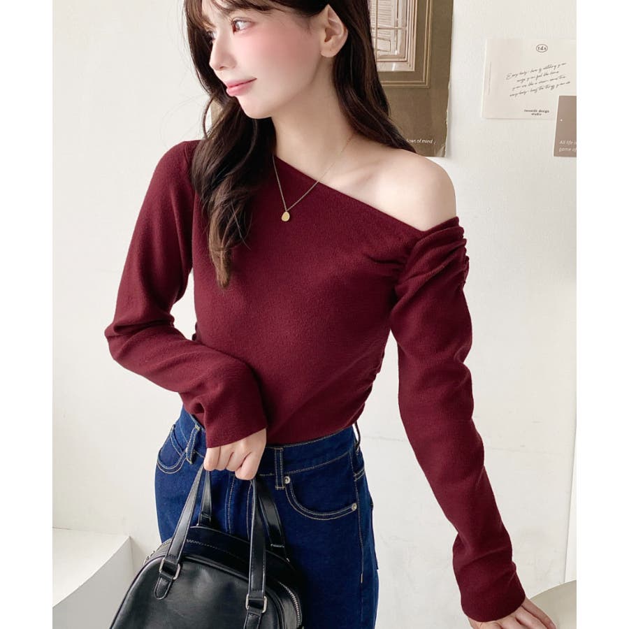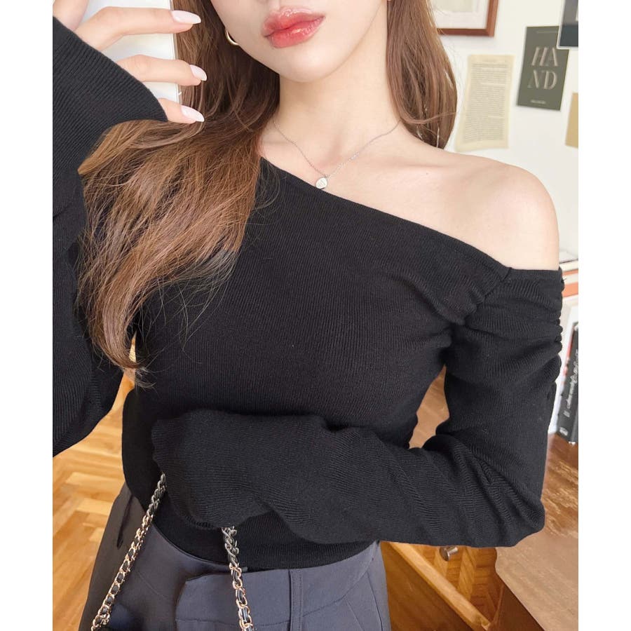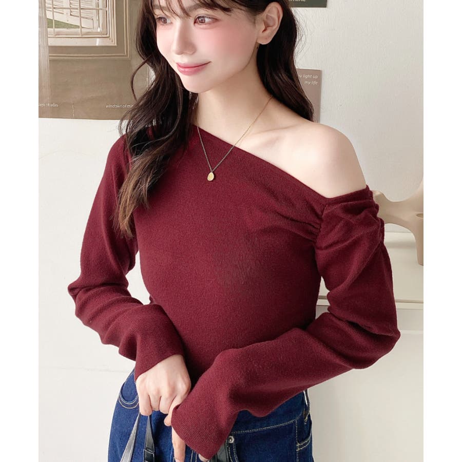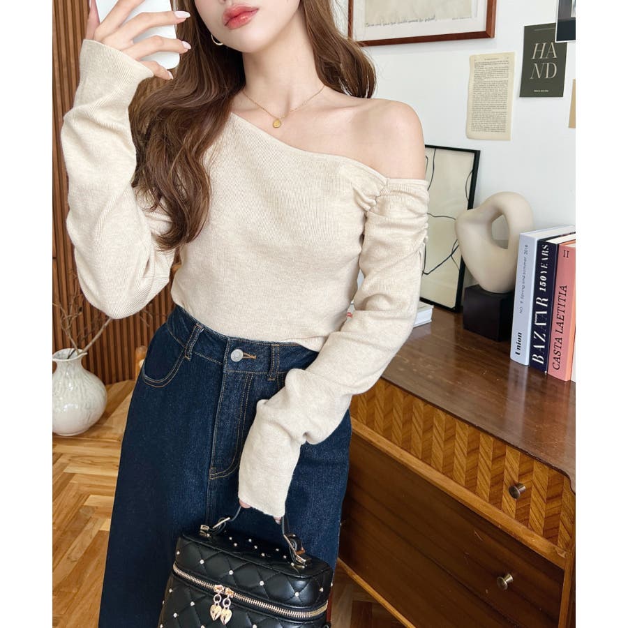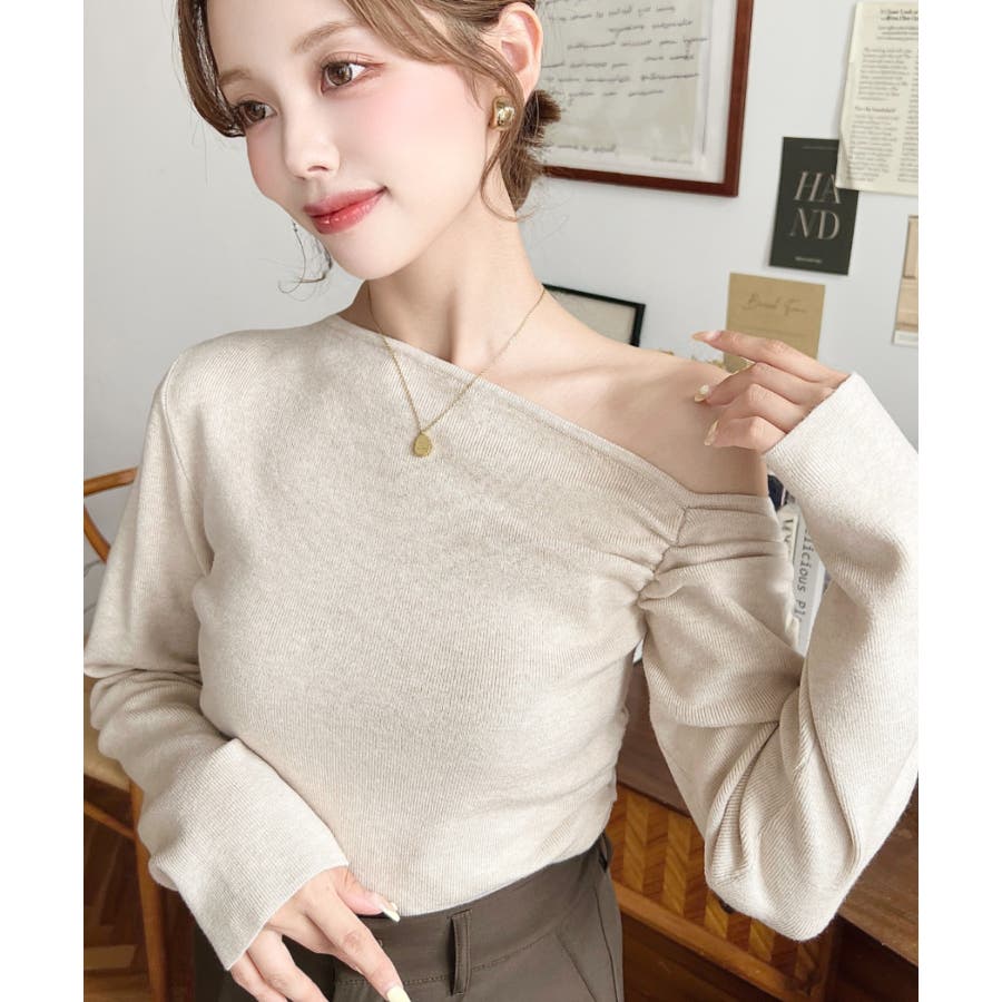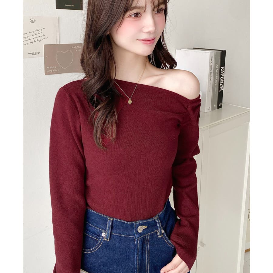 ・アシメワンショルダーが魅力的でちょっと甘めなニットプルオーバー!