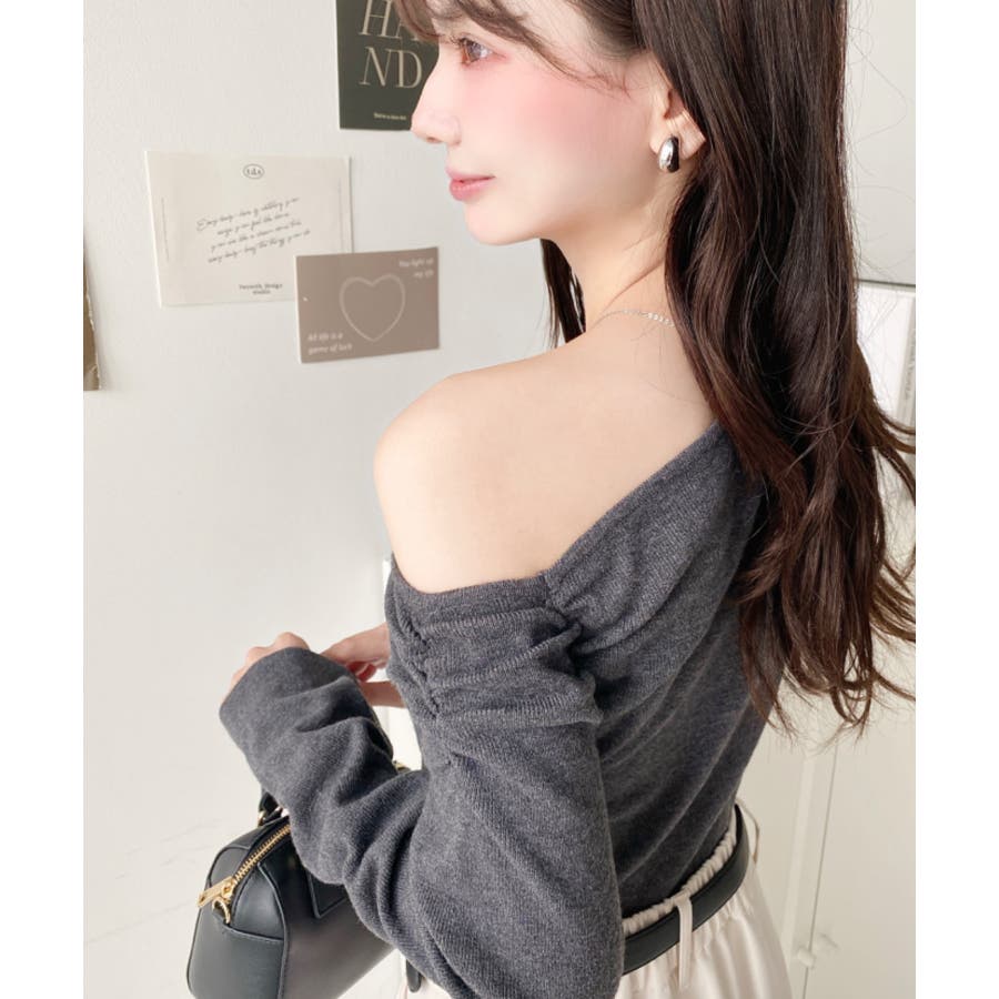 ・トレンドレスなワンショルスタイルが顔周りとデコルテラインをすっきり綺麗に魅せてくれるのもポイントです◎