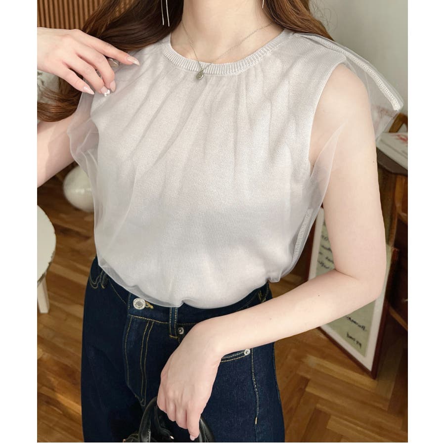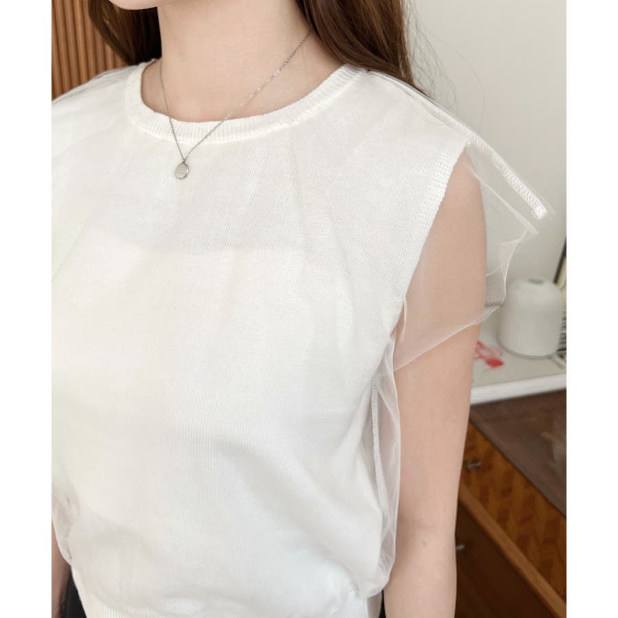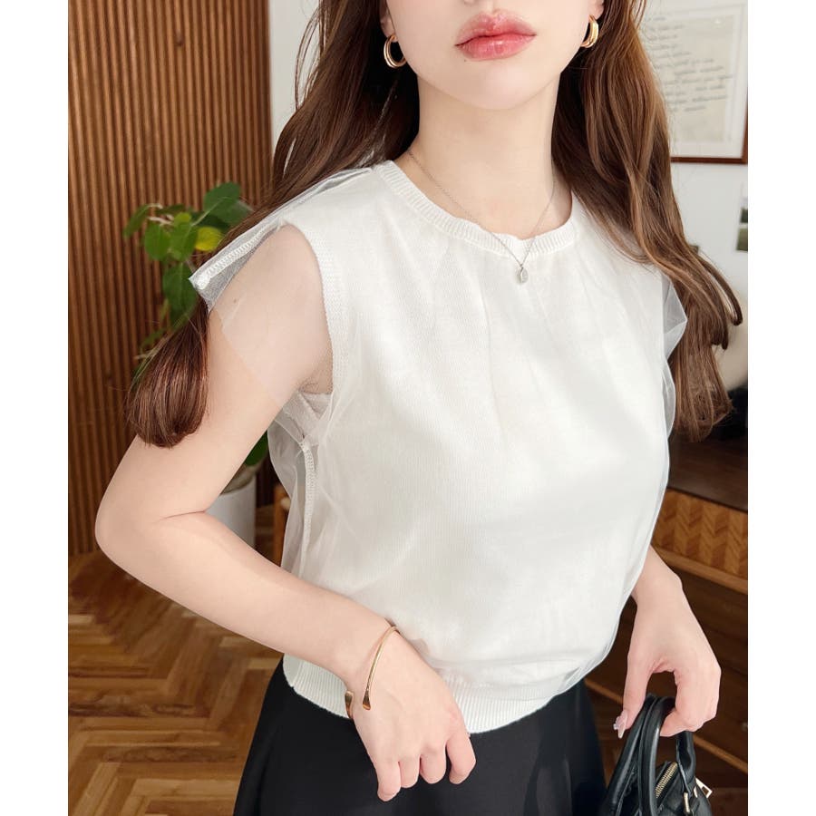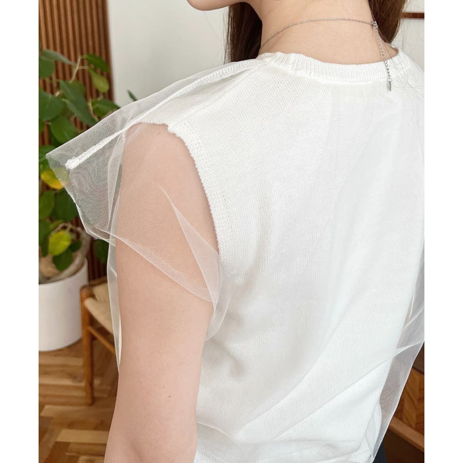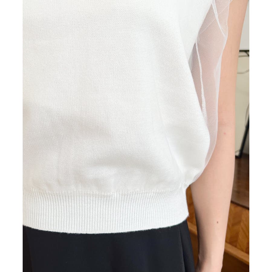 チュールレイヤードフレンチスリーブニットプルオーバー