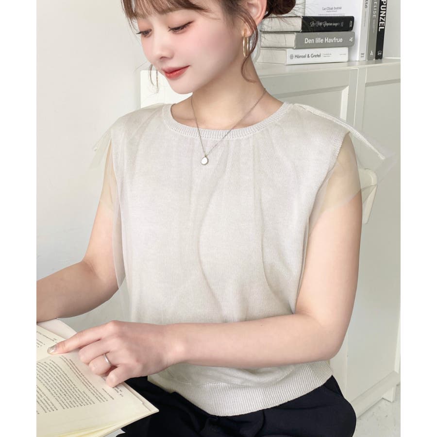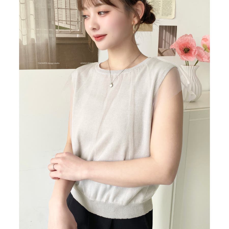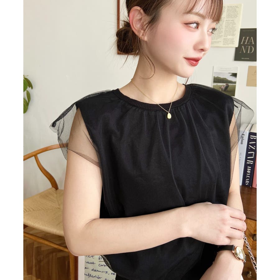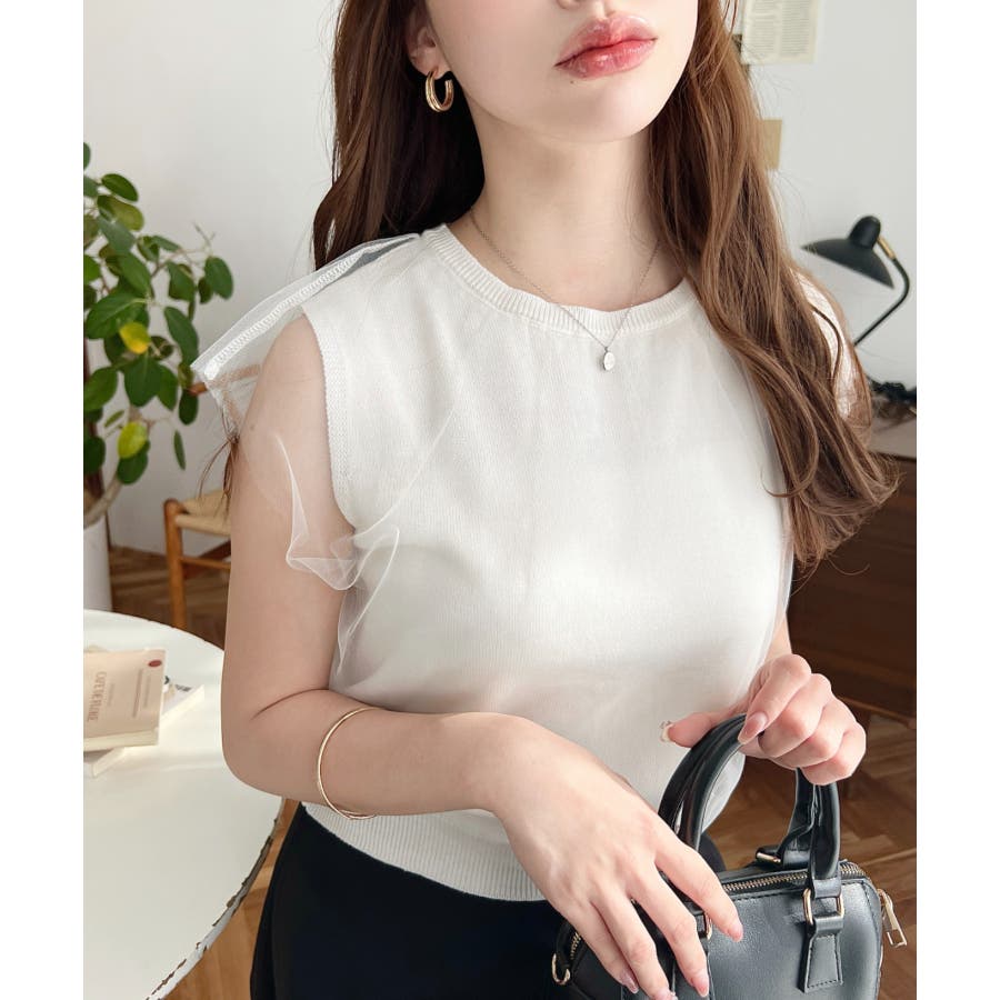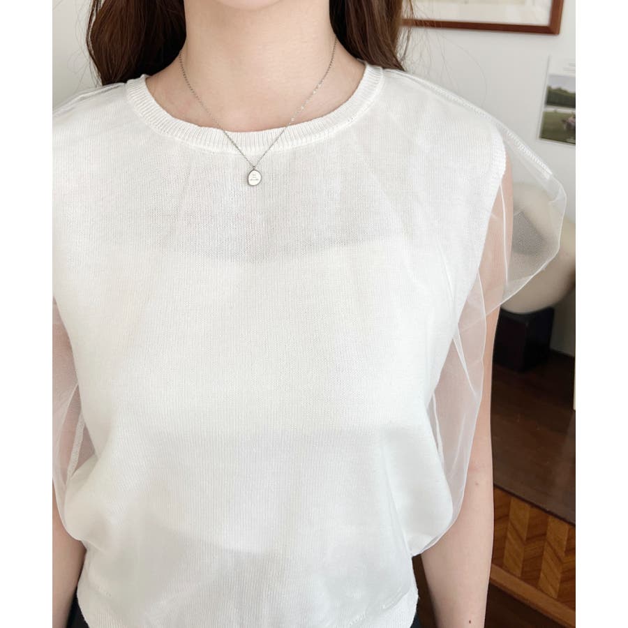 チュールレイヤードフレンチスリーブニットプルオーバー