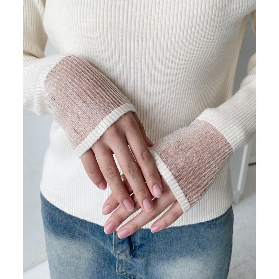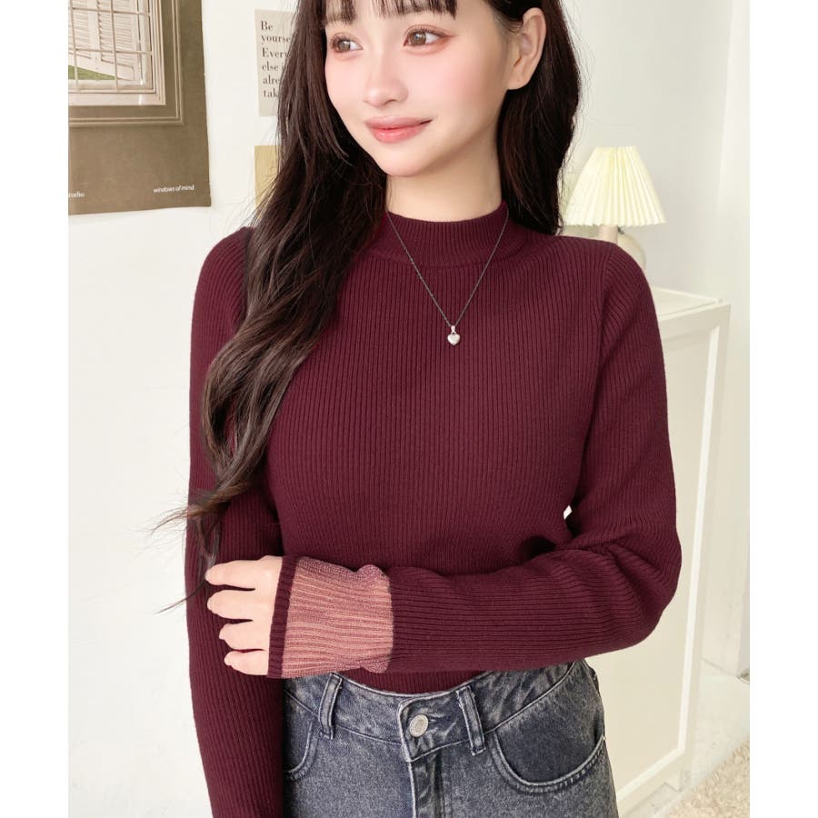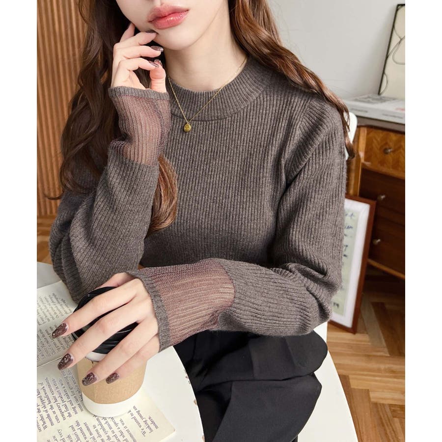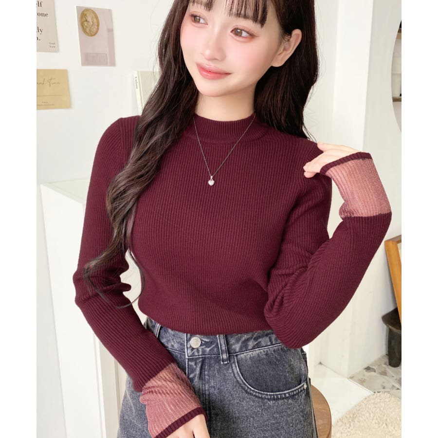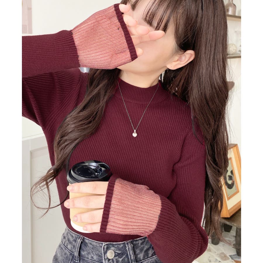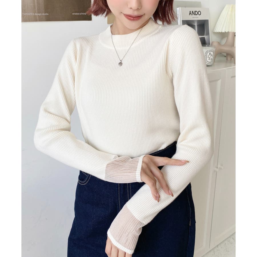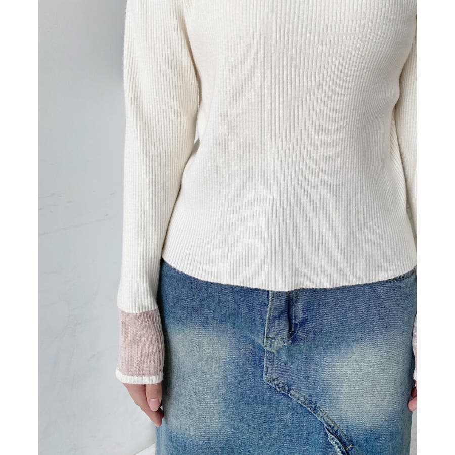 ・シンプルリブニットで袖だけシアーになったお洒落ニットが仲間入り!異素材ミックスがさりげなくて◎