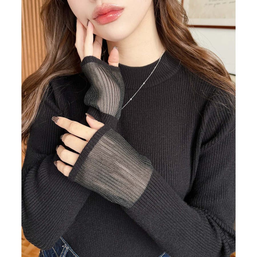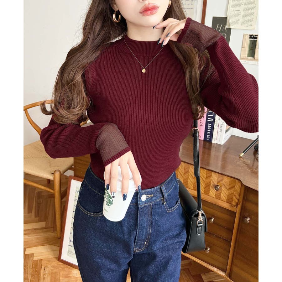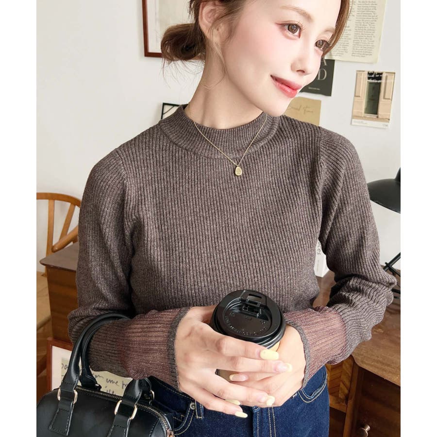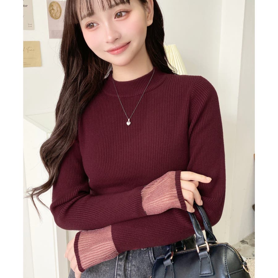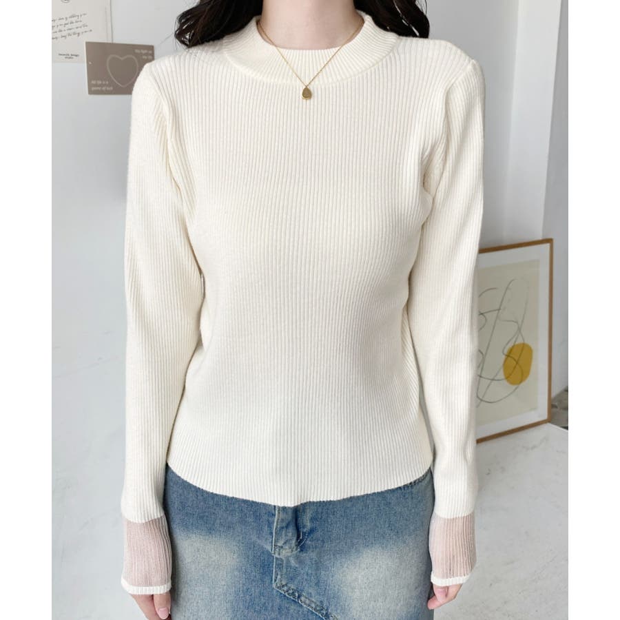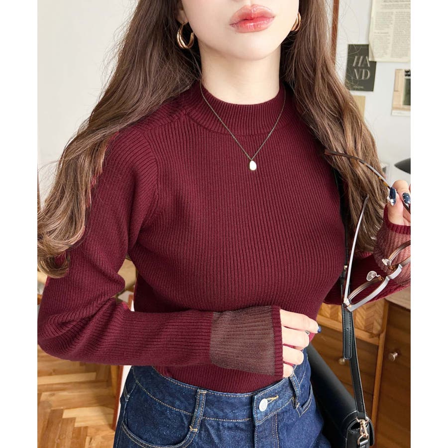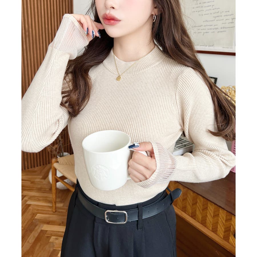 ・シンプルリブニットで袖だけシアーになったお洒落ニットが仲間入り!異素材ミックスがさりげなくて◎