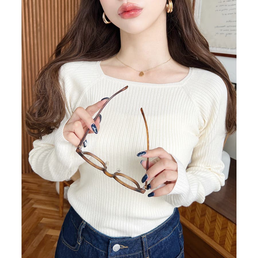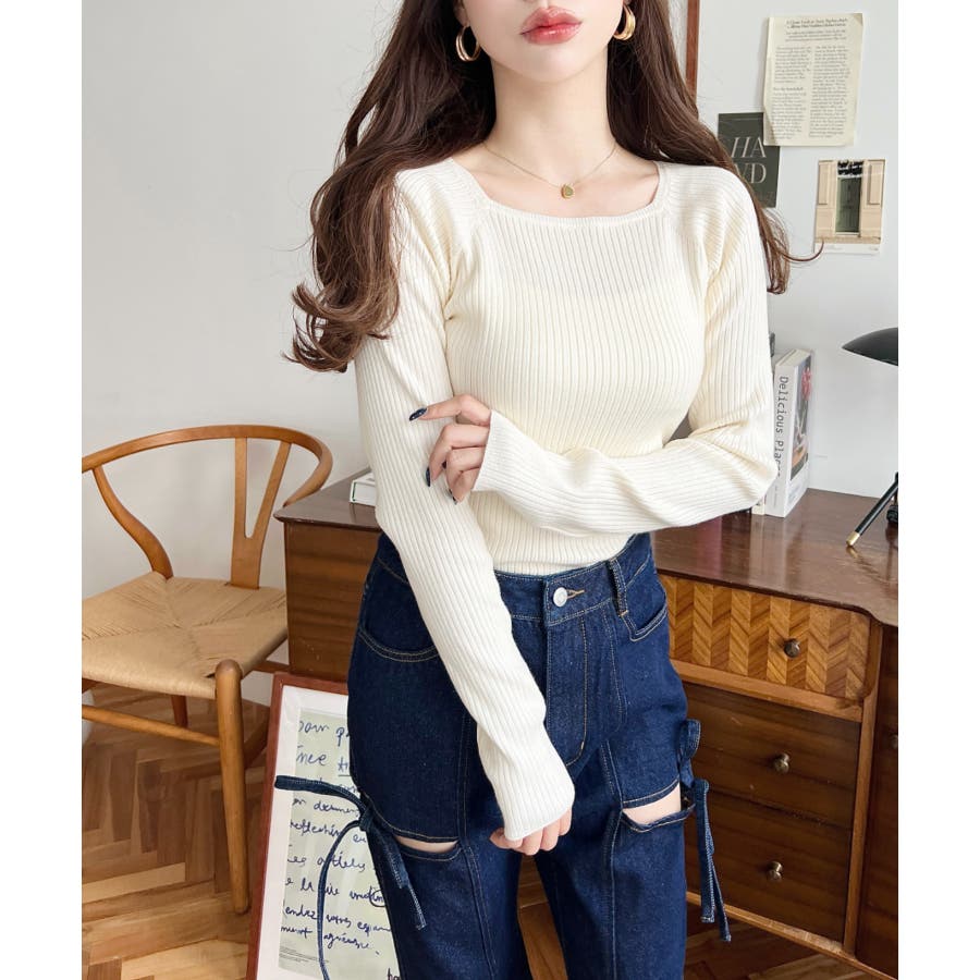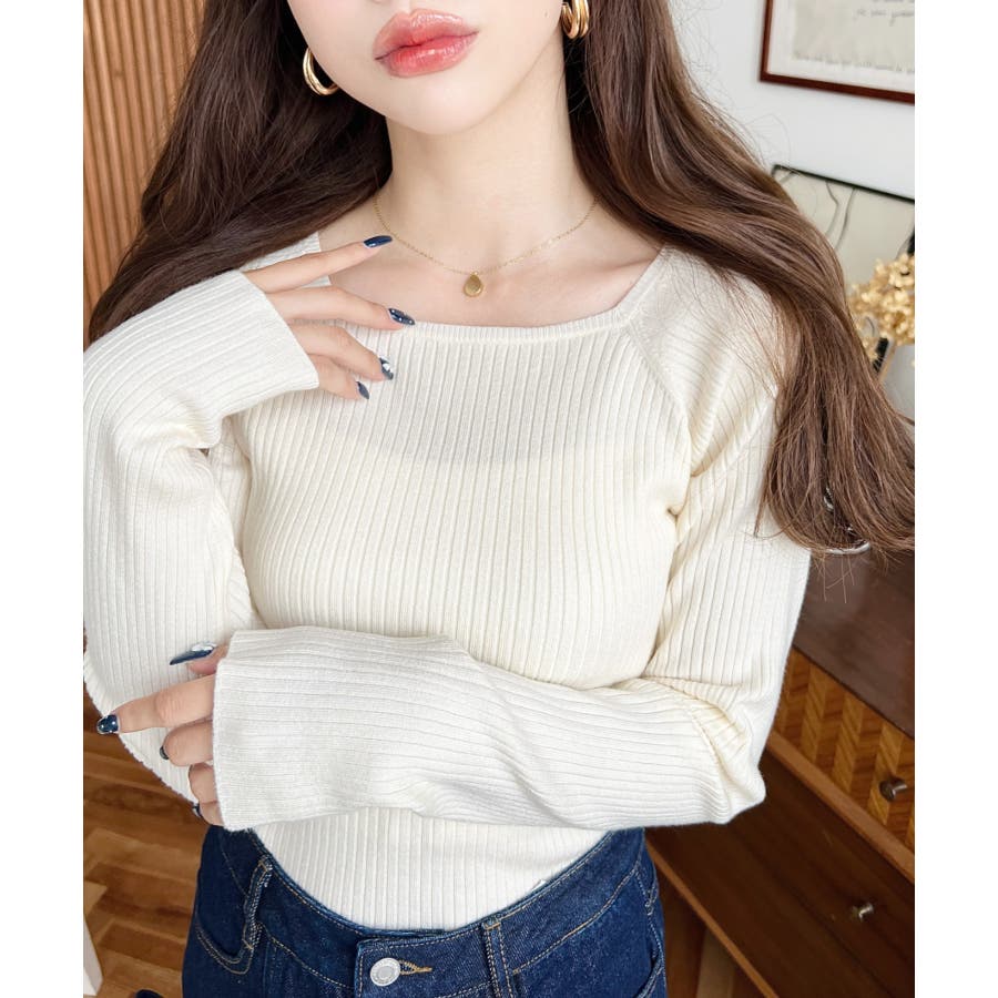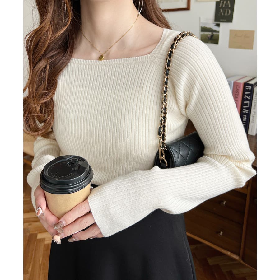 ・デコルテラインが綺麗に見えるシンプルリブニットが仲間入り!スクエアラインが大胆過ぎず挑戦しやすいのも嬉しい!