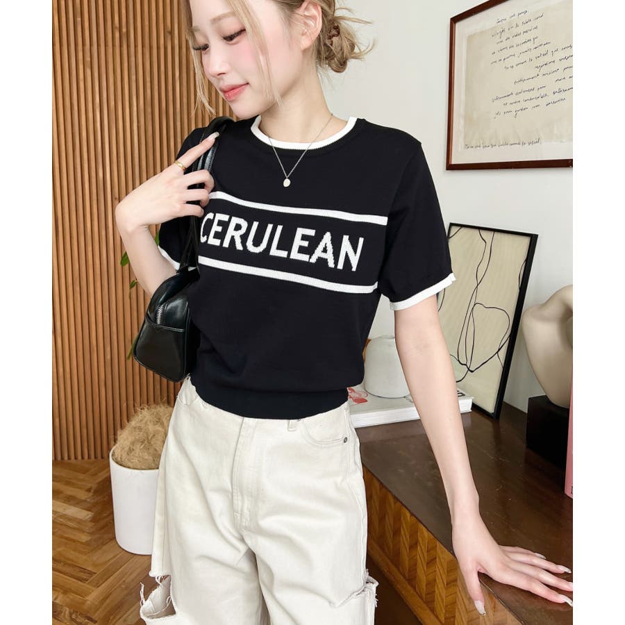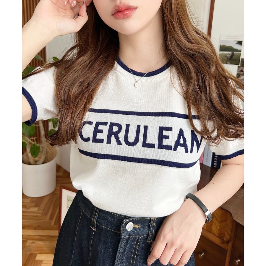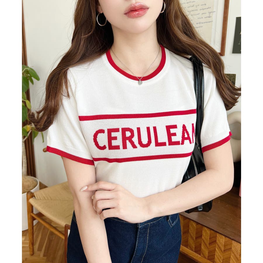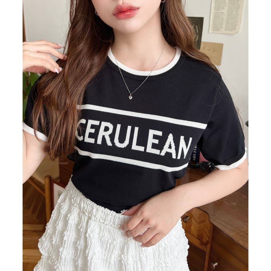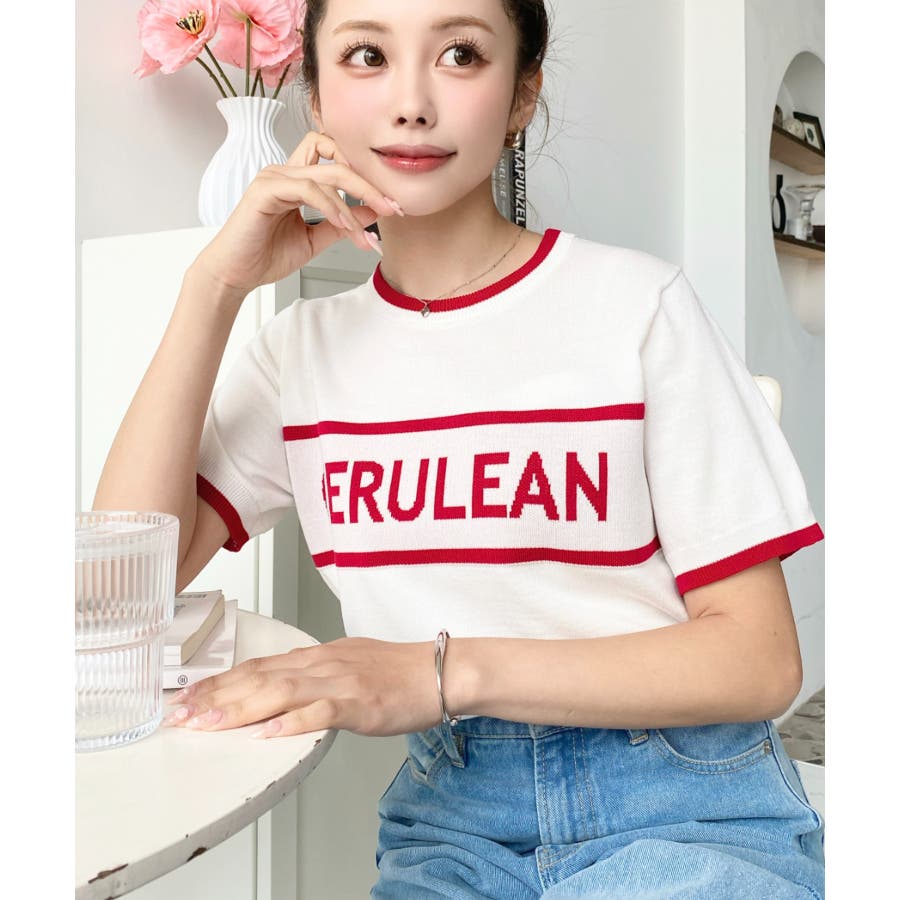 ロゴライン半袖ニットプルオーバー