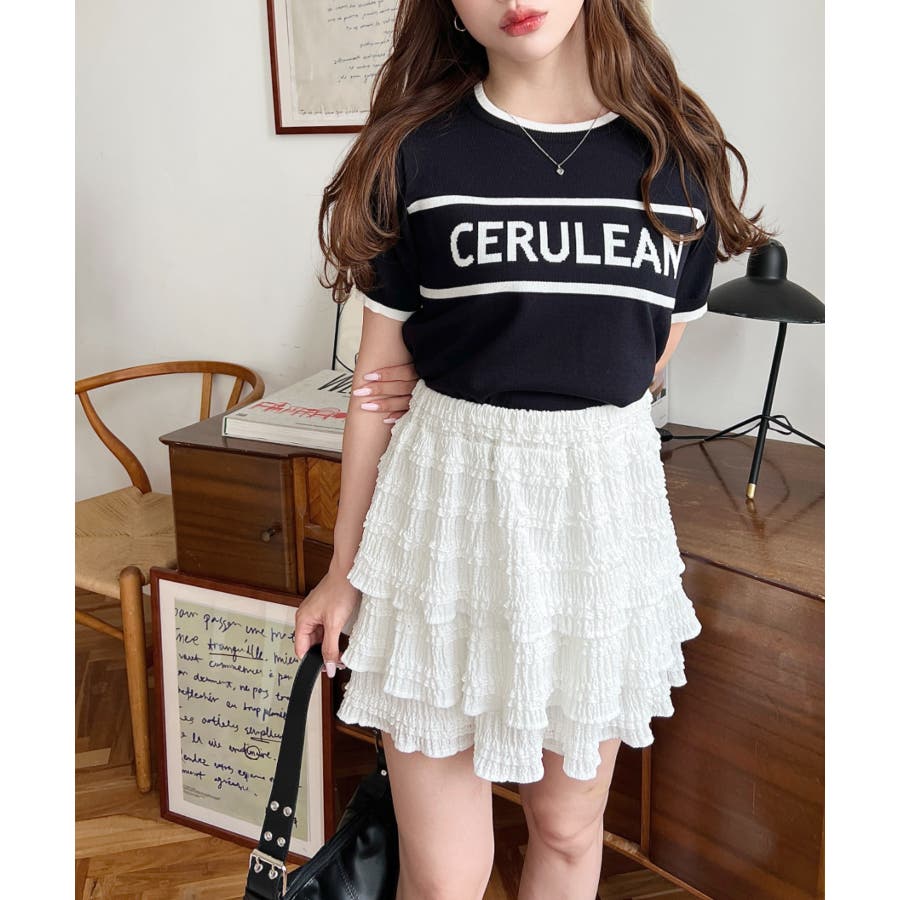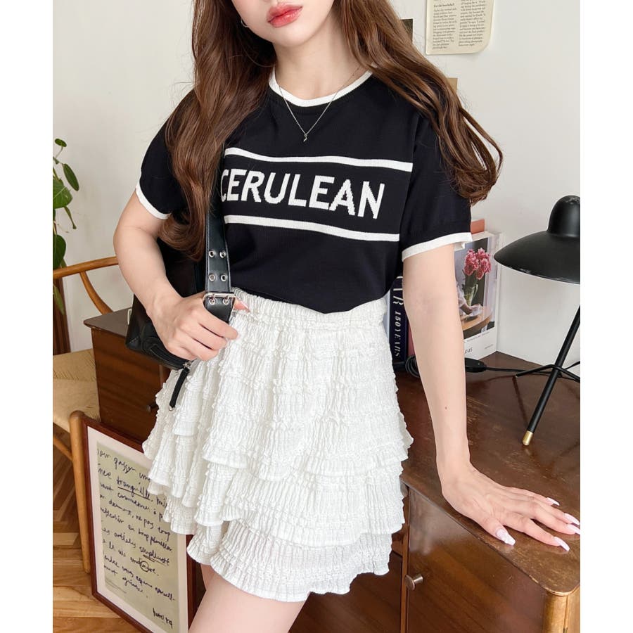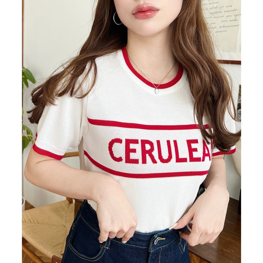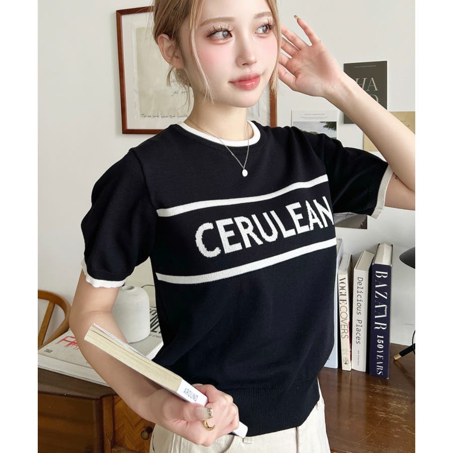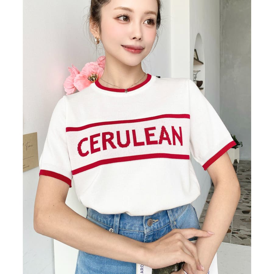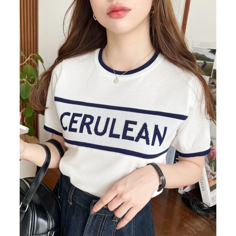 ロゴライン半袖ニットプルオーバー