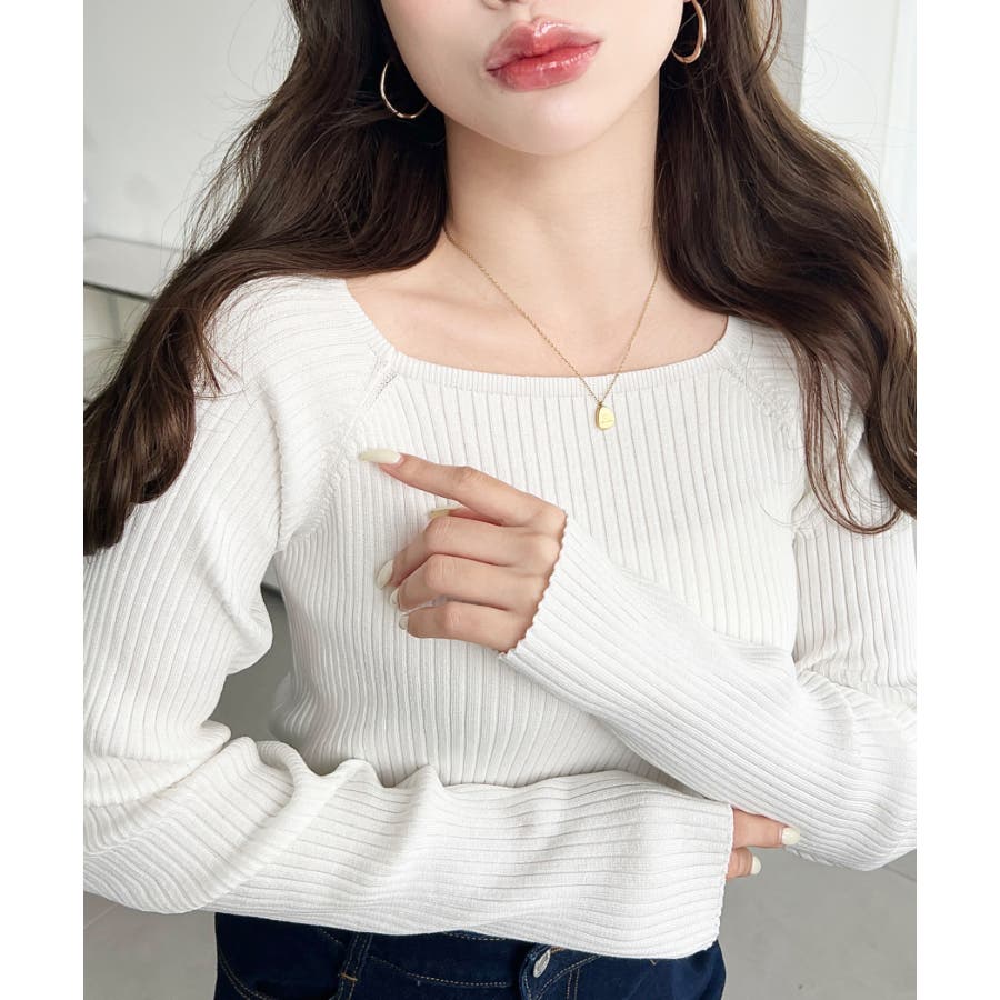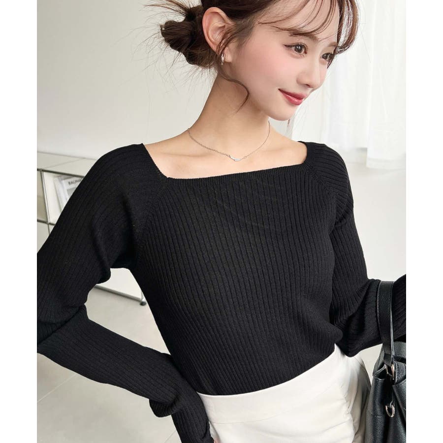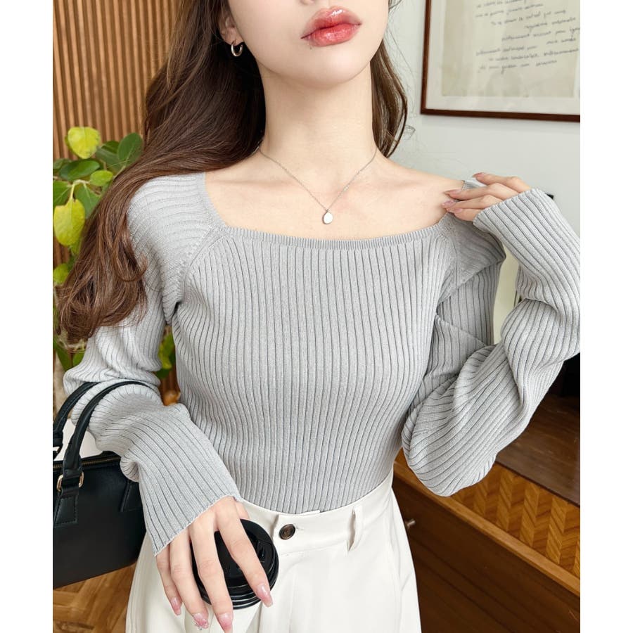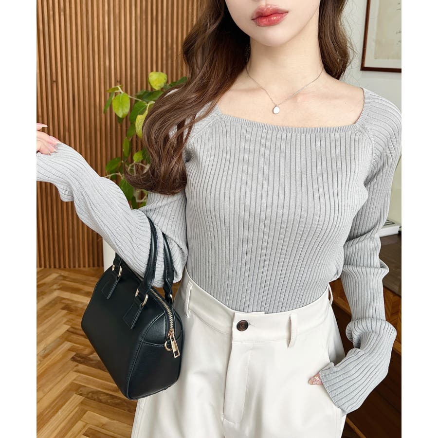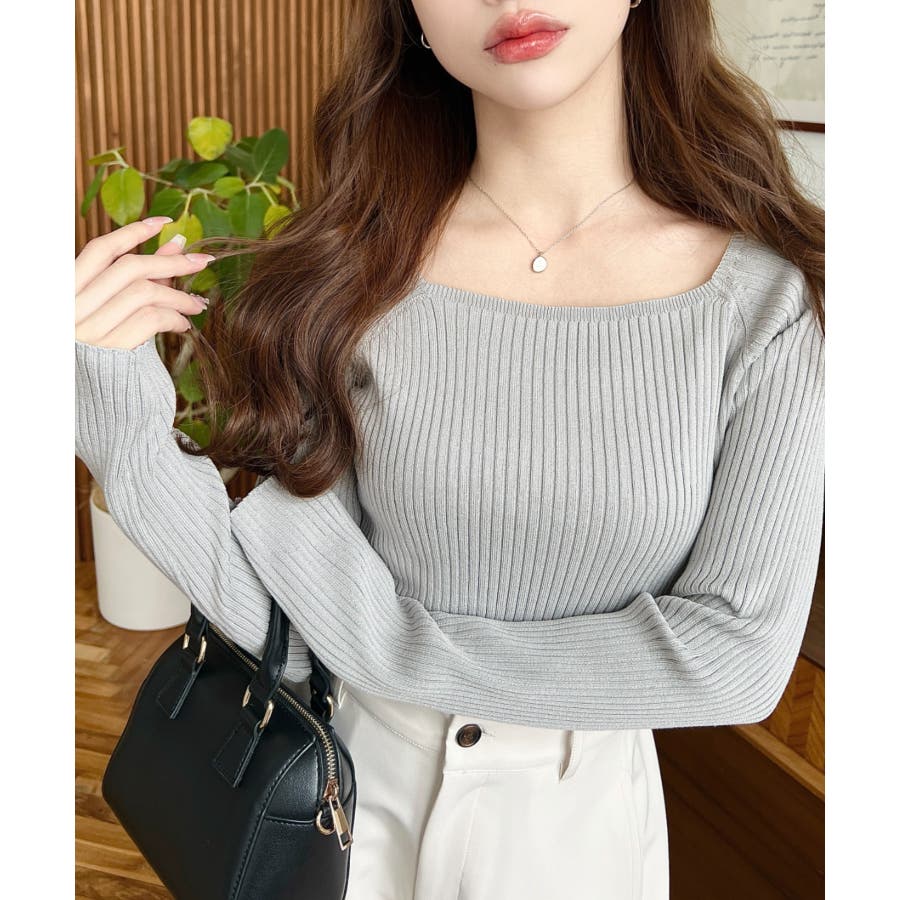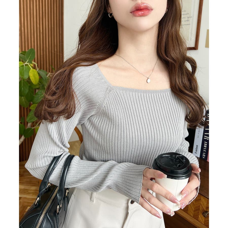 首元が開きすぎないスクエアネックなので上品な印象があり、リブニットのほどよいフィット感で体のラインをすっきり見せてくれるのがお気に入りポイントです◎