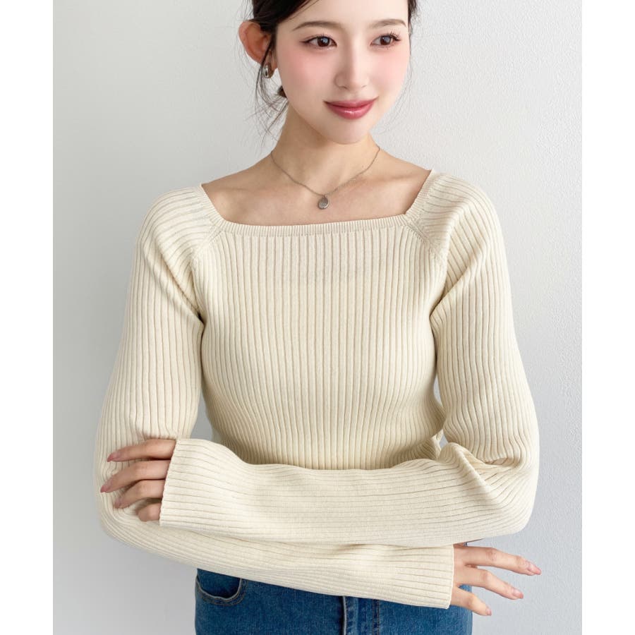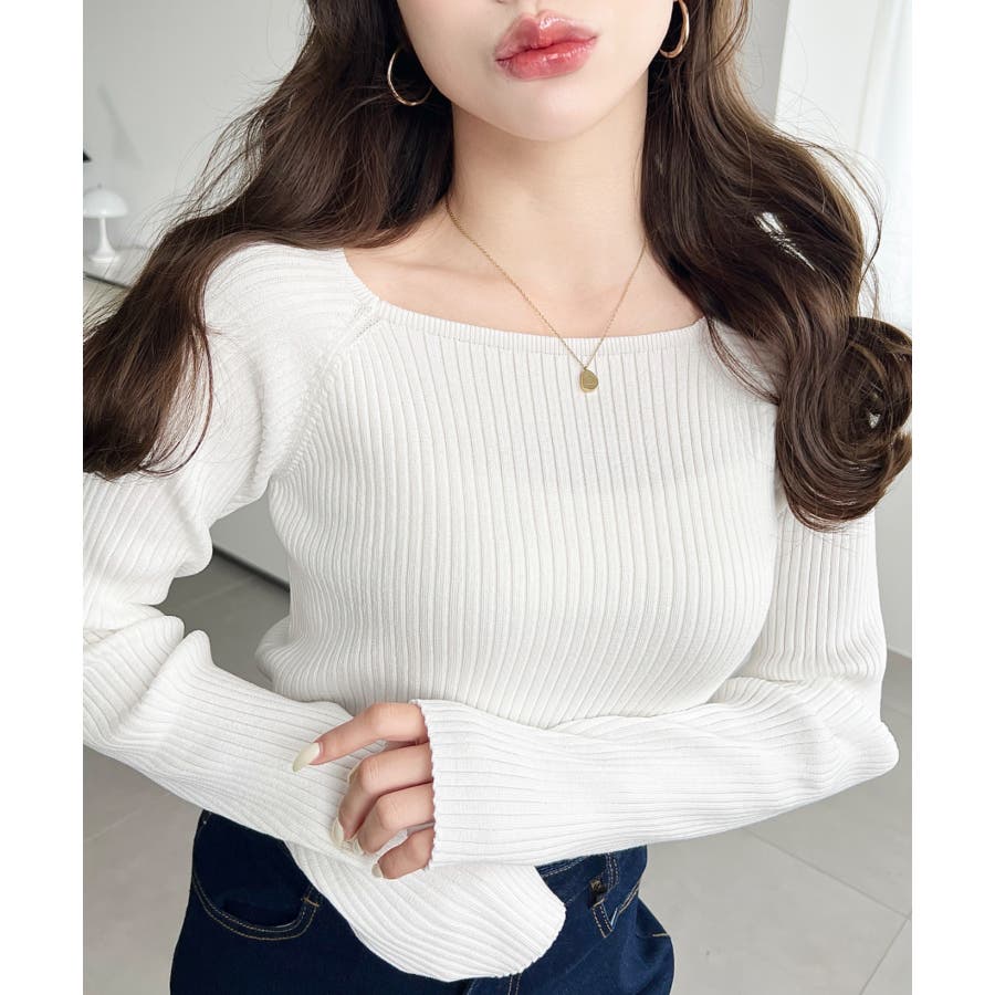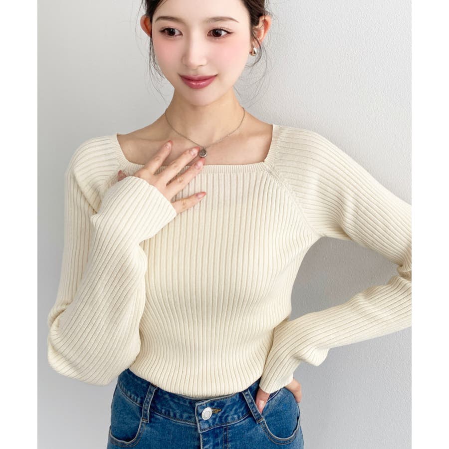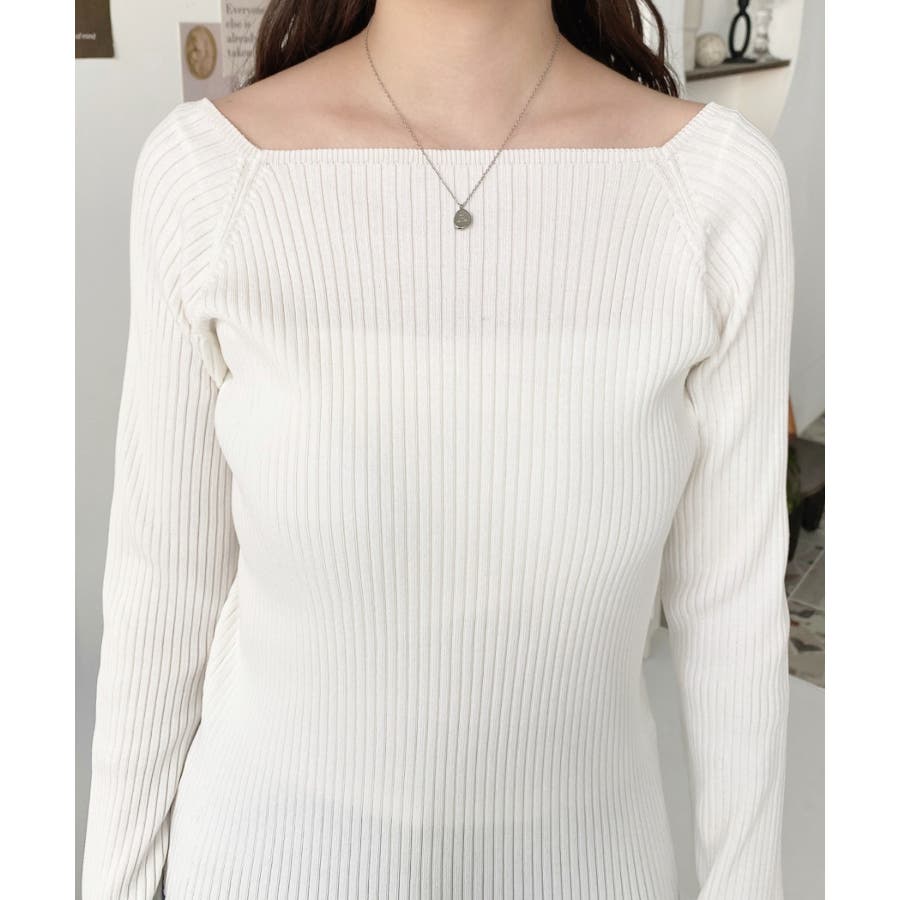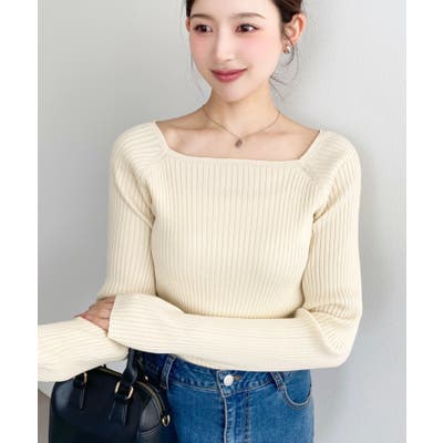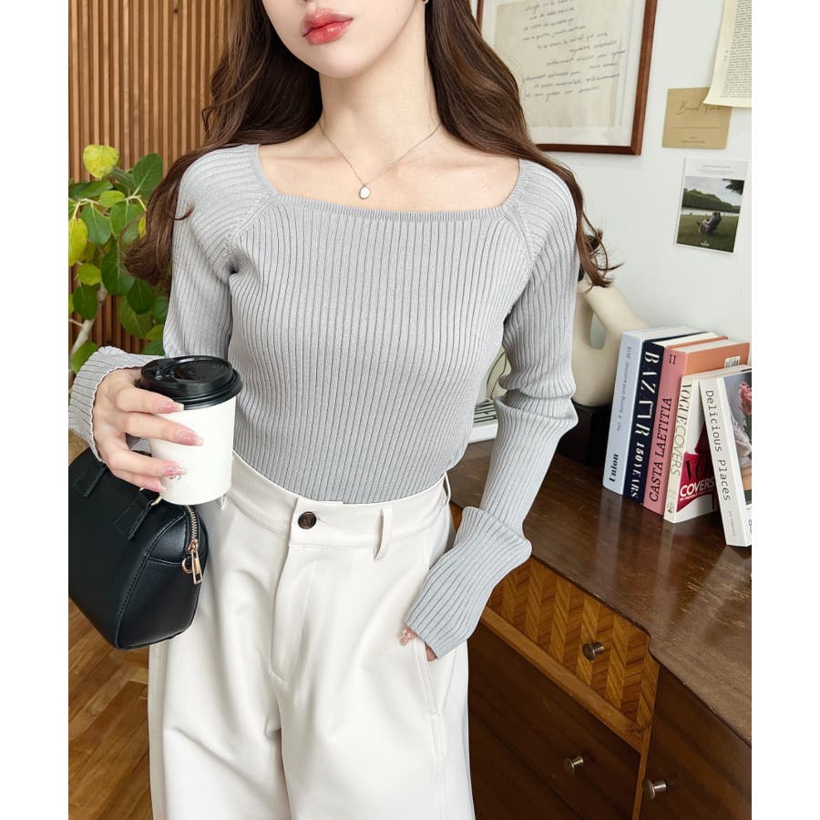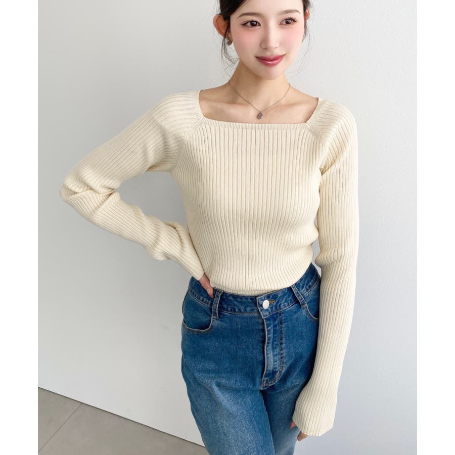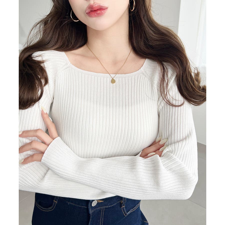 首元が開きすぎないスクエアネックなので上品な印象があり、リブニットのほどよいフィット感で体のラインをすっきり見せてくれるのがお気に入りポイントです◎
