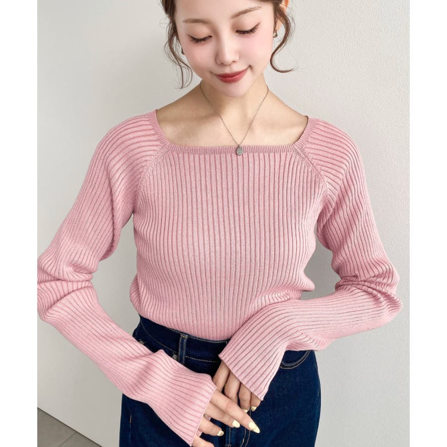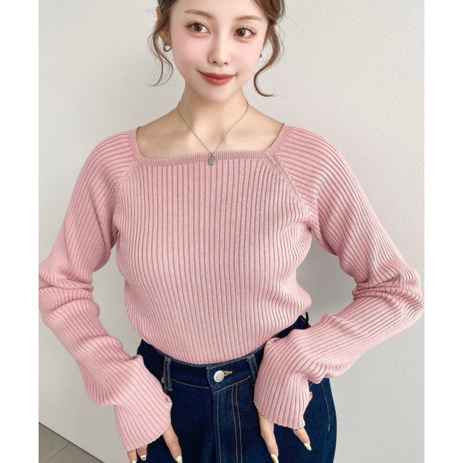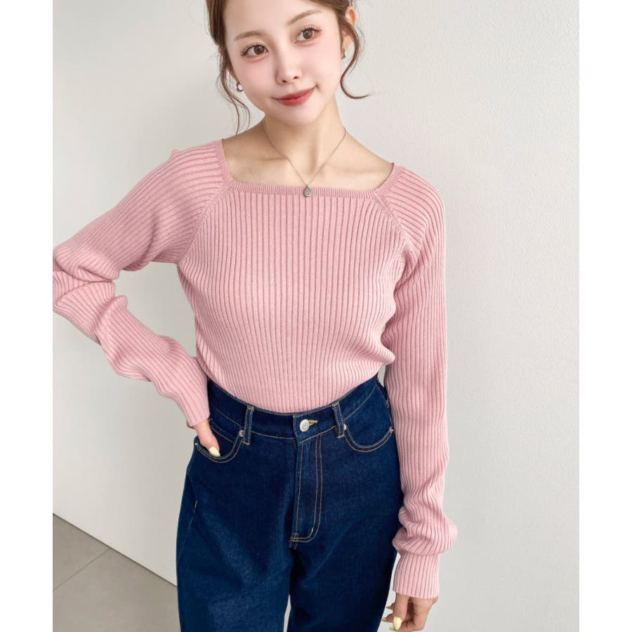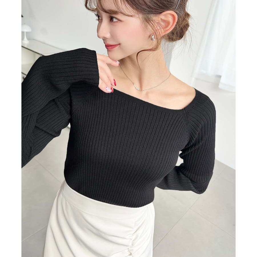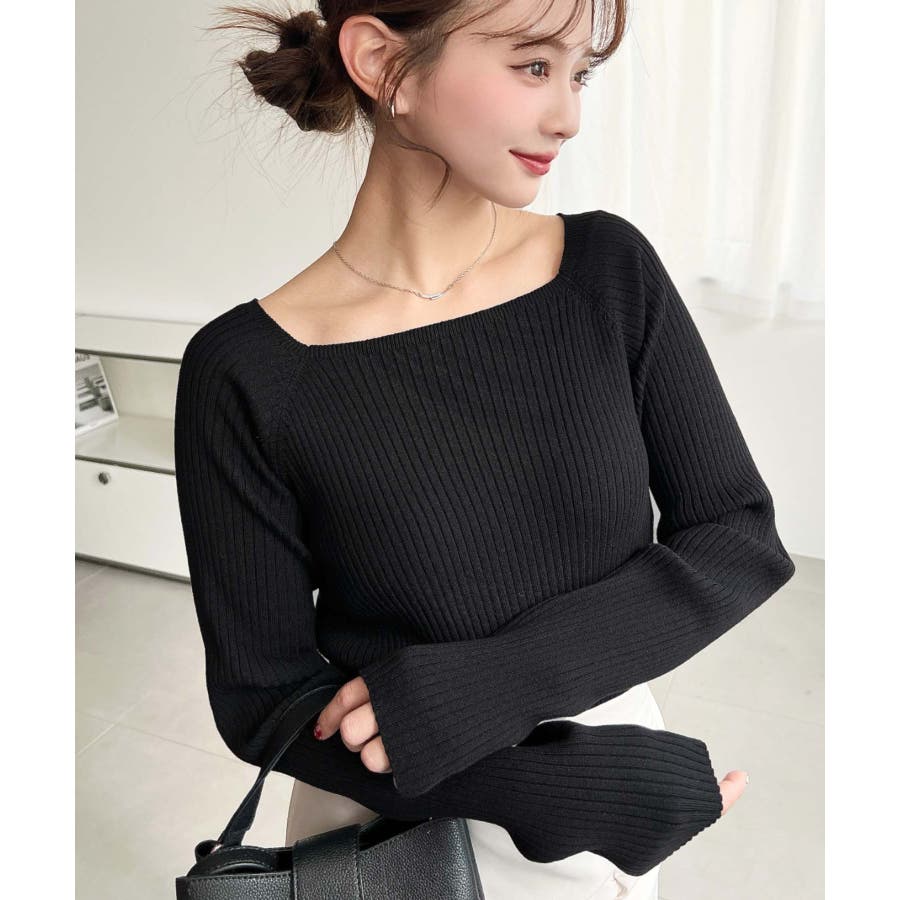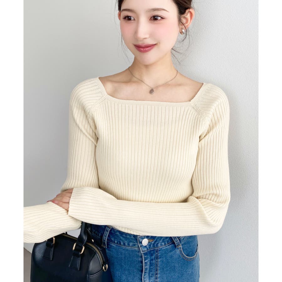 首元が開きすぎないスクエアネックなので上品な印象があり、リブニットのほどよいフィット感で体のラインをすっきり見せてくれるのがお気に入りポイントです◎