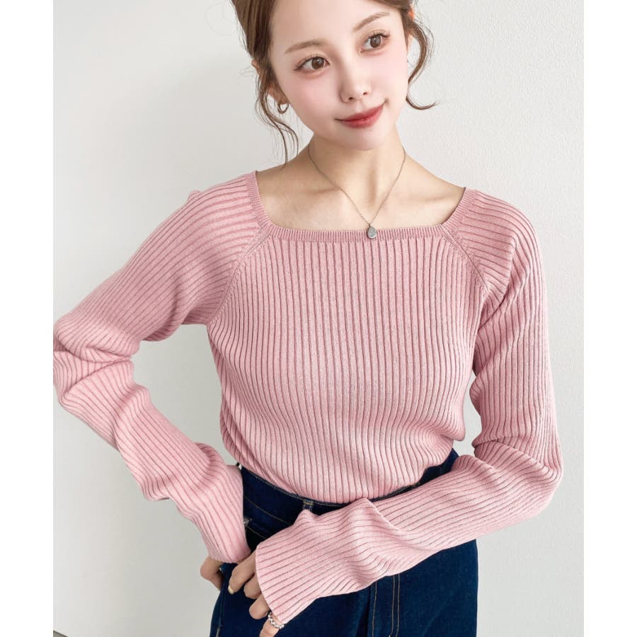 スクエアネックSSリブニットプルオーバー