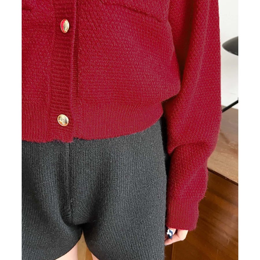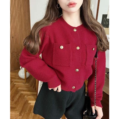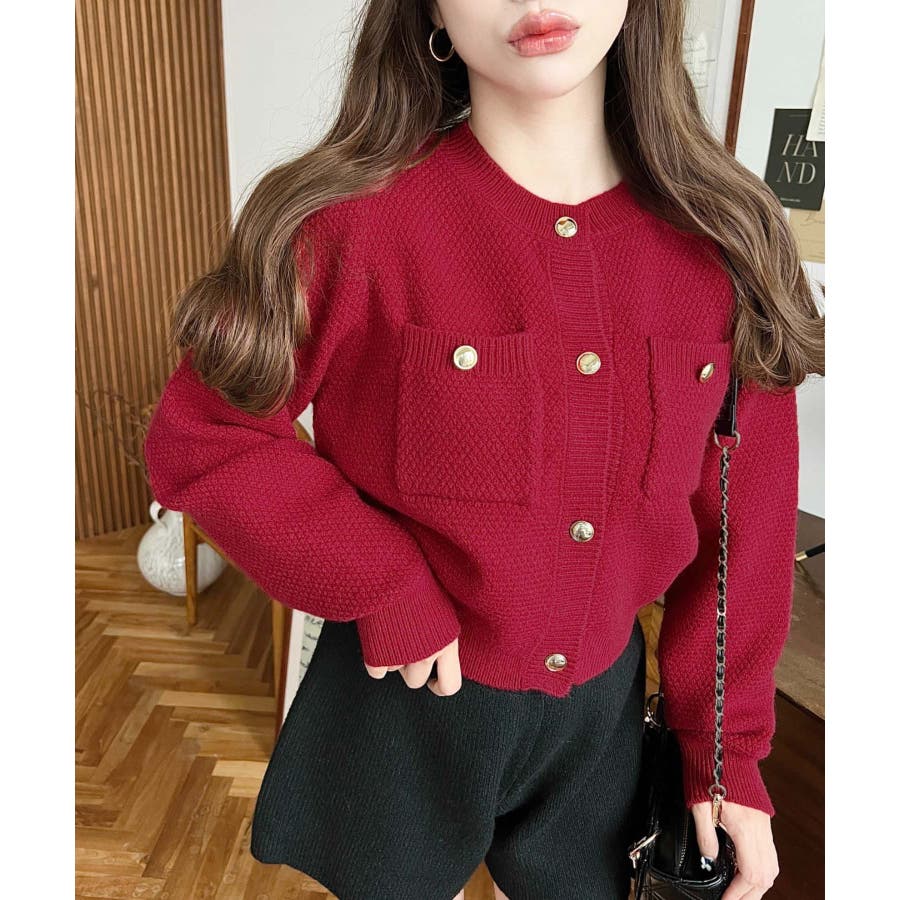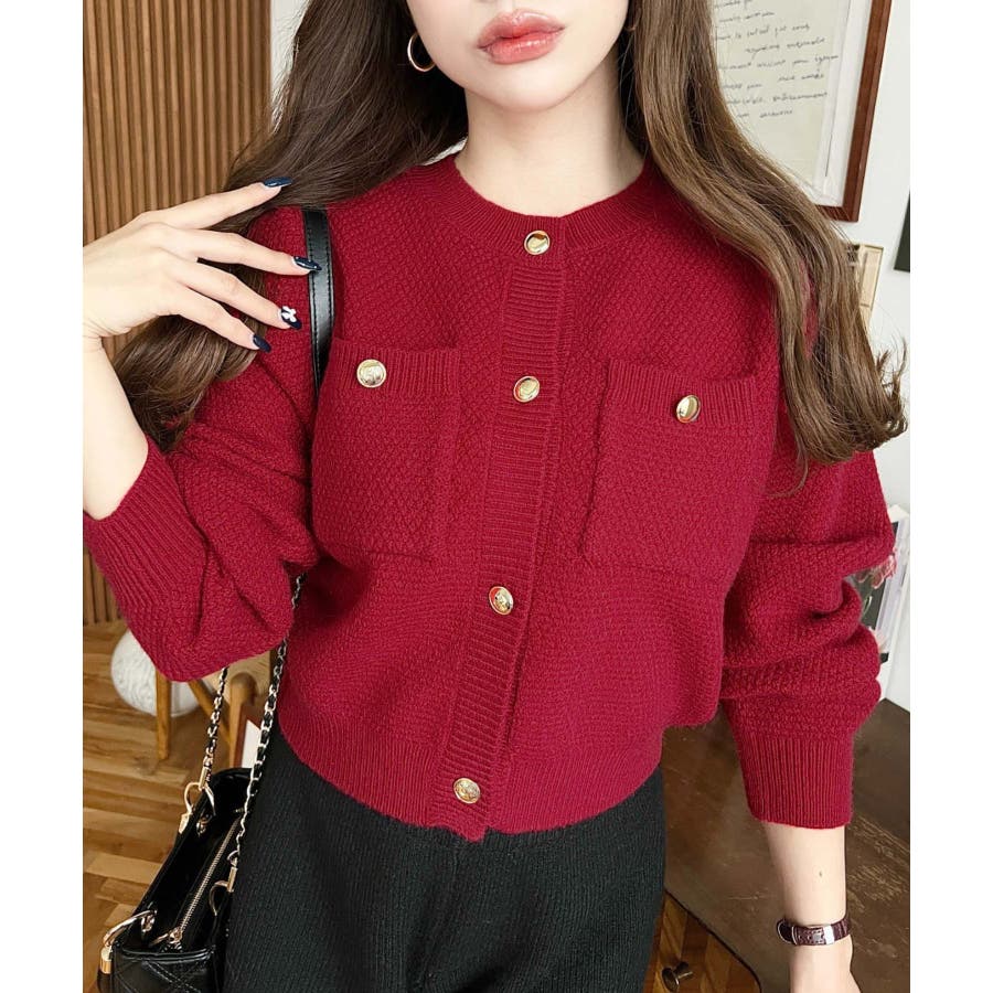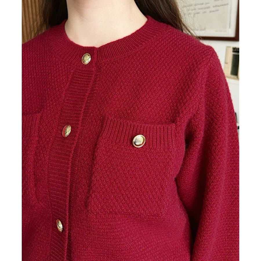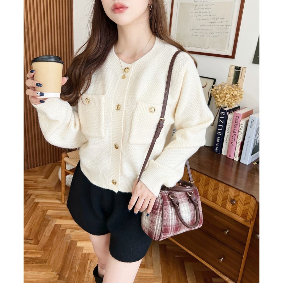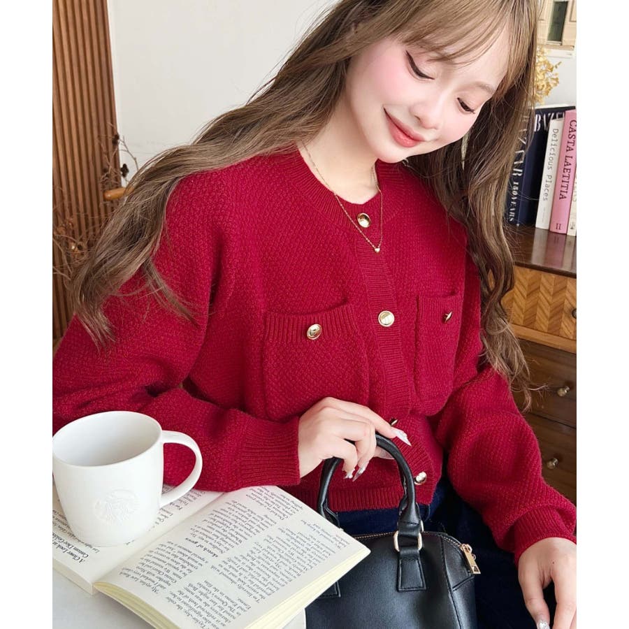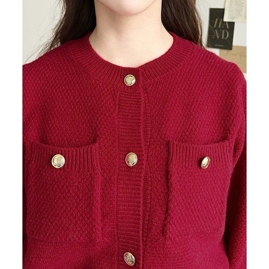 ・胸元のWポケットや金ボタンデザインが、上品なアクセントになりクラシカルな印象に魅せてくれるニットカーディガンです♪