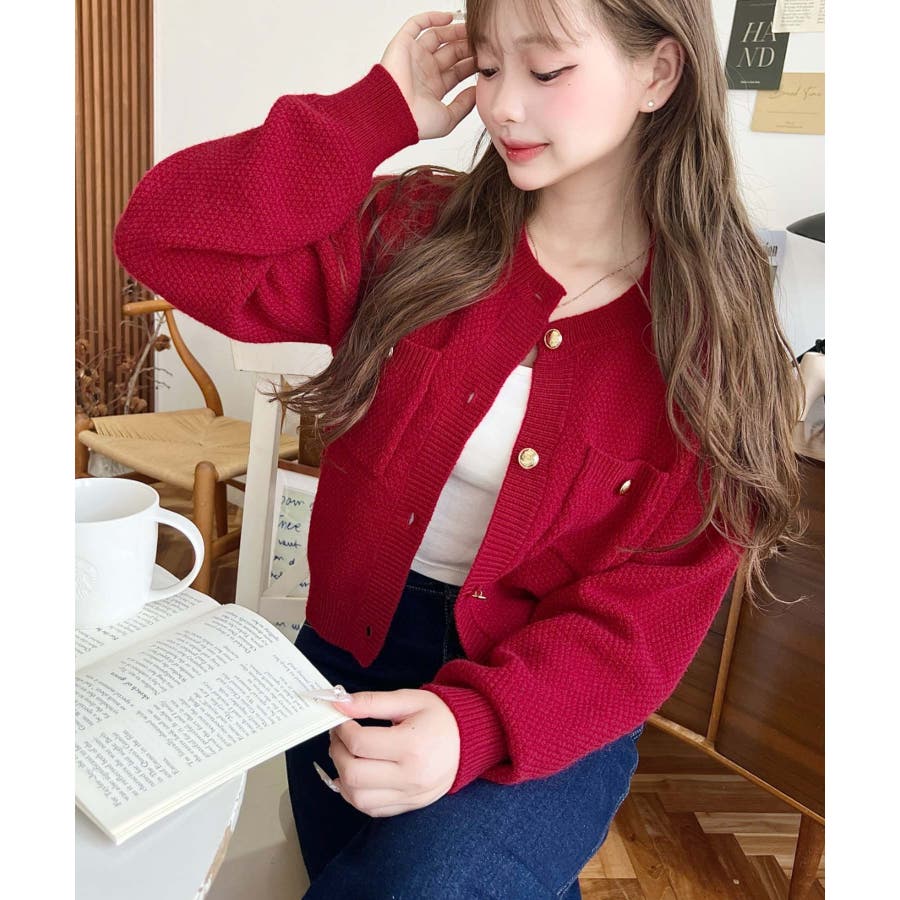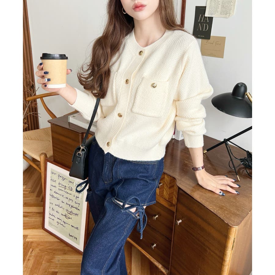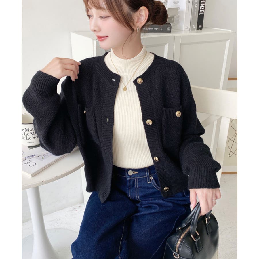 【シンプルなのに、立体感と華やかさを演出。ほどよい存在感がお洒落見えするニットカーディガン♪】
