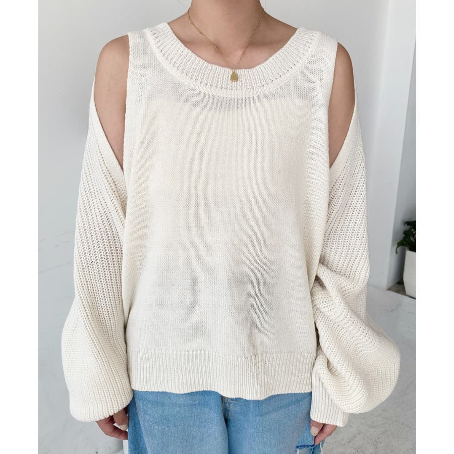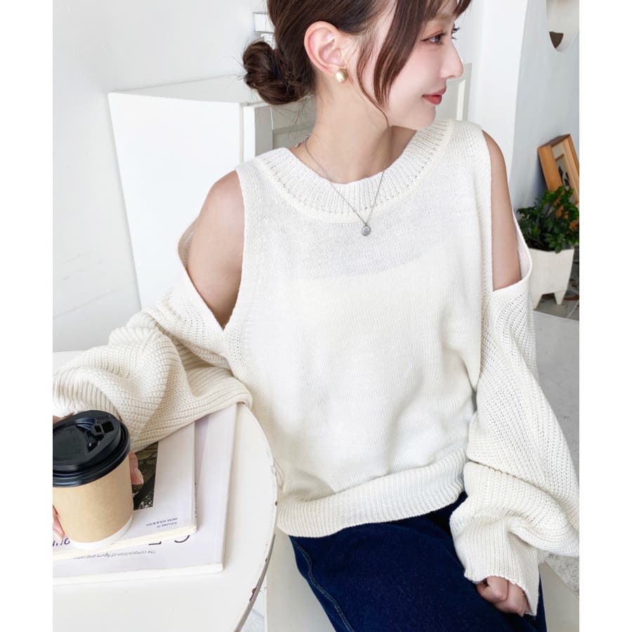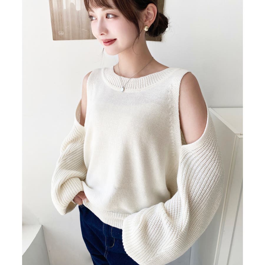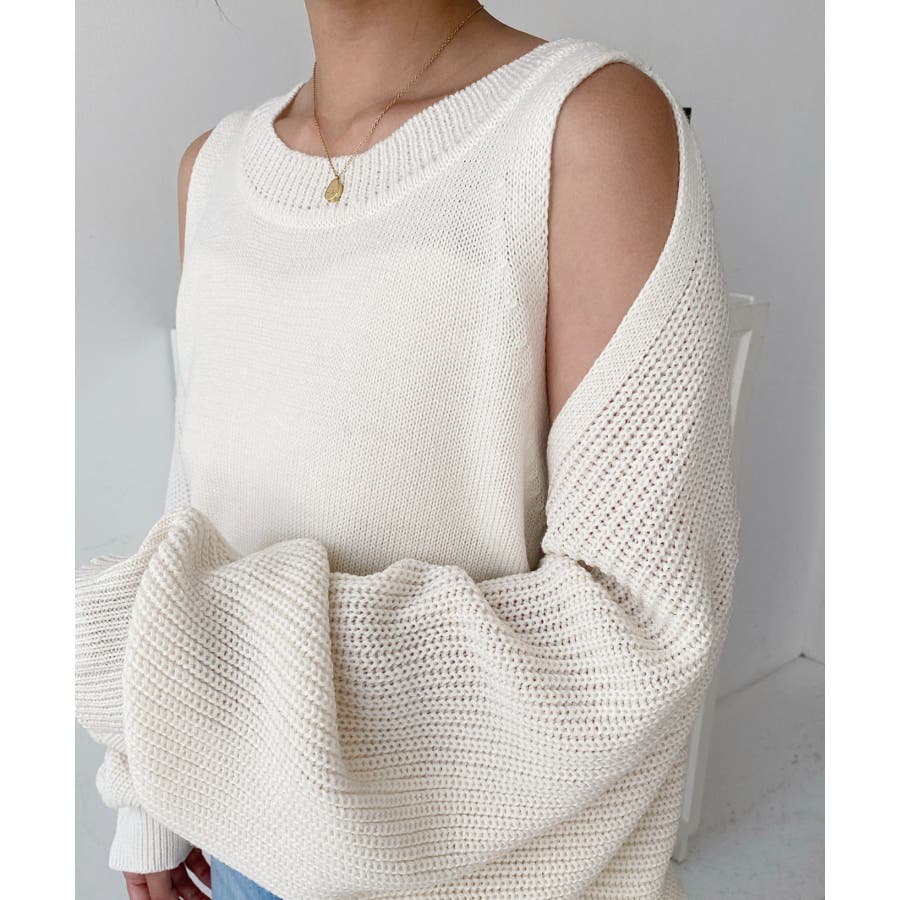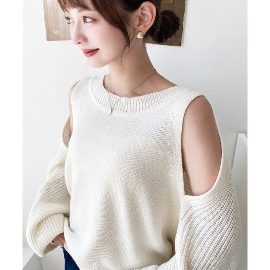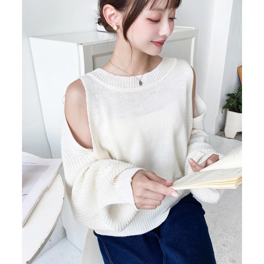 ・肩にスリットを入れたデザインが、シンプルなニットにトレンド感と女性らしさをプラス。