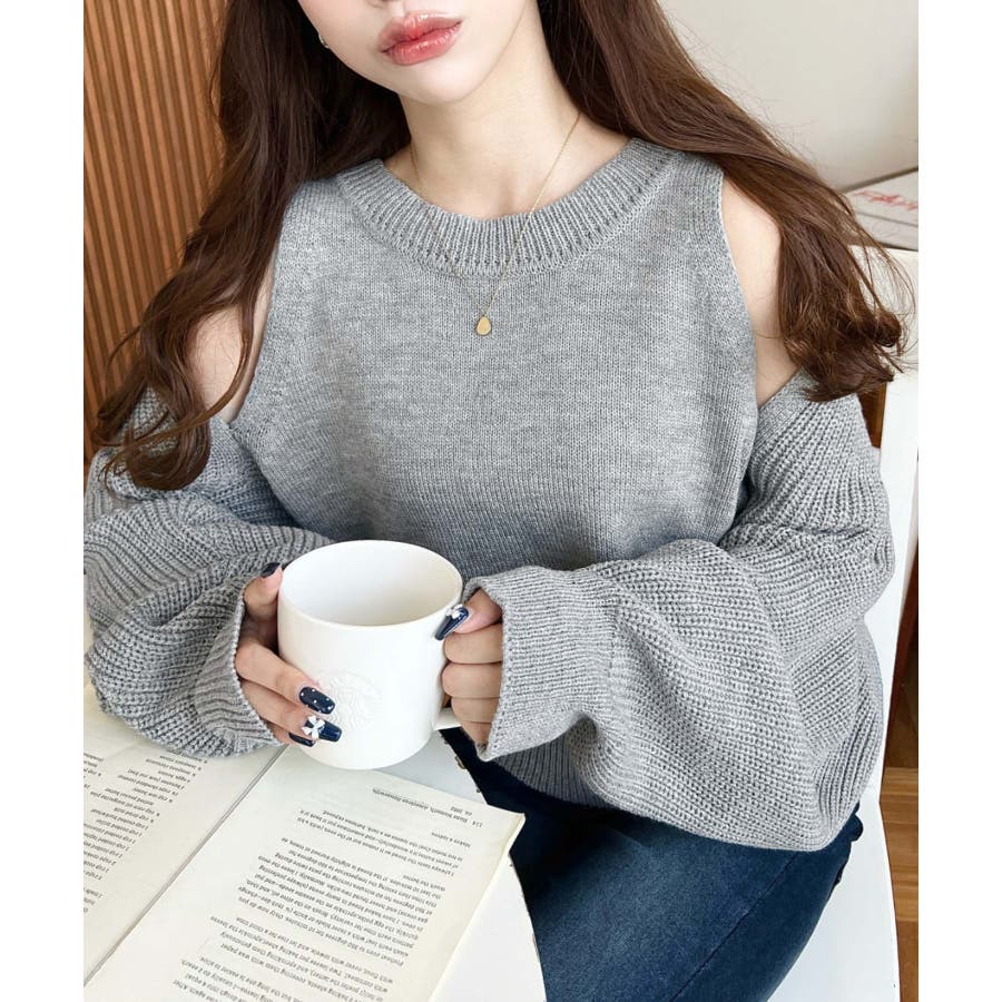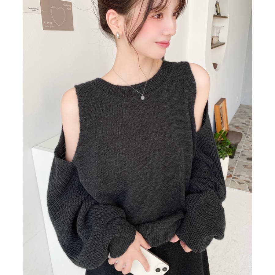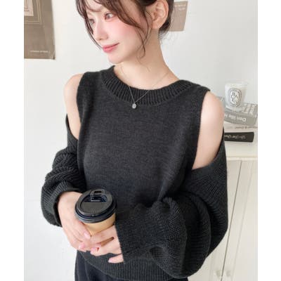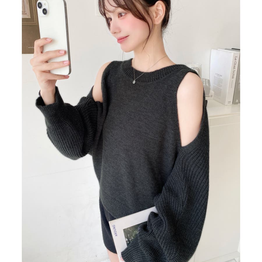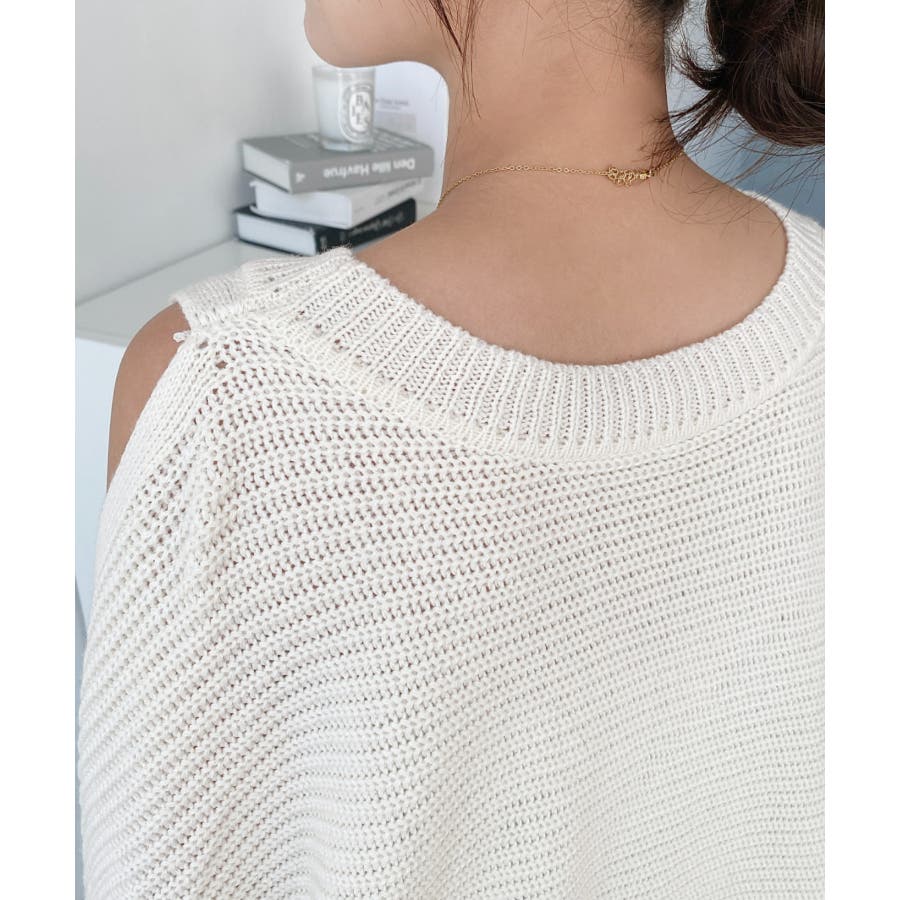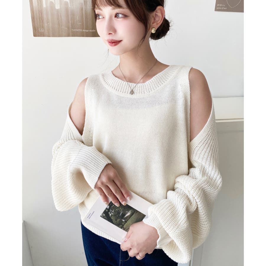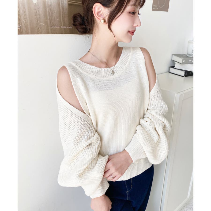 ・肩にスリットを入れたデザインが、シンプルなニットにトレンド感と女性らしさをプラス。