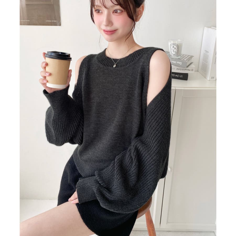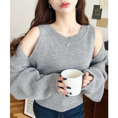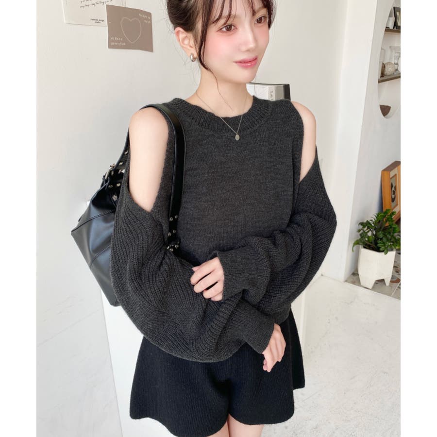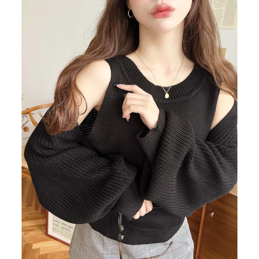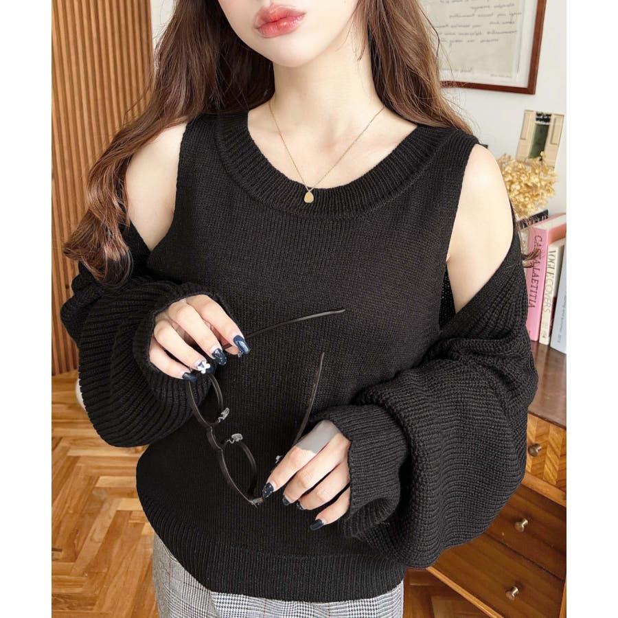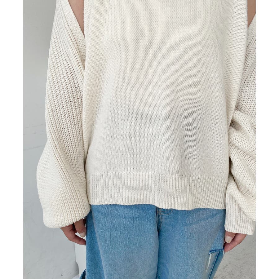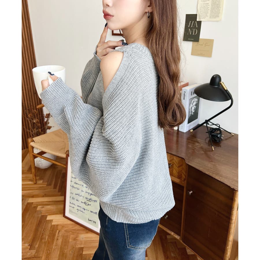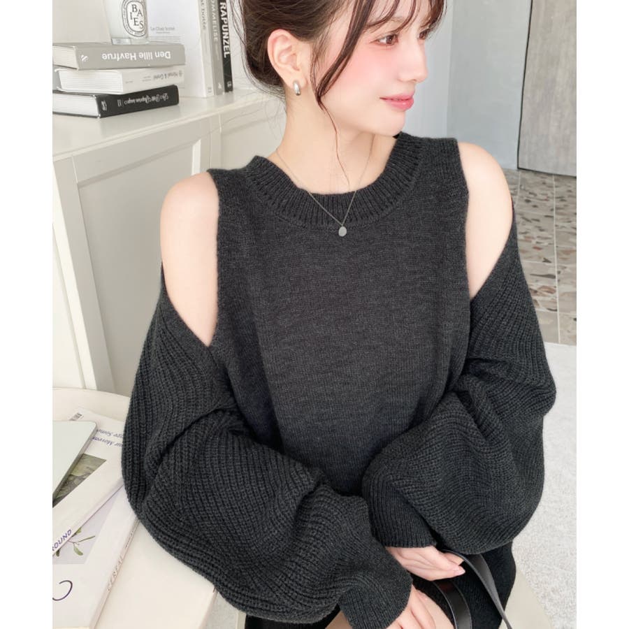 ・肩にスリットを入れたデザインが、シンプルなニットにトレンド感と女性らしさをプラス。