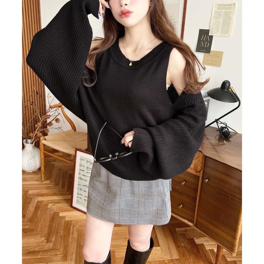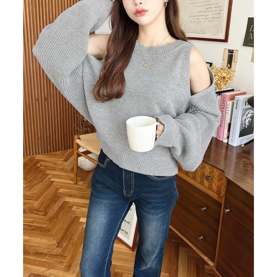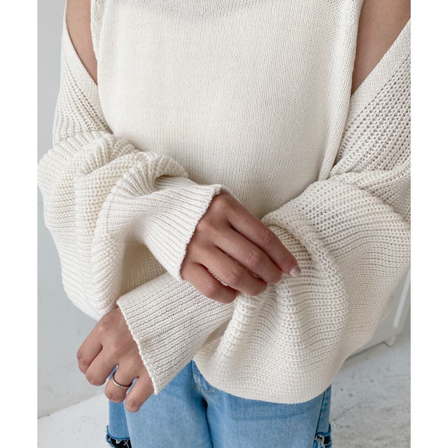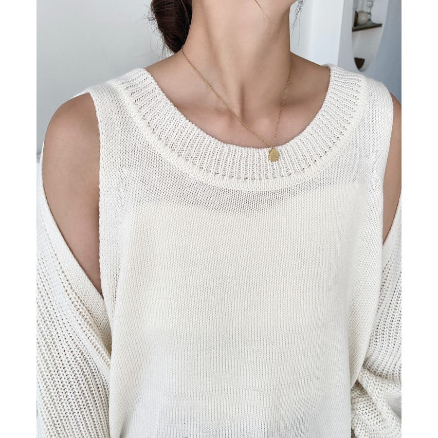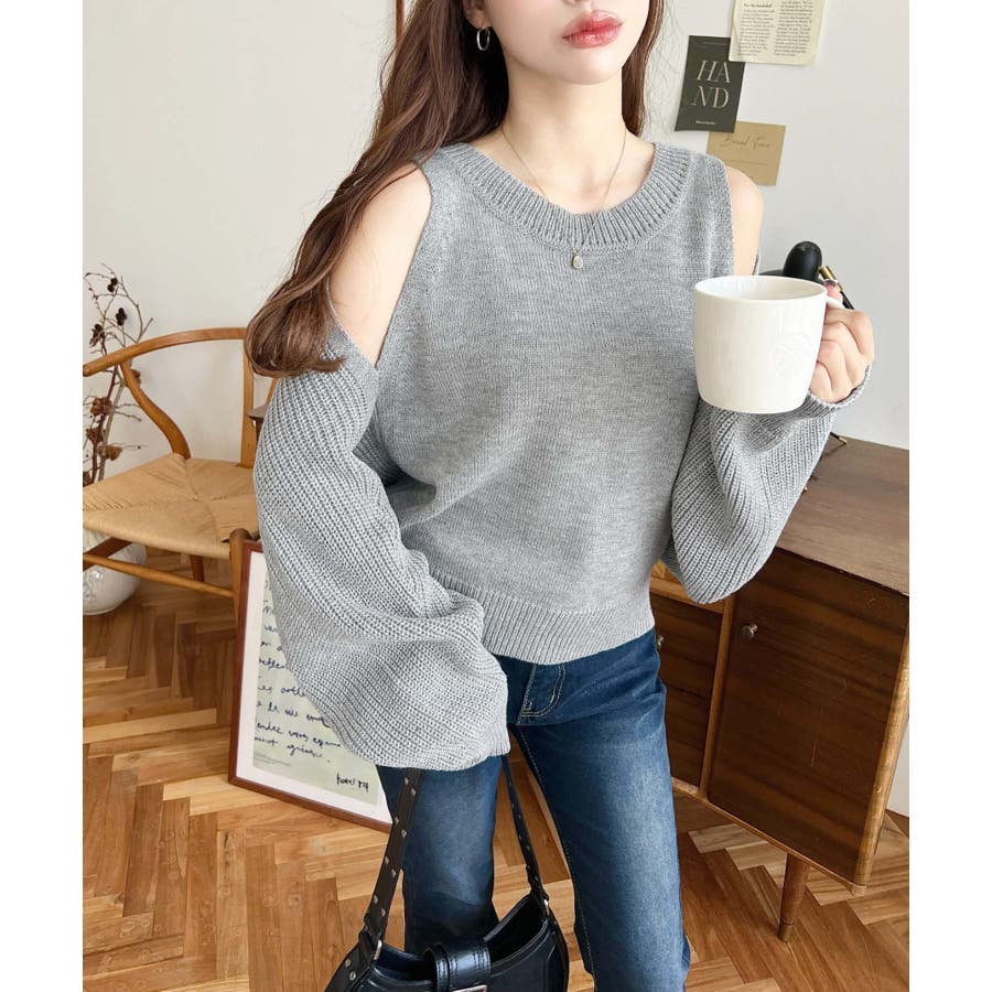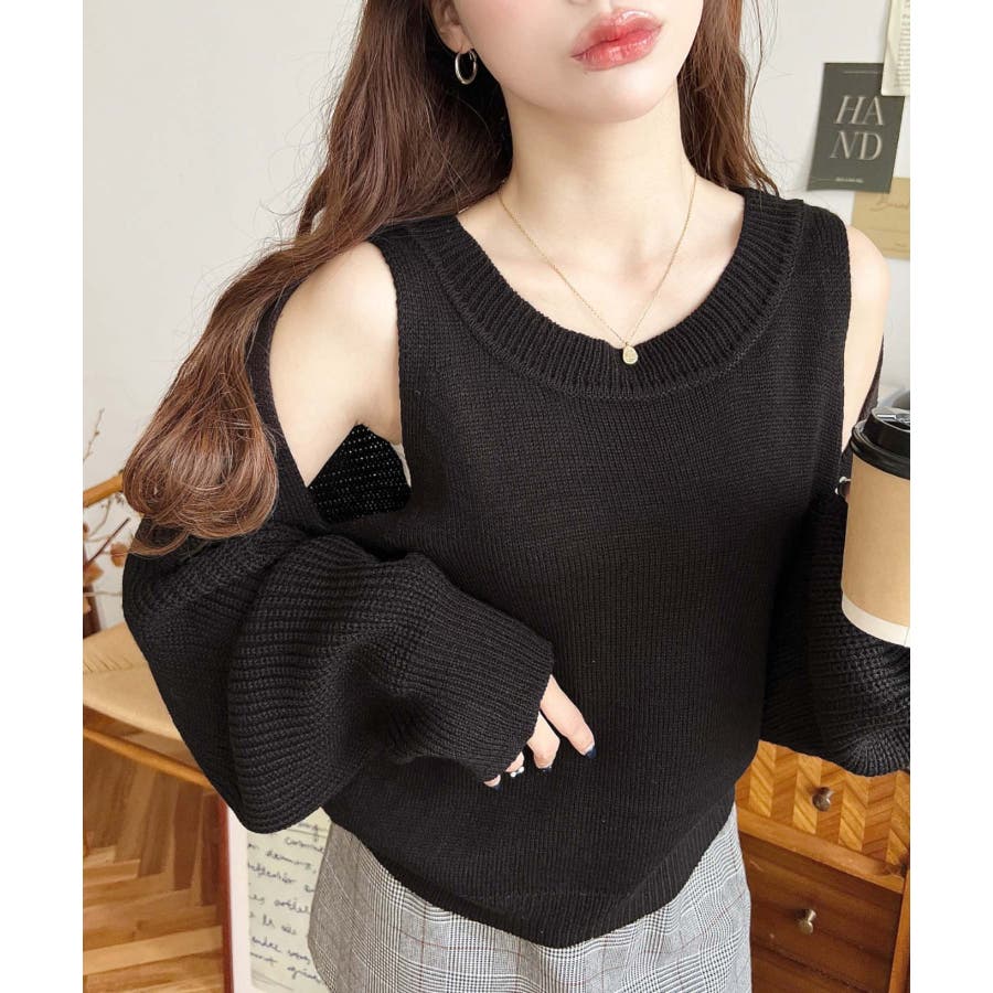 ・肩にスリットを入れたデザインが、シンプルなニットにトレンド感と女性らしさをプラス。